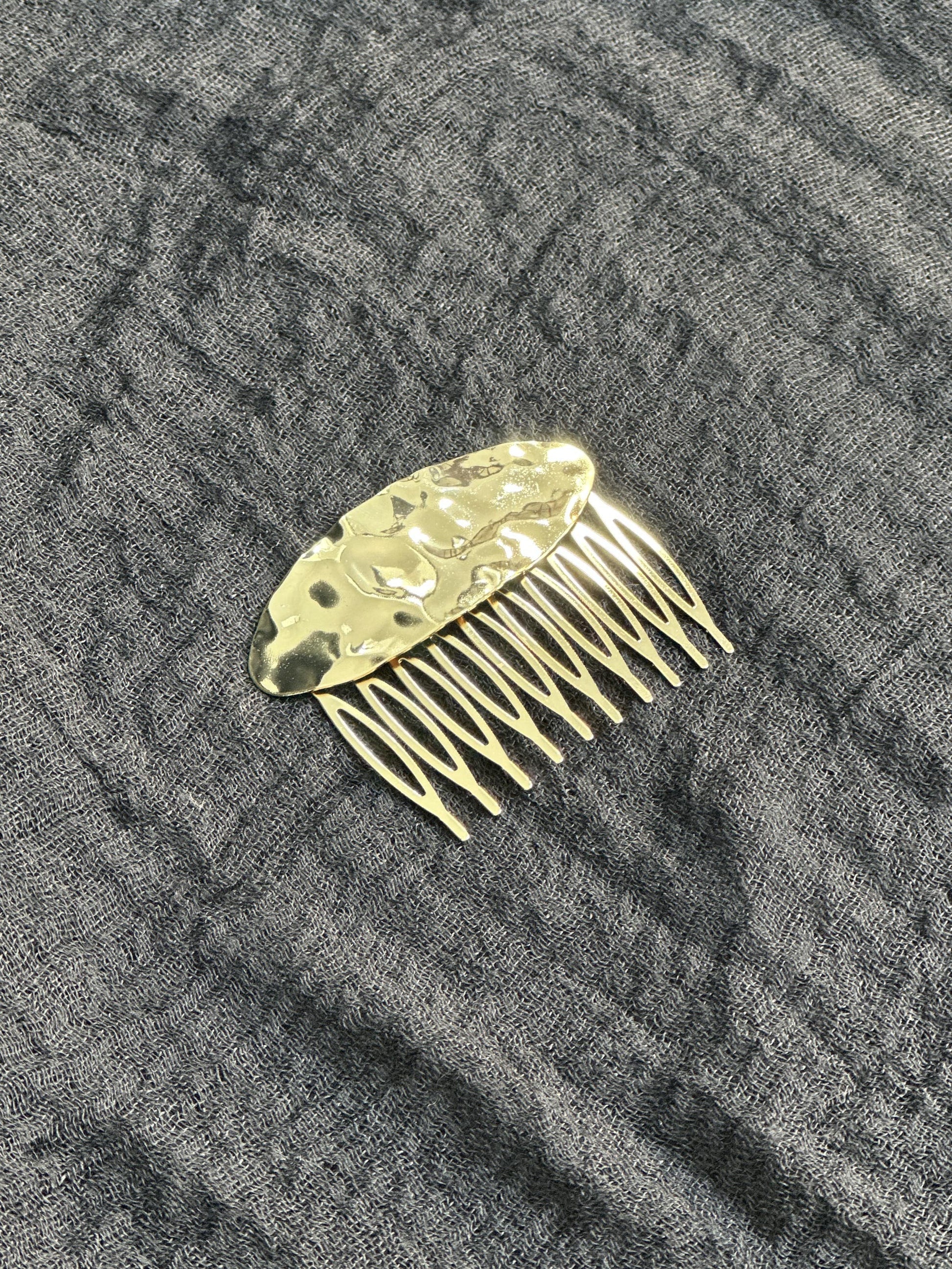 Peinecillo ovalado con relieve en color dorado acabado brillo.