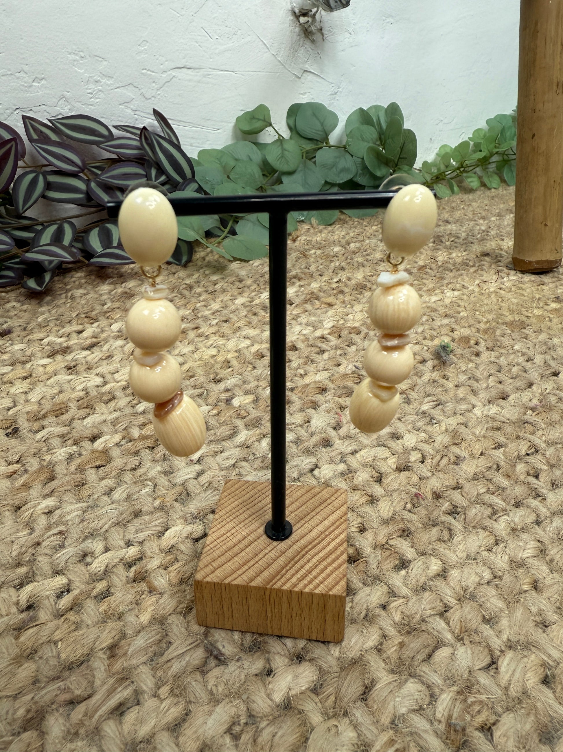 Pendiente compuesto por perlas redondas.