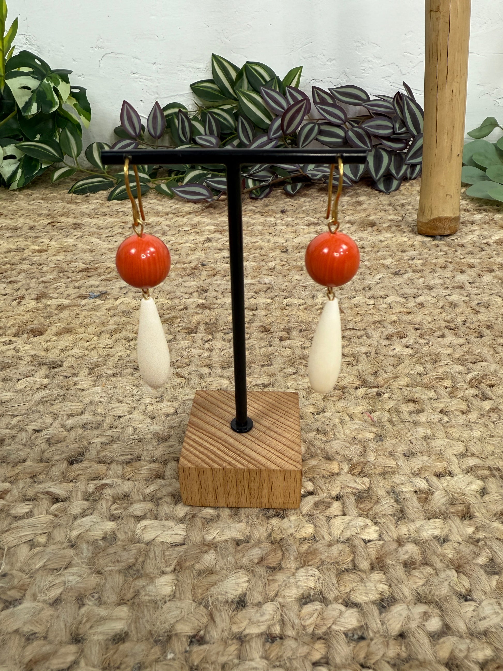 Pendiente de mujer compuesto por una bola y un coral de tamaño mediano.