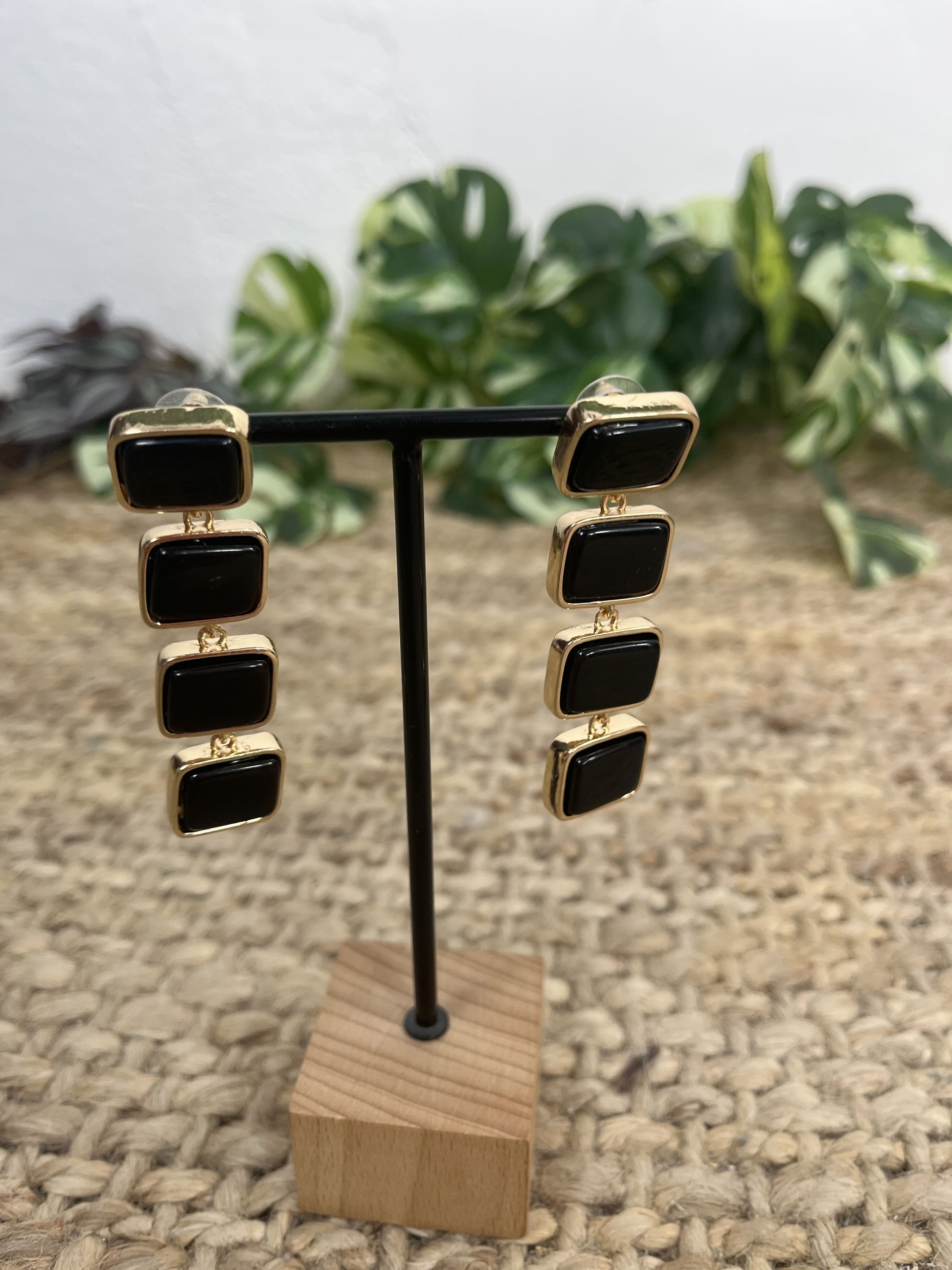 Pendiente en color negro y dorado / carey y dorado.