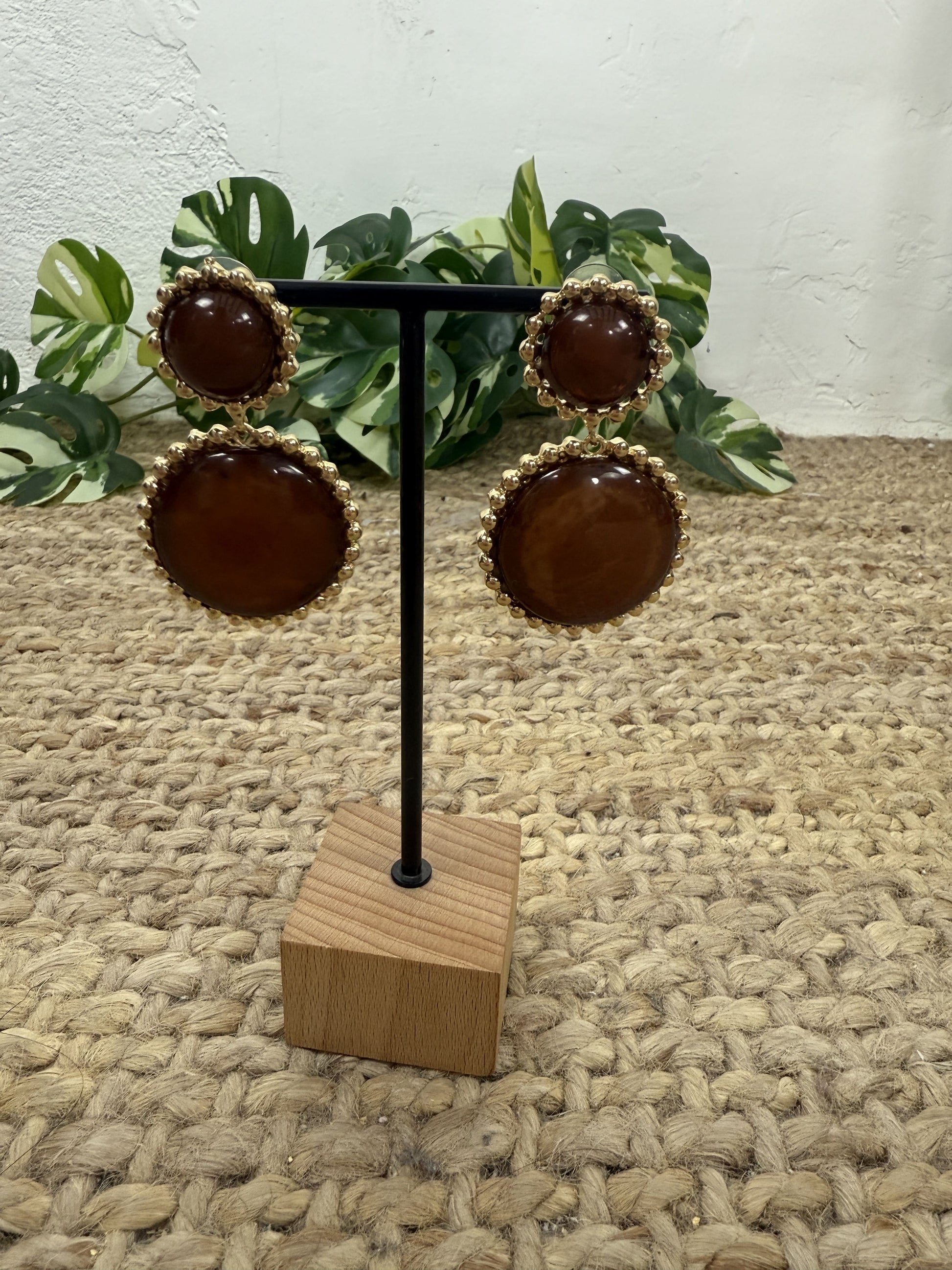 Pendiente de forma redonda compuesto por dos piezas.