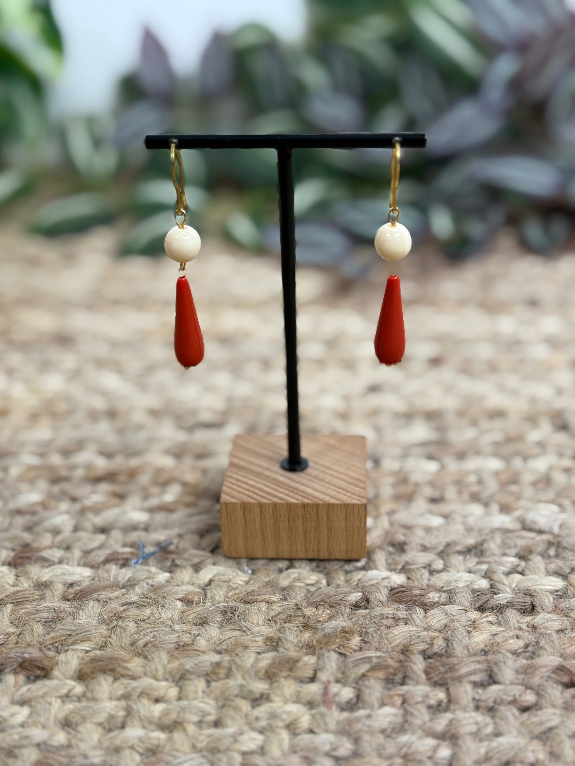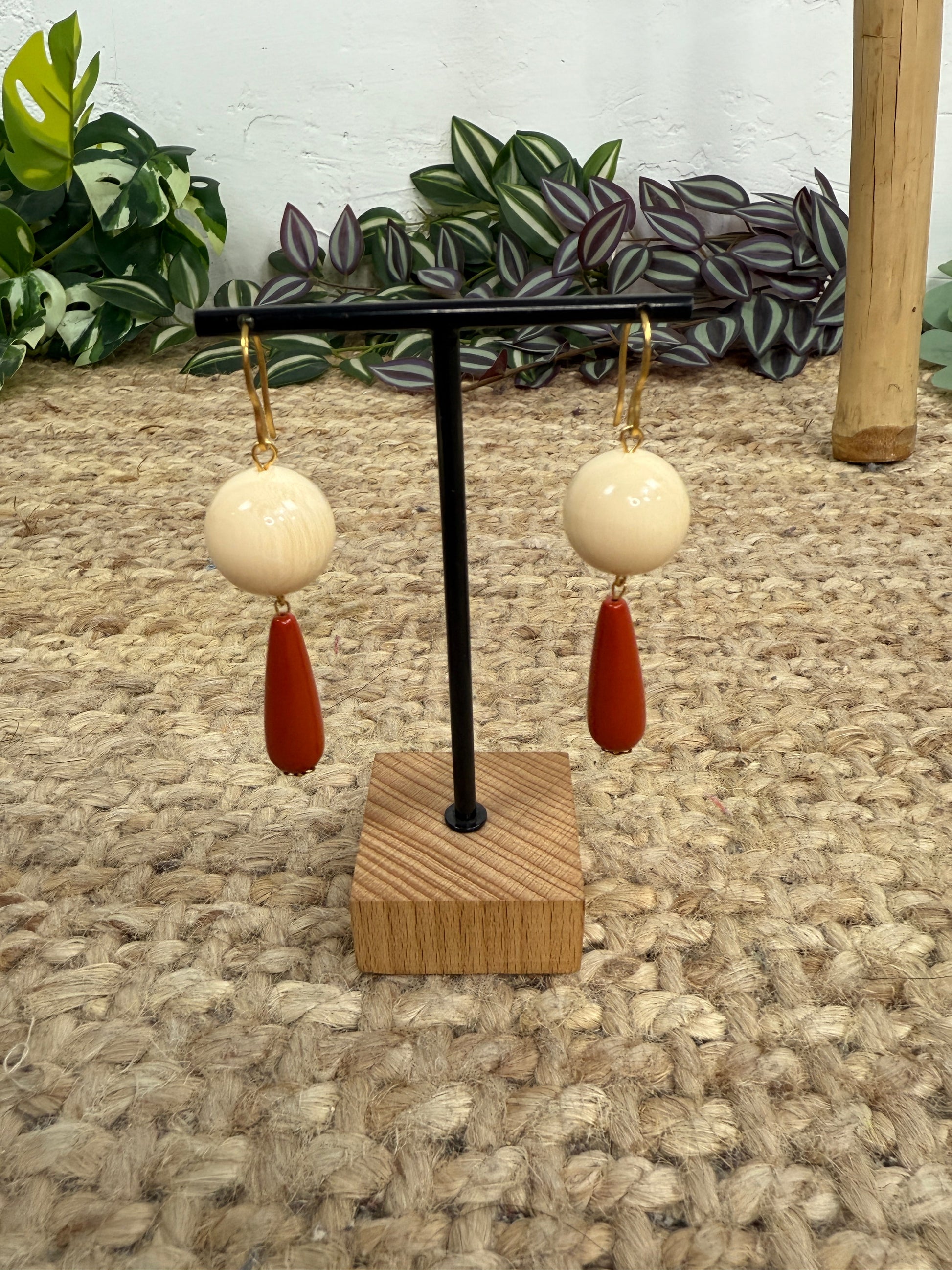 Pendiente de mujer compuesto por una bola pequeña y un coral.