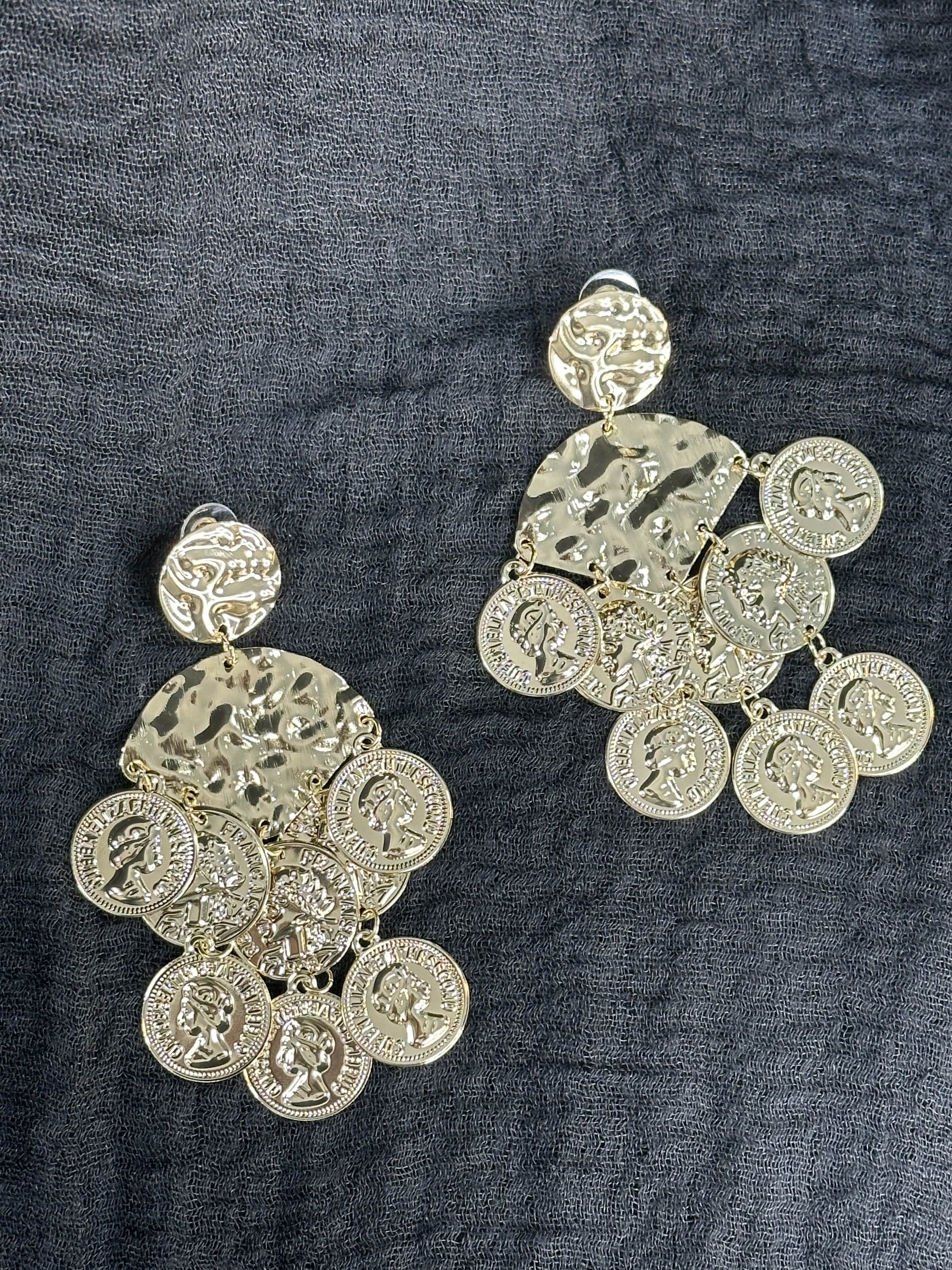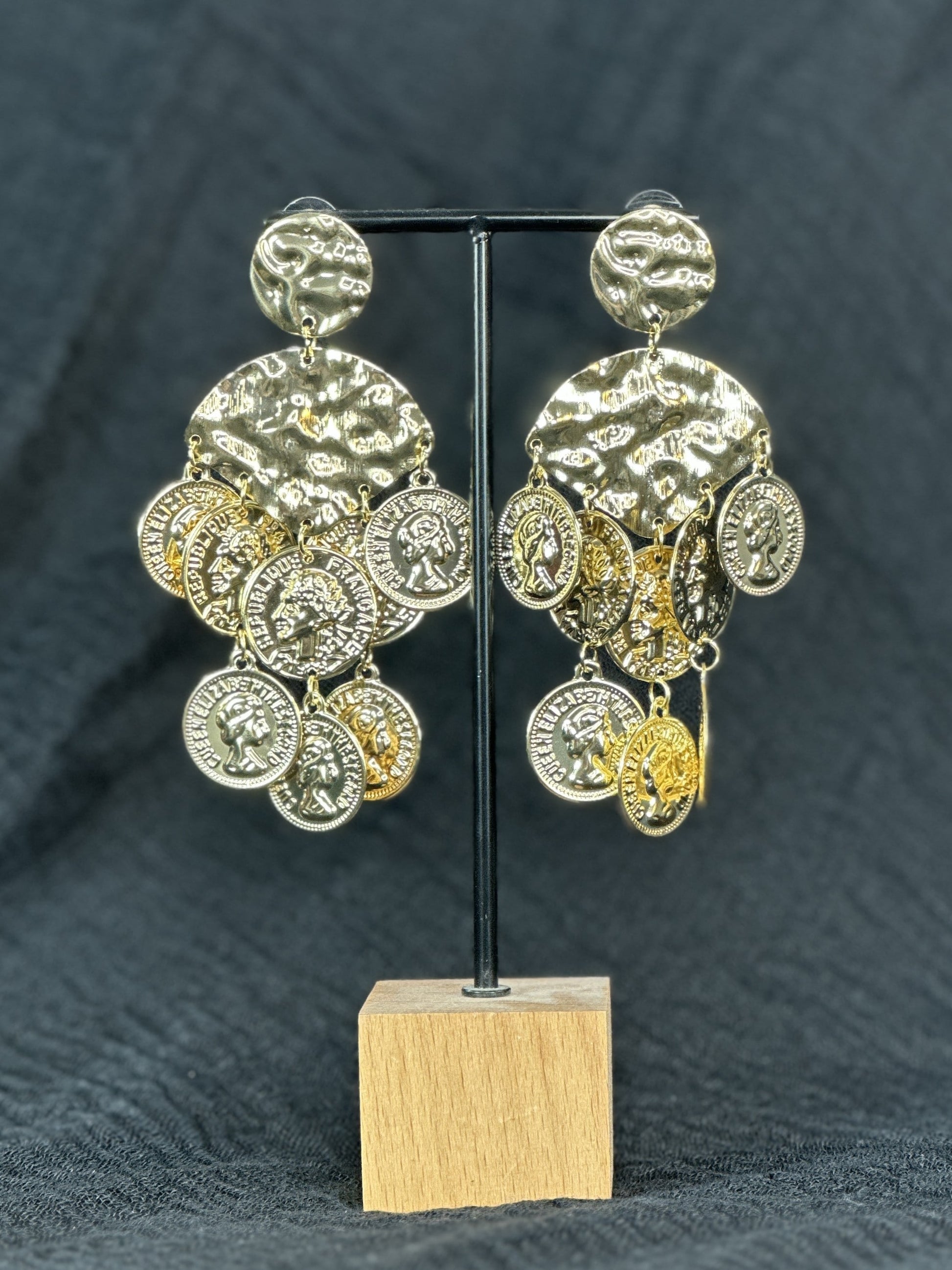 Pendiente de flamenca con monedas en dorado con acabado brillo.