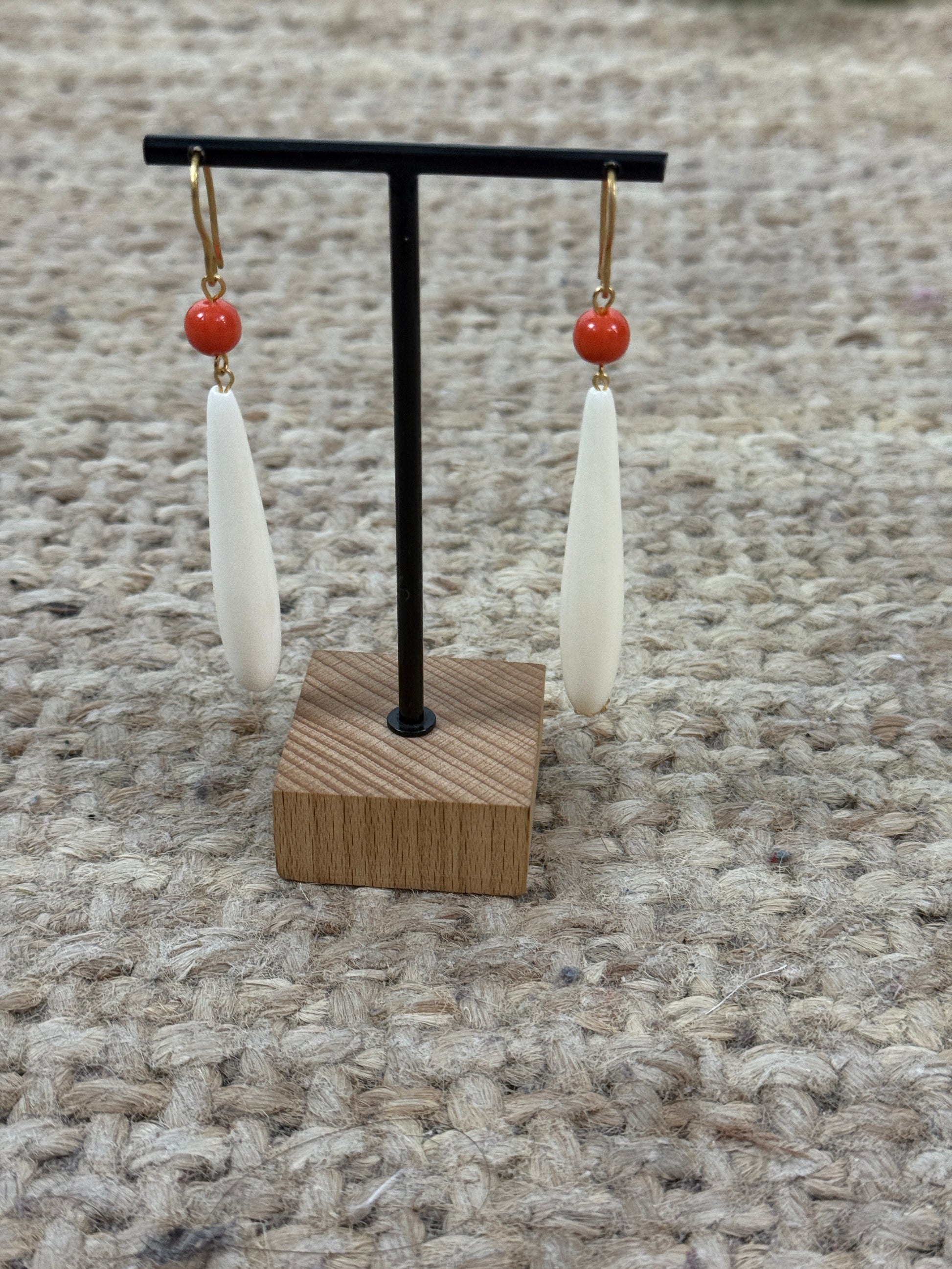 Pendiente de mujer perfecto para moda flamenca compuesto por una bola pequeña y un coral grande.
