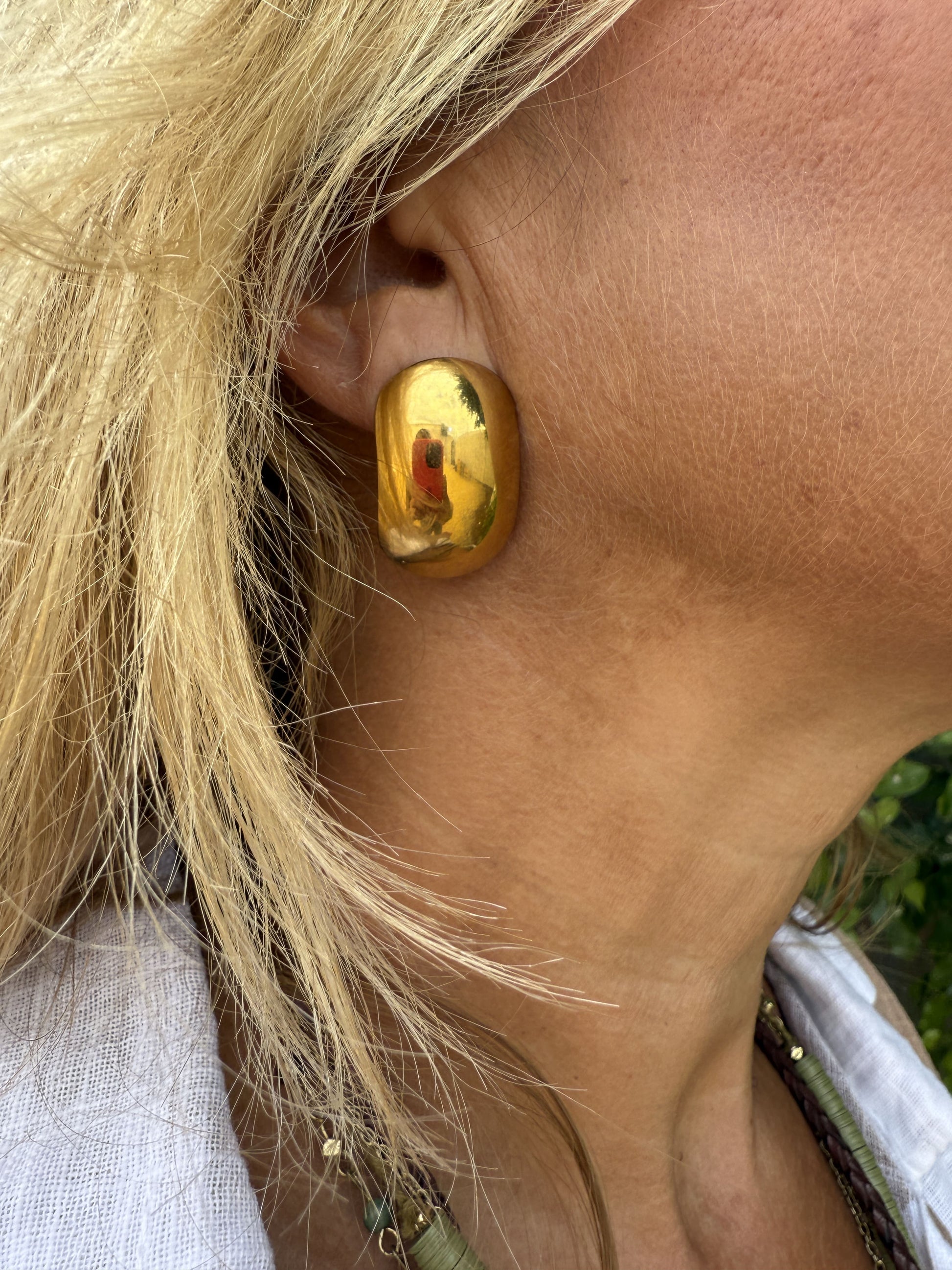 Pendiente de acero con forma ovalado pegado a la oreja.