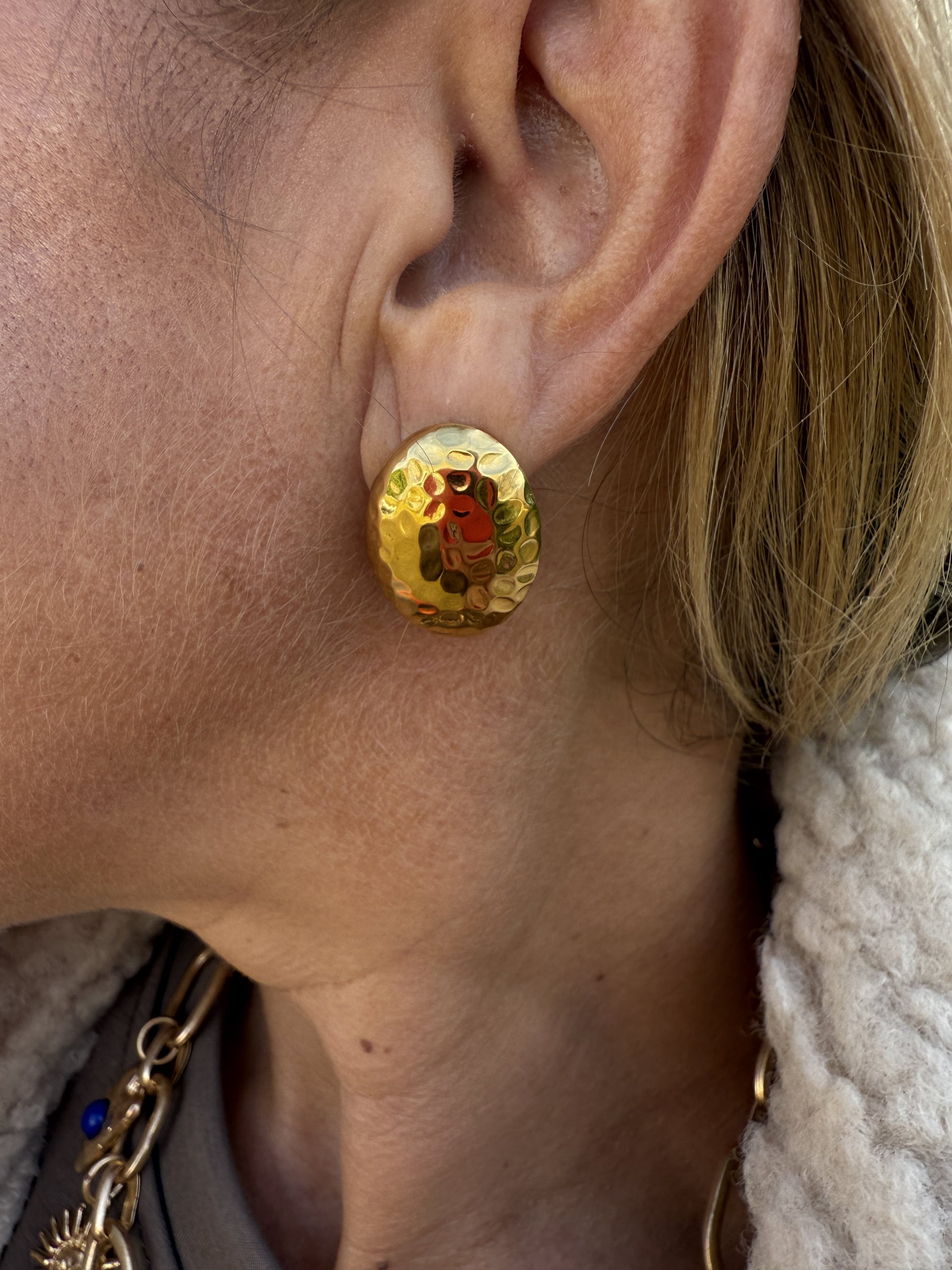 Pendiente pegado a la oreja de color dorado con acabado brillo.