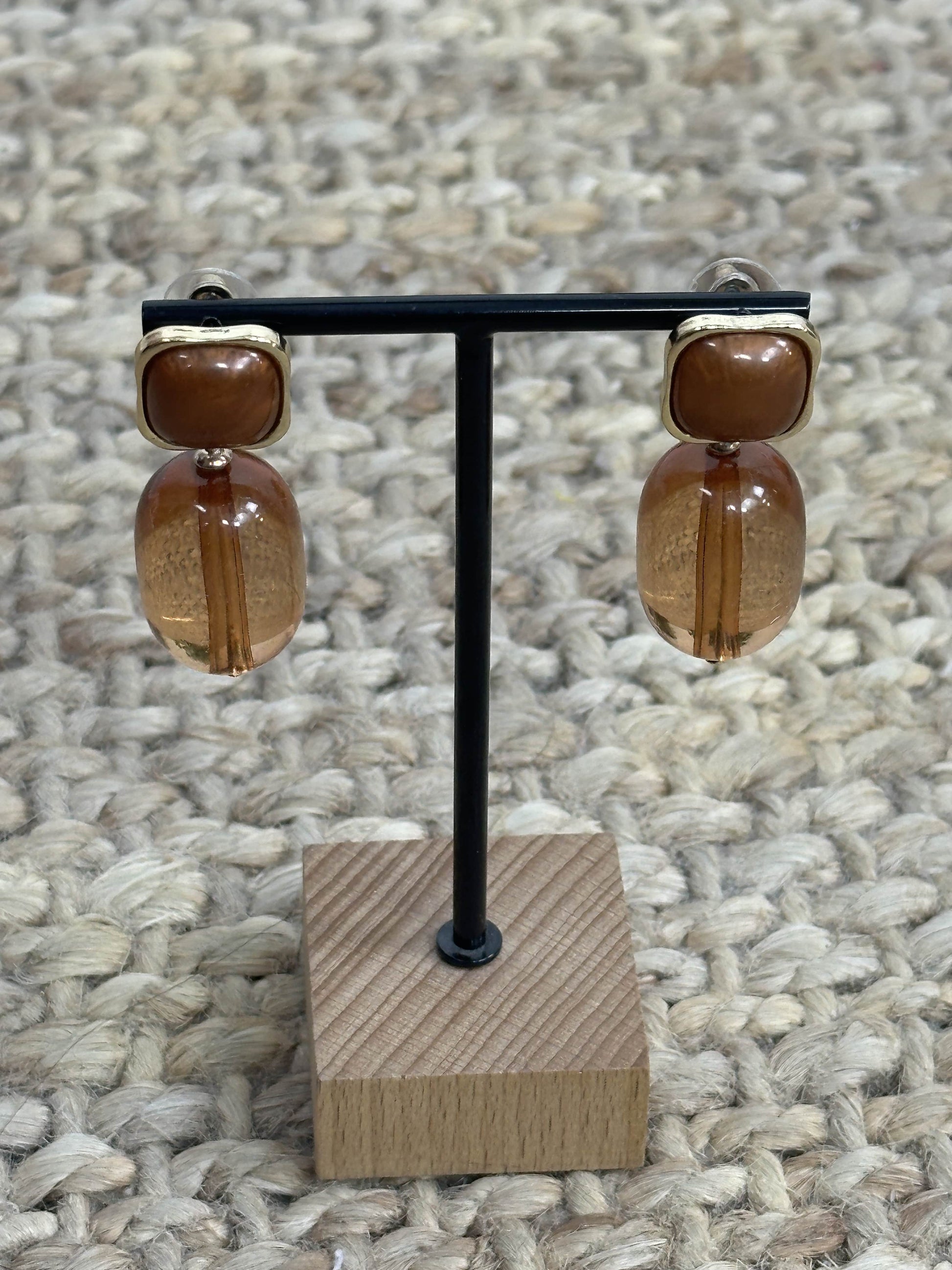 Pendiente medio largo con abalorio transparente colgando y cuadrado en la zona superior.