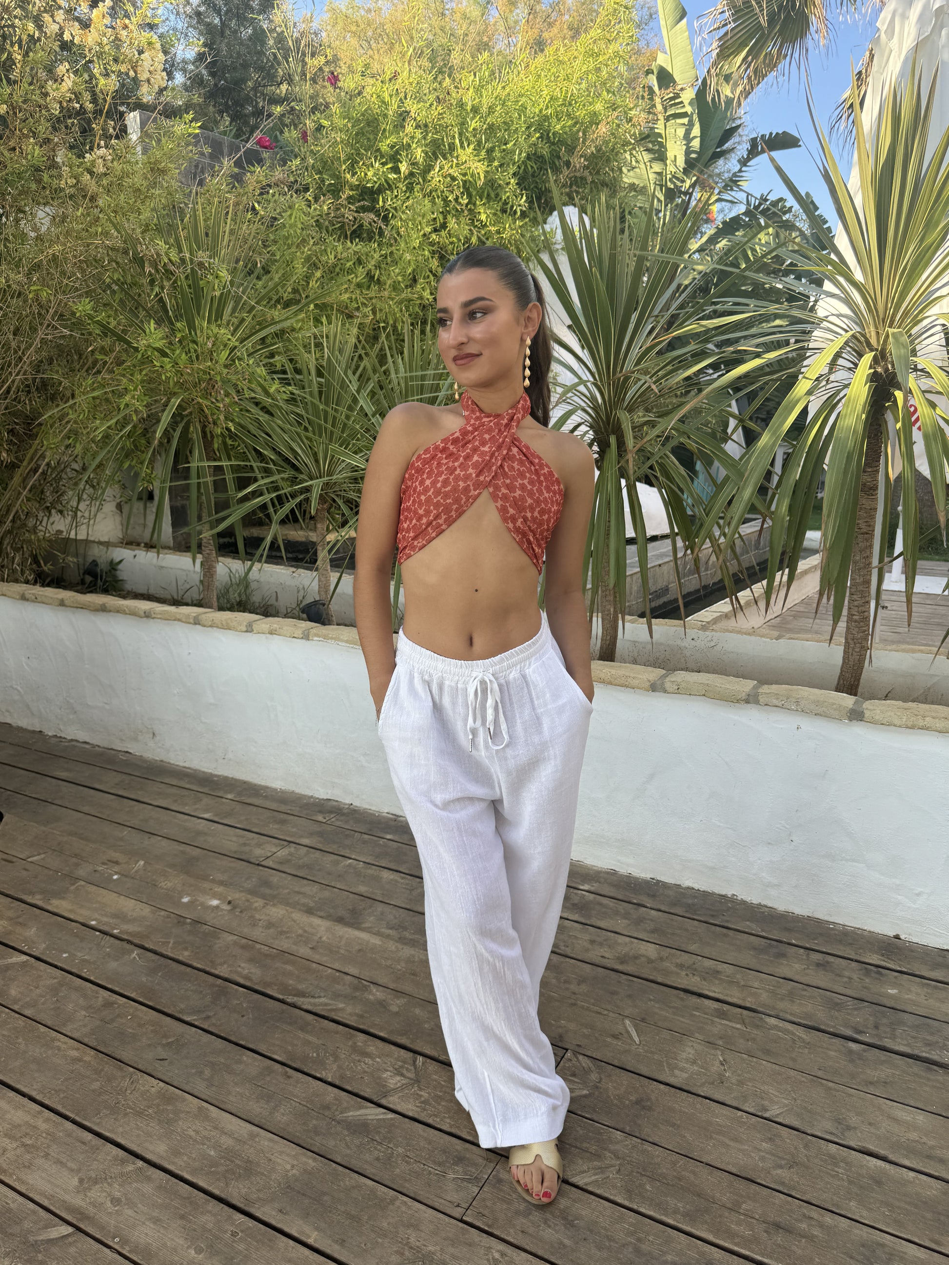Con un único top puedes tener un top de palabra de honor, cruzado, con lazada tanto en la parte delantera como en la parte trasera.