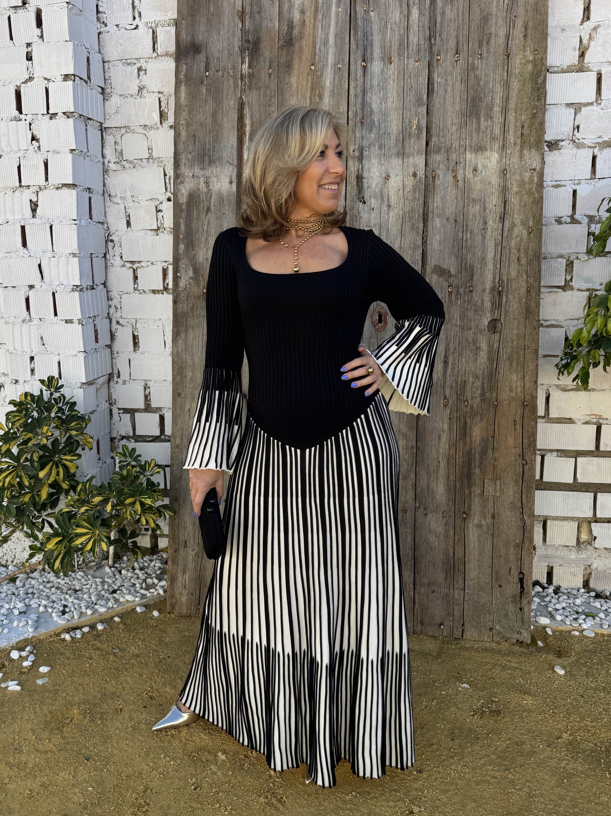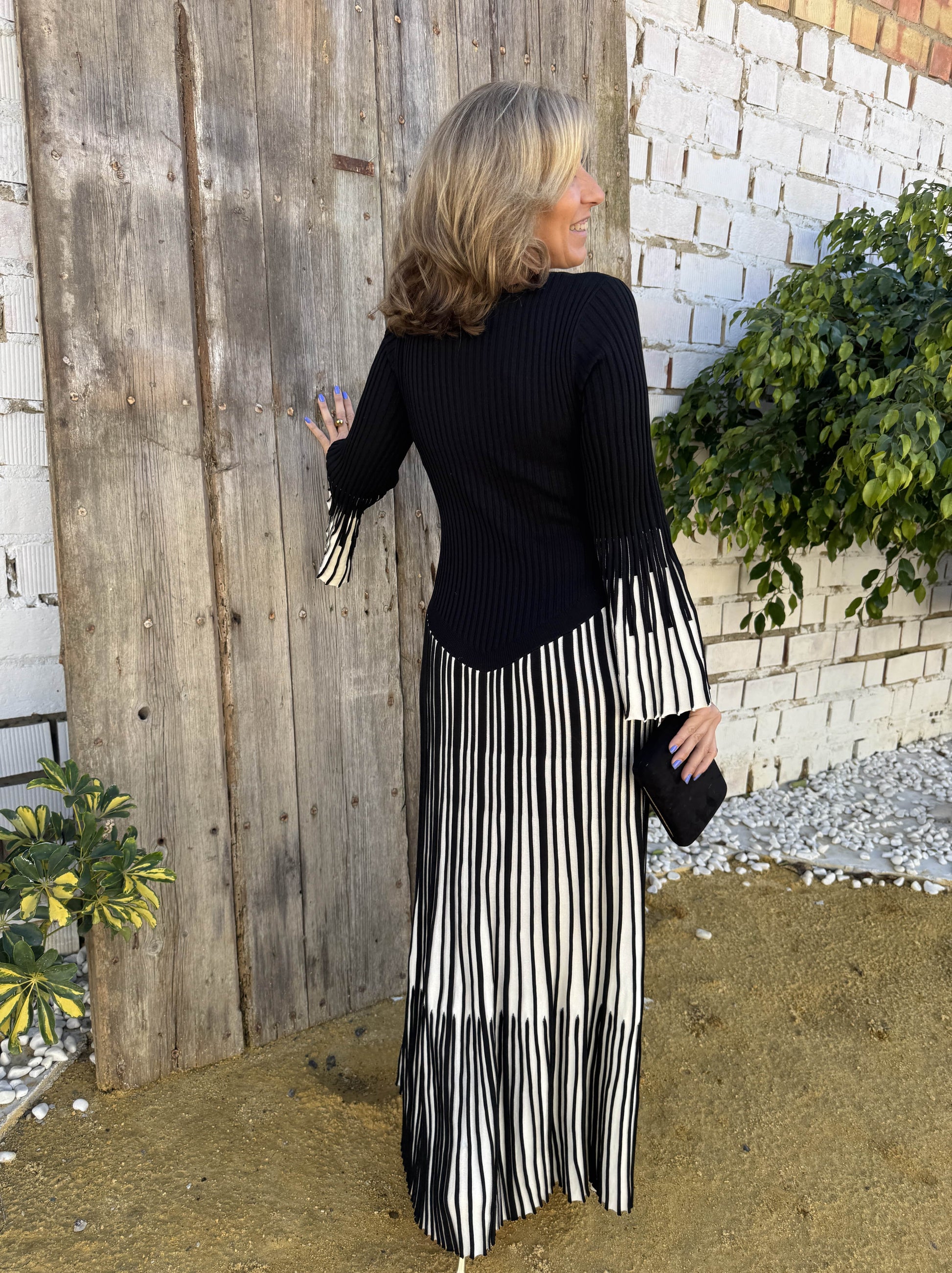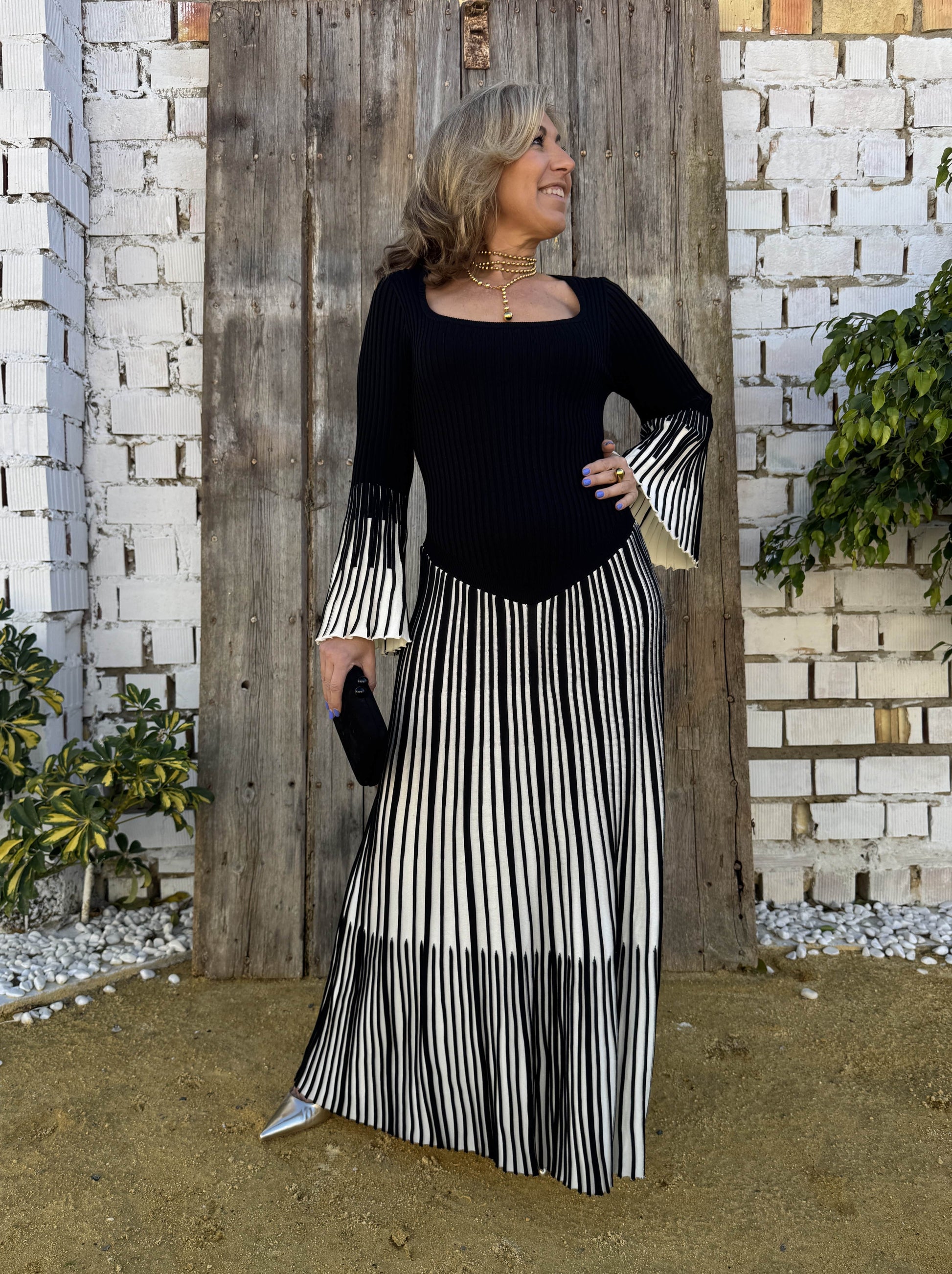 Vestido largo de mujer con tejido de punto y de manga larga.