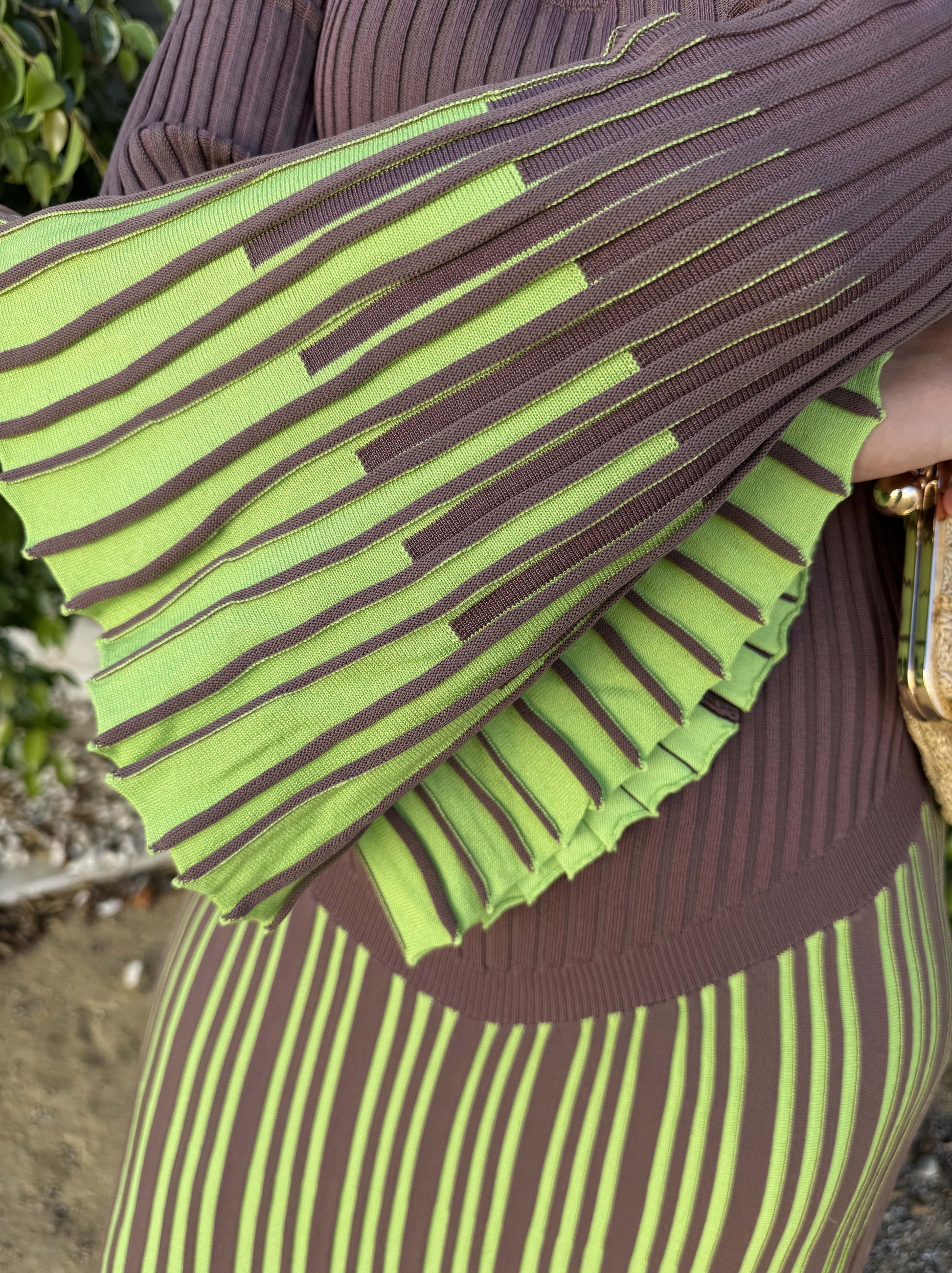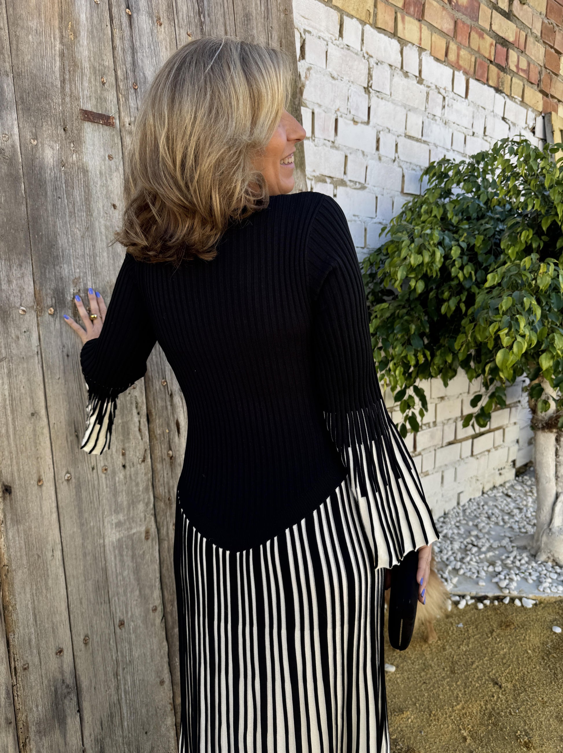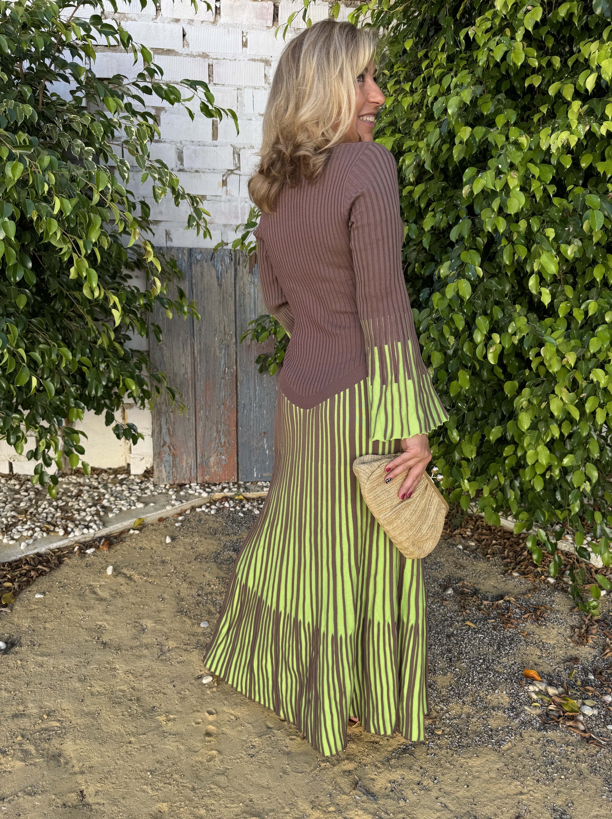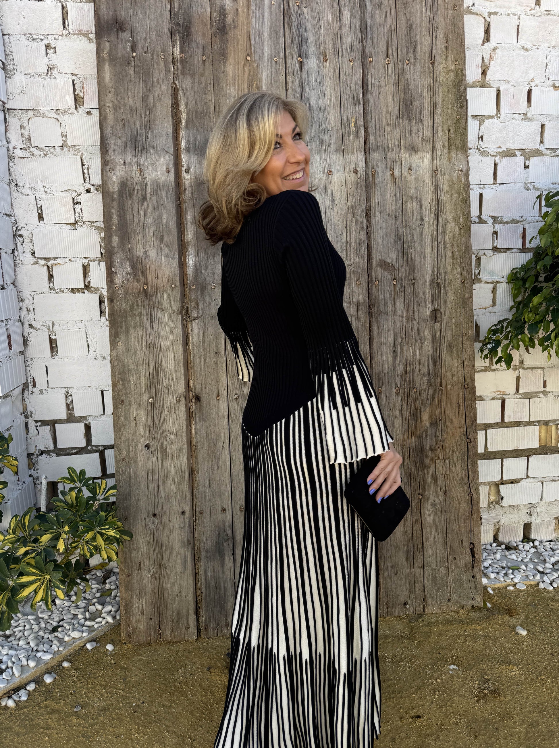 Vestido largo de mujer con tejido de punto y de manga larga.