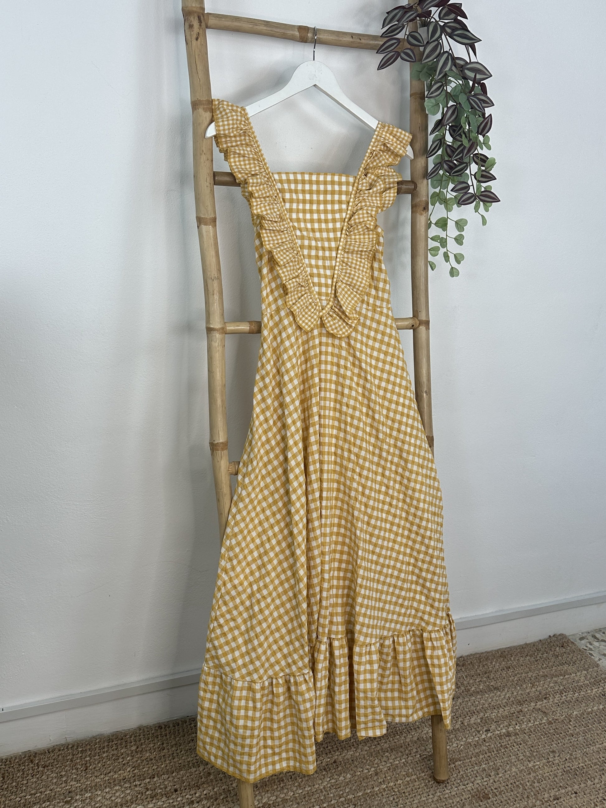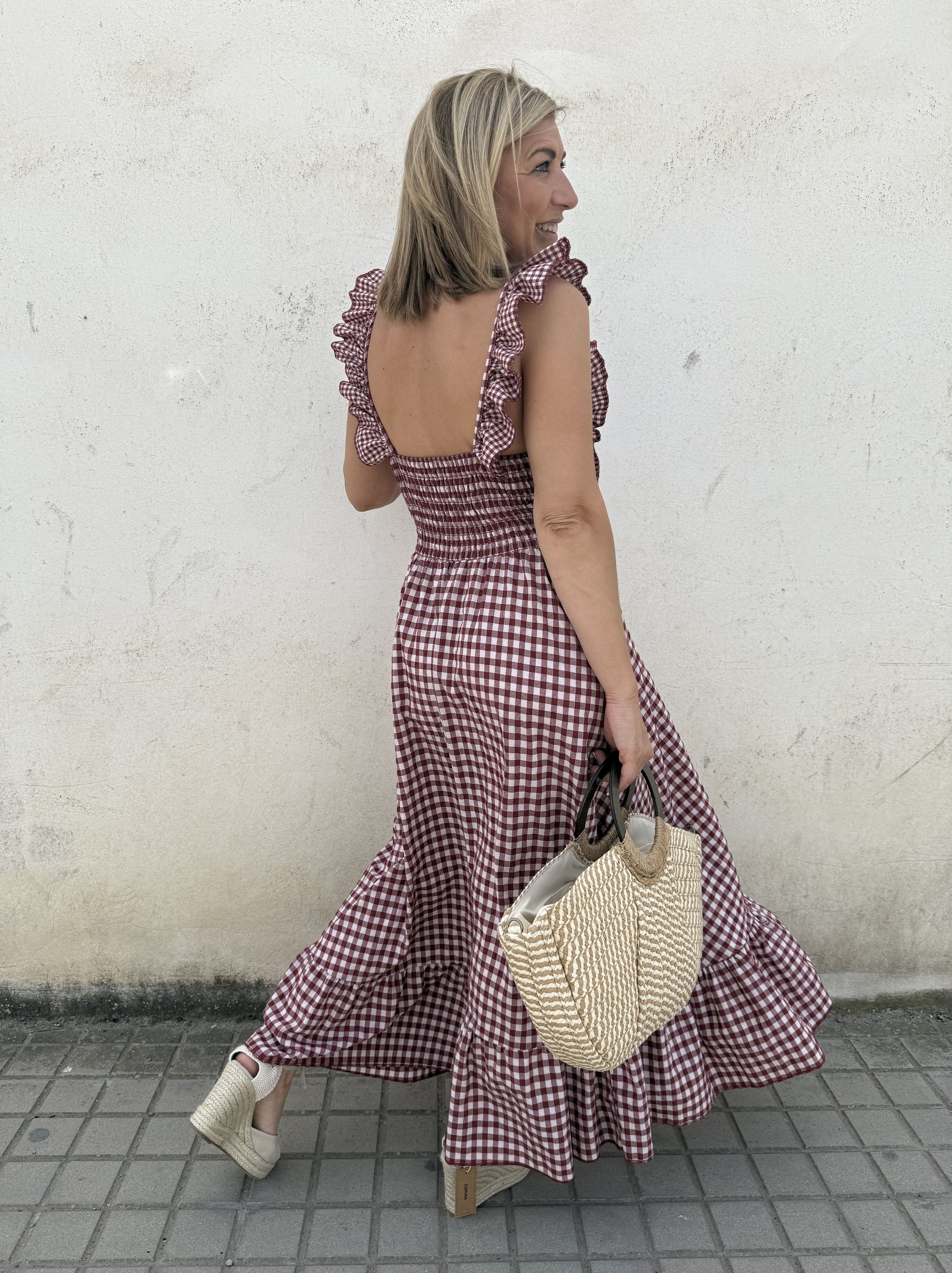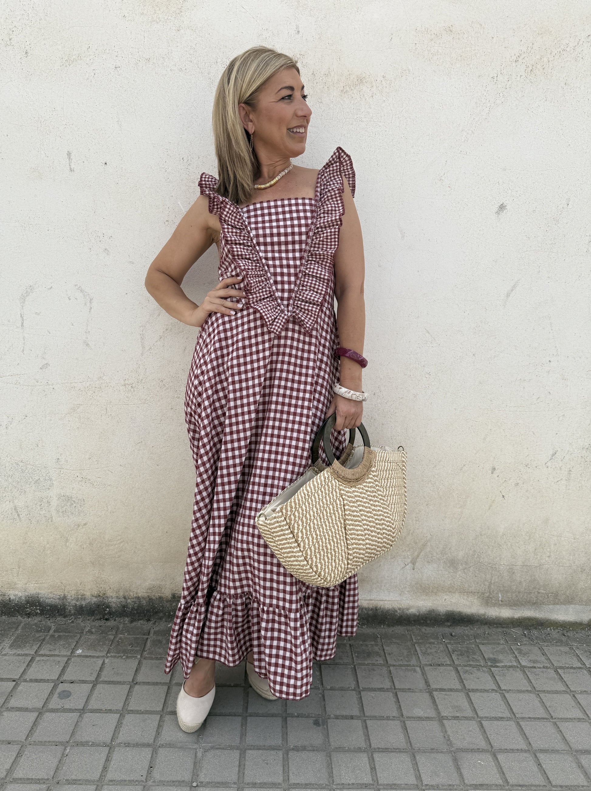 Vestido de tirantas de mujer largo con estampado de cuadritos vichy verde francés y blanco