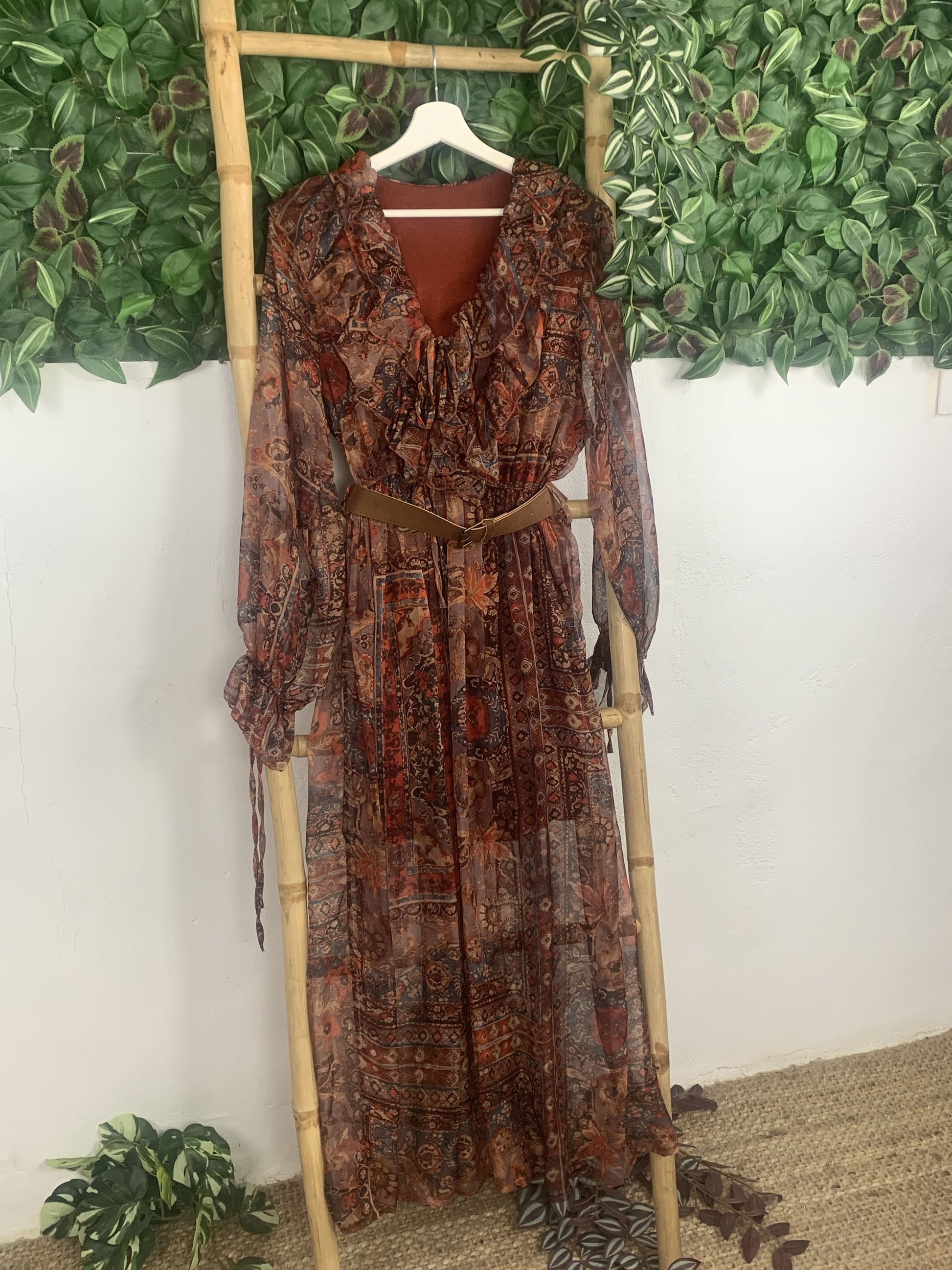 Manga larga abullonada transparente con puño fruncido regulable mediante un lazo y volante.