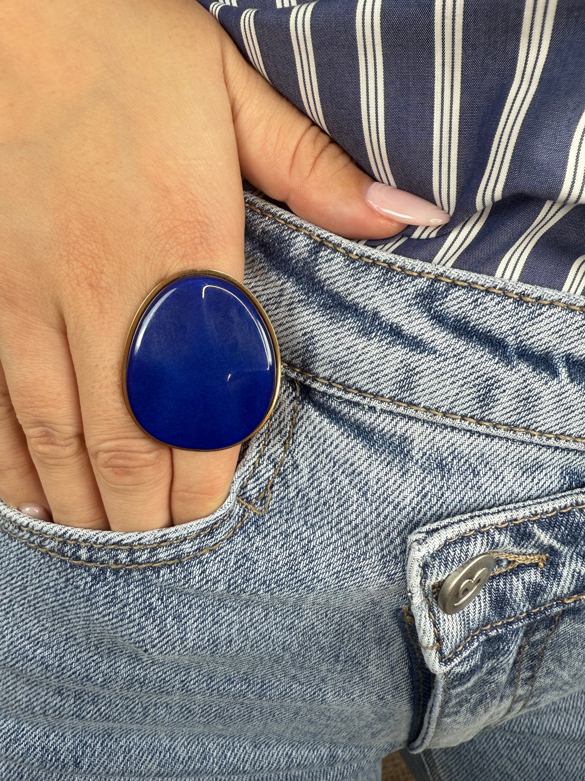 Anillo de acero con piedra maxi.