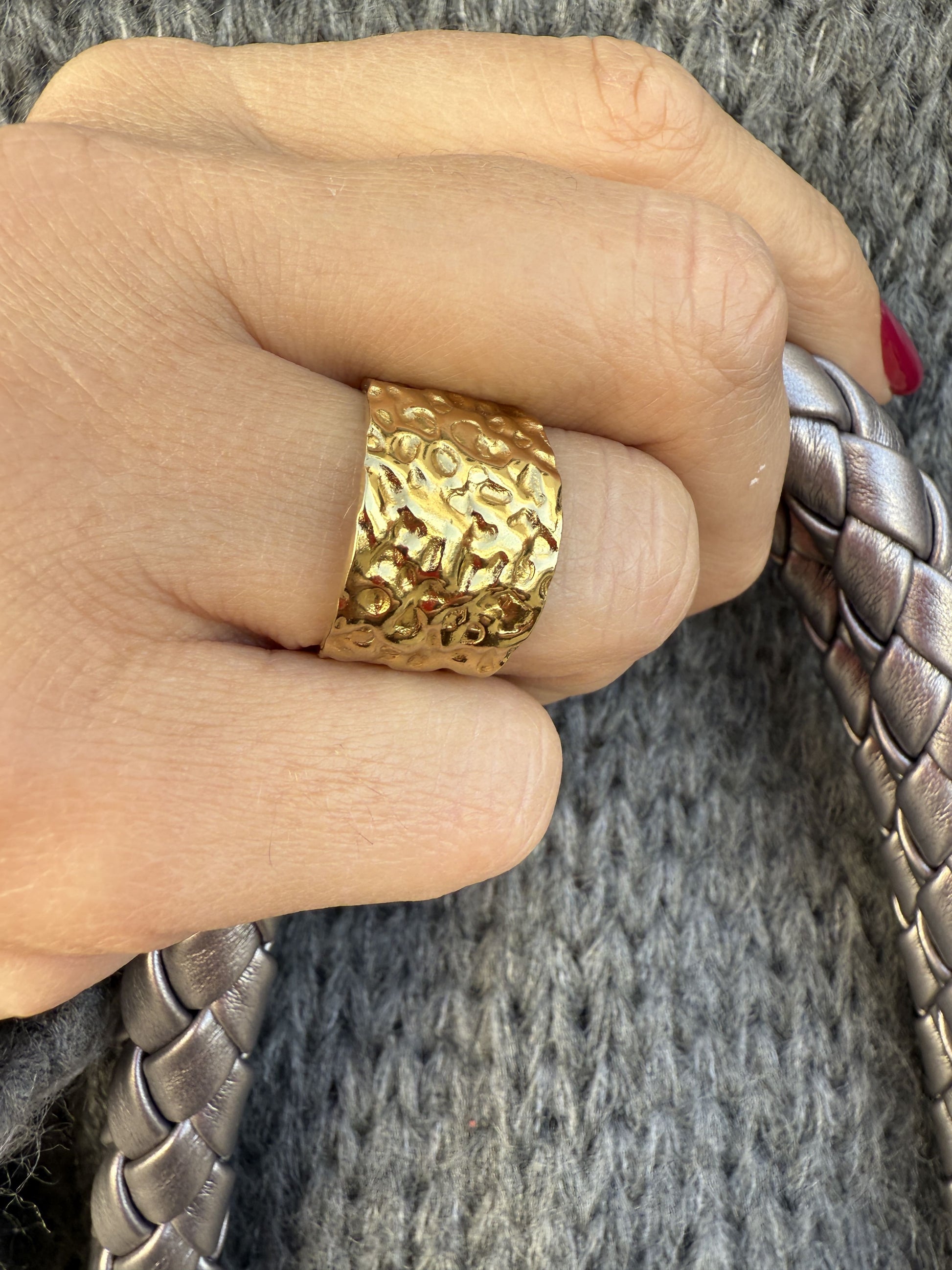 Anillo ancho de acero con relieve.