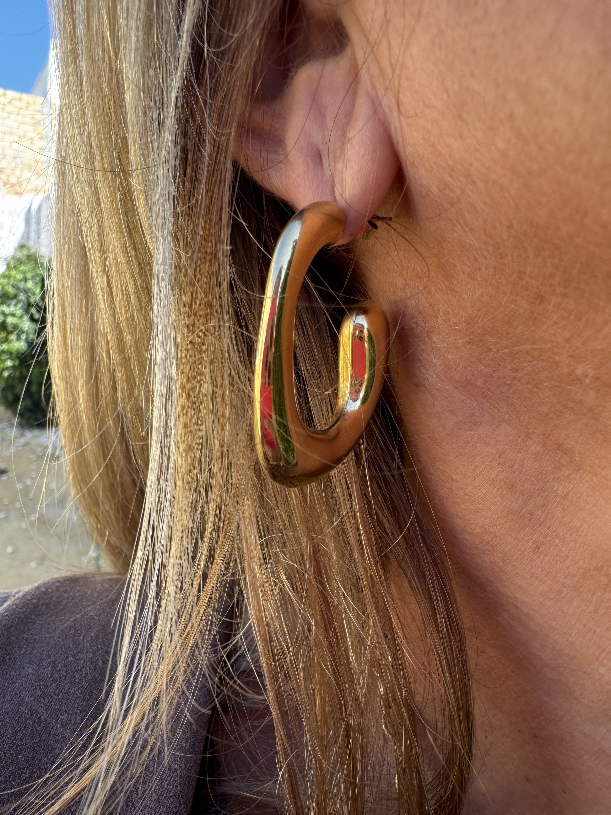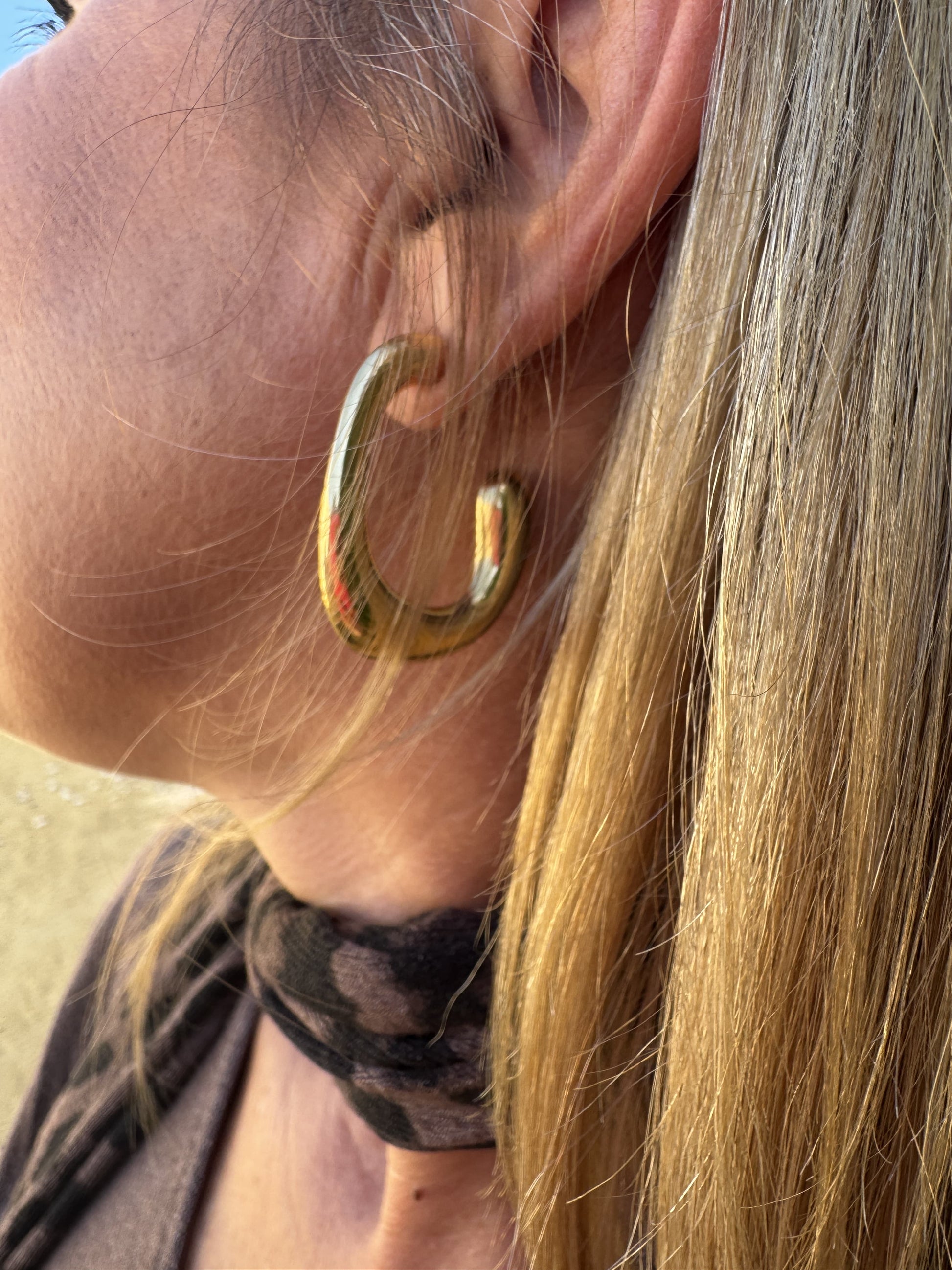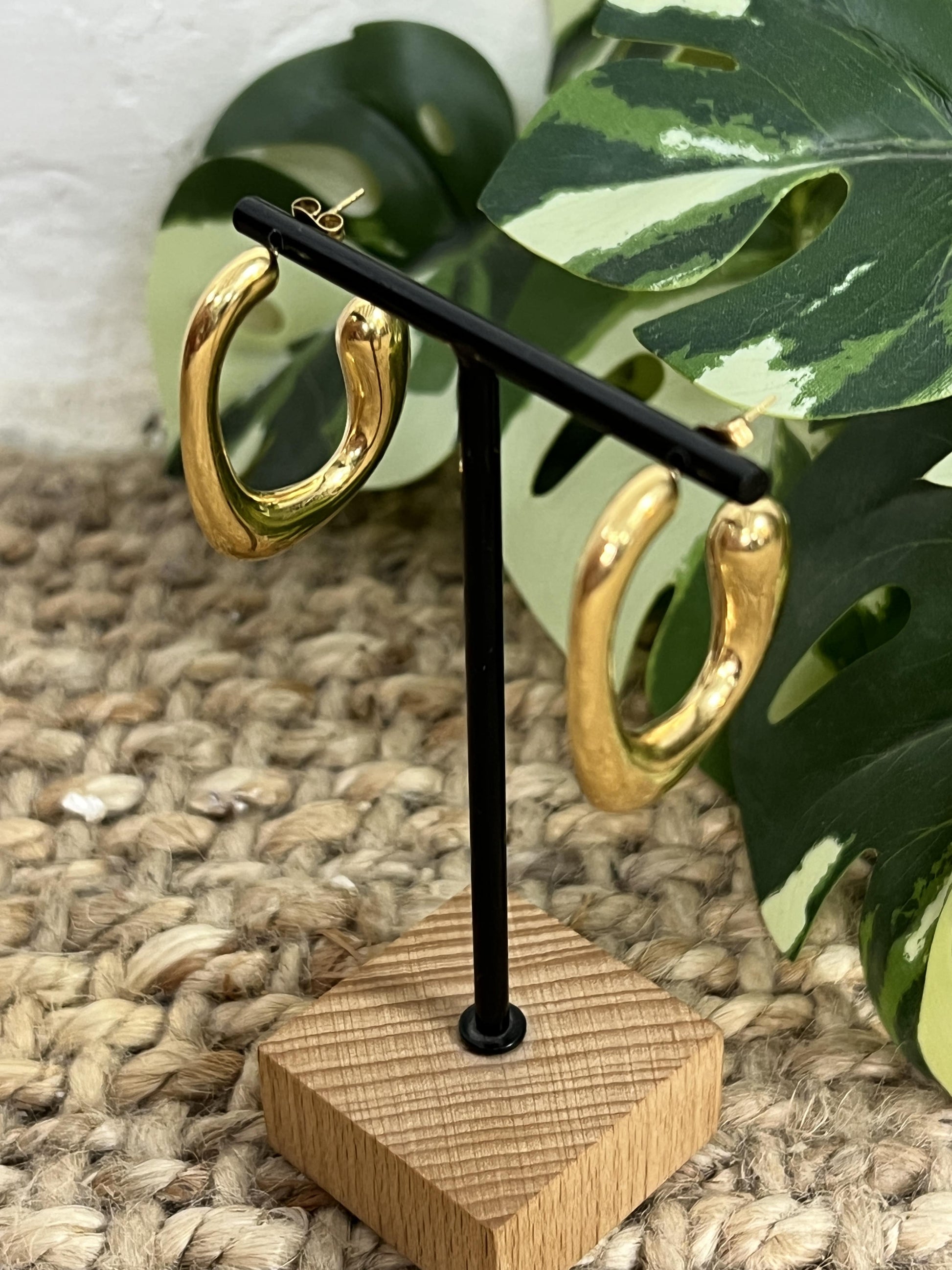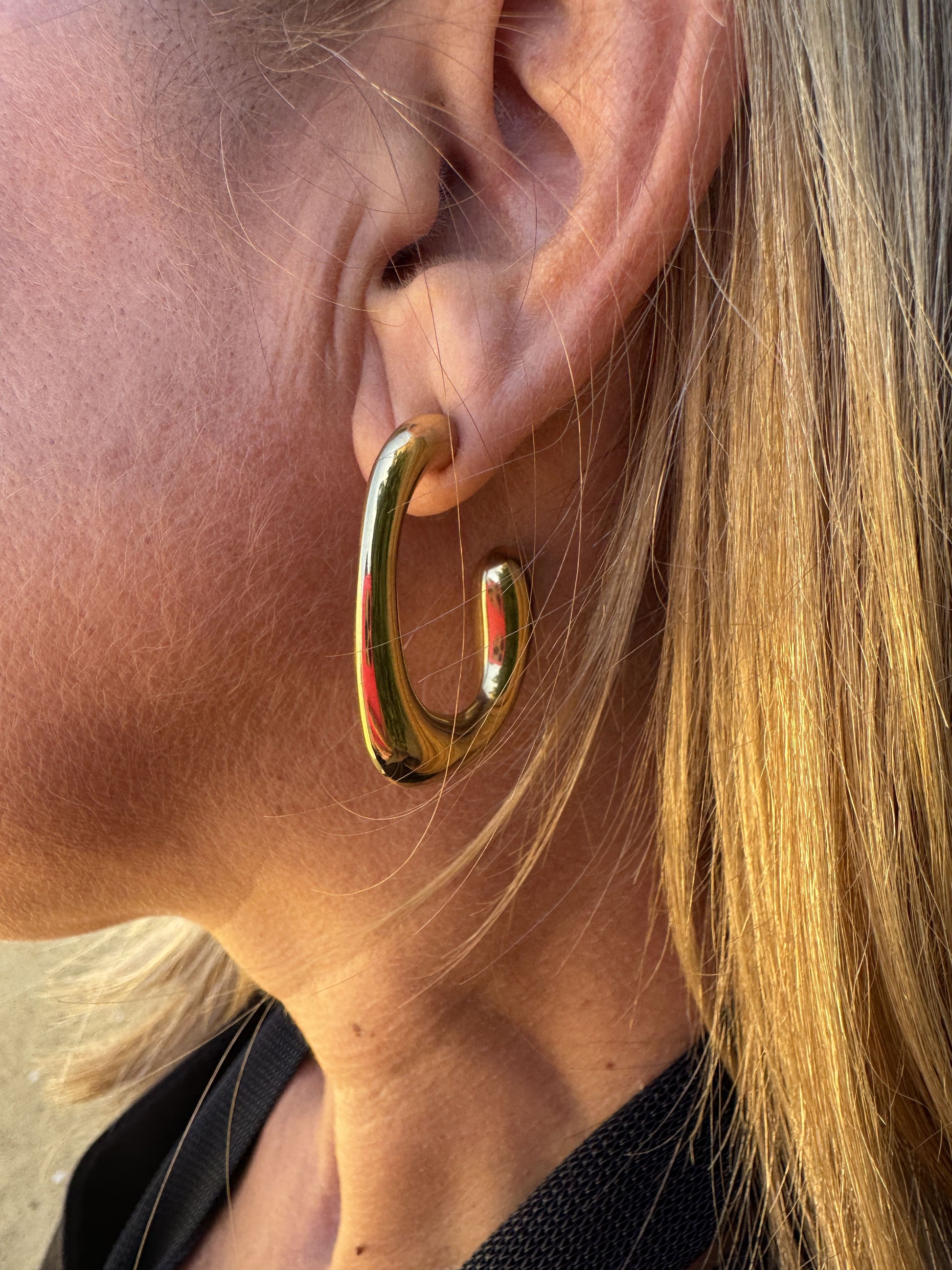 Argolla de acero en forma cuadrada semi cerrada en color dorado.