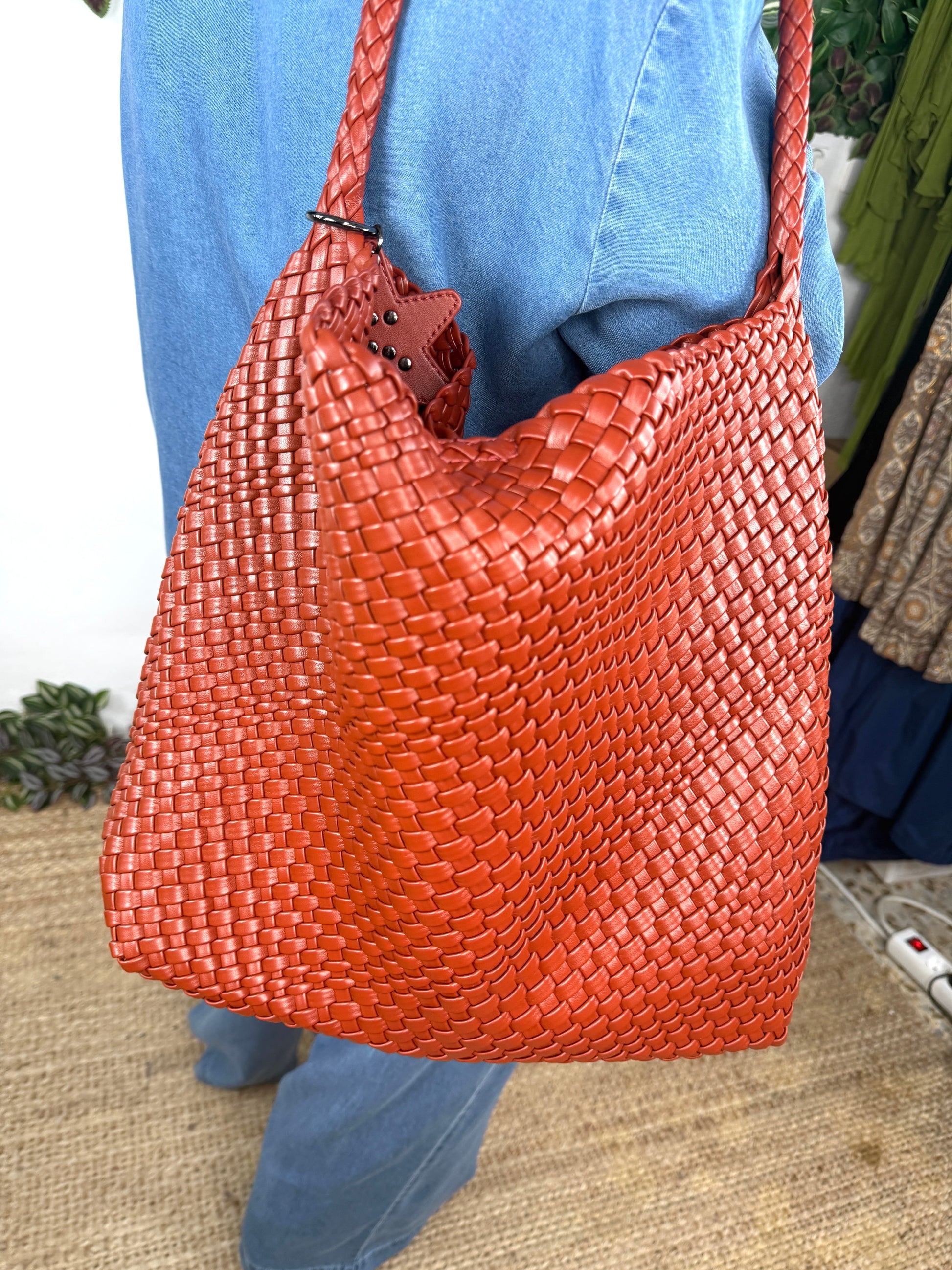 Bolso de mujer amplio con asa y complemento de estrella.