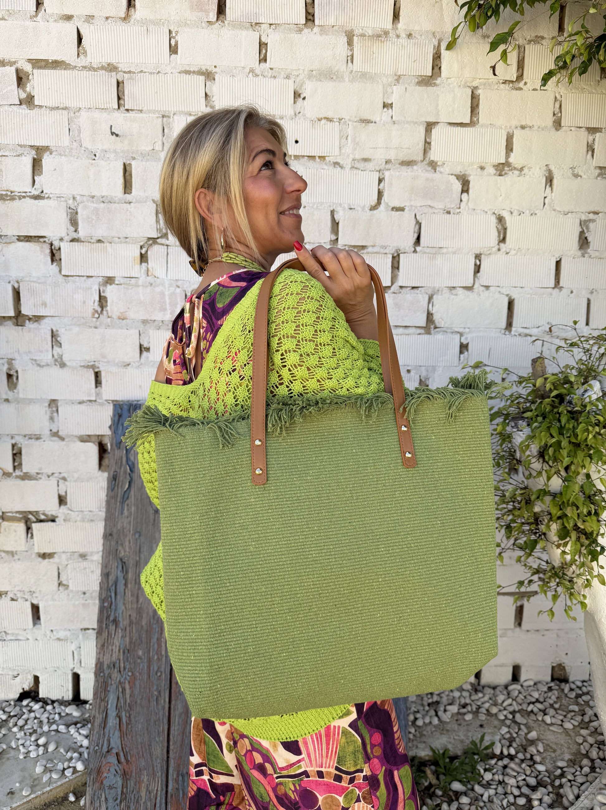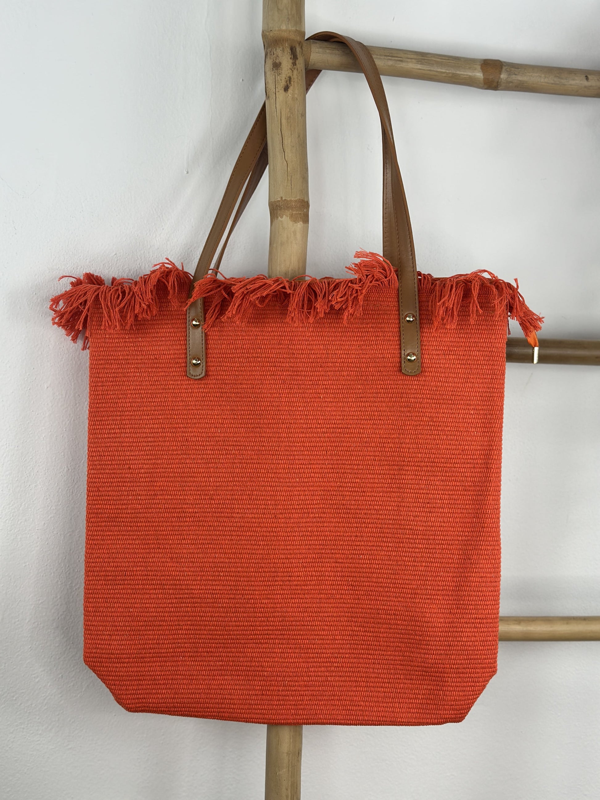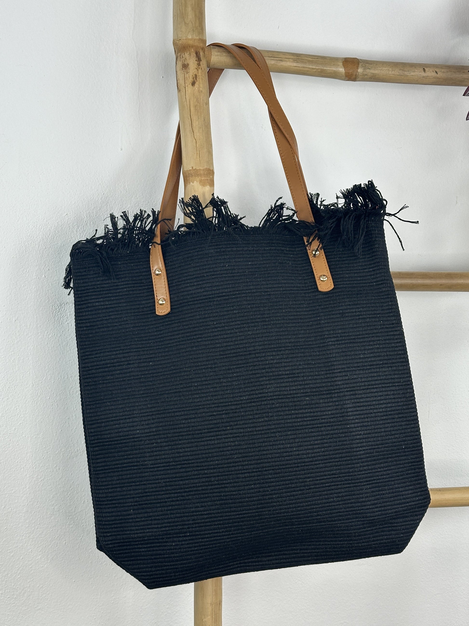 Bolso grande con el borde superior desflecado.