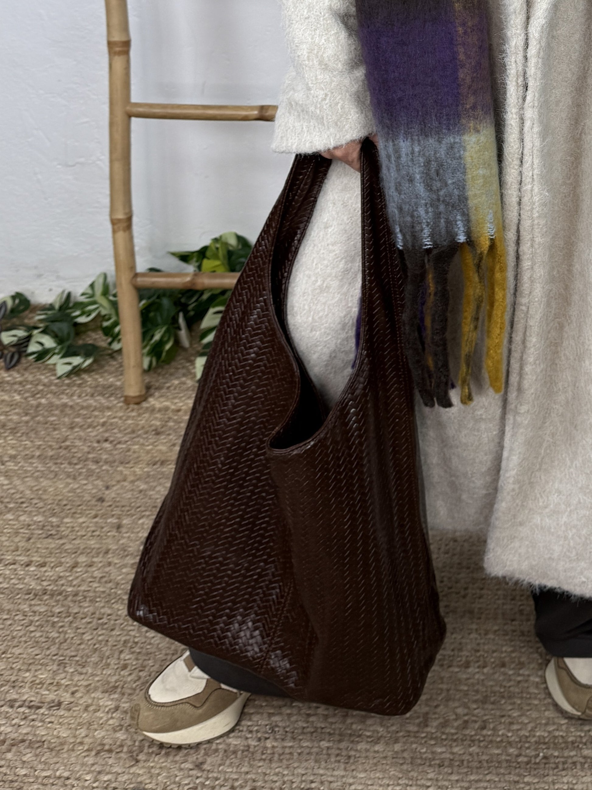 Bolso alargado con forma tipo hobo.