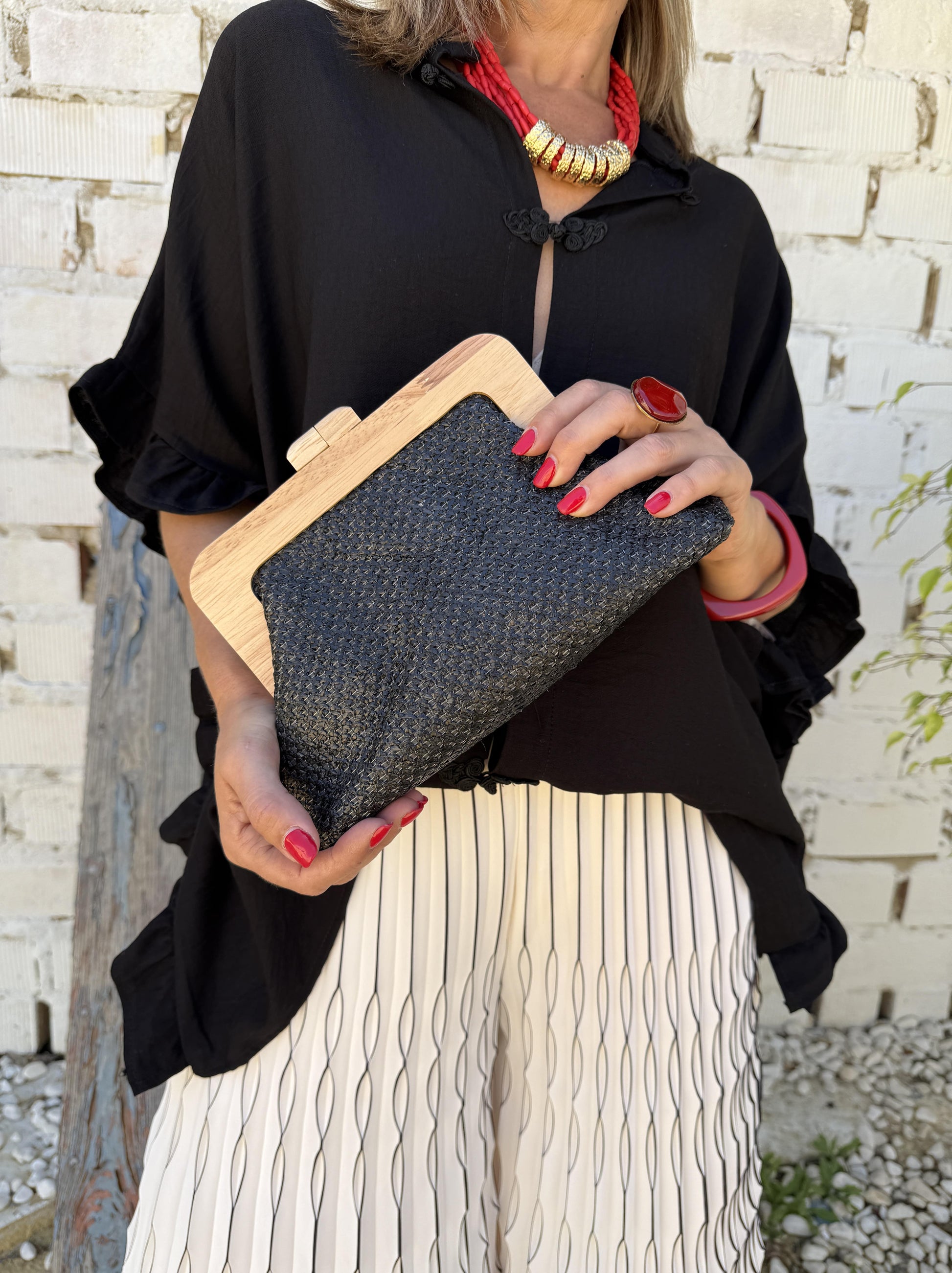 Disponible en negro, beige y rayas horizontales en color pastel.