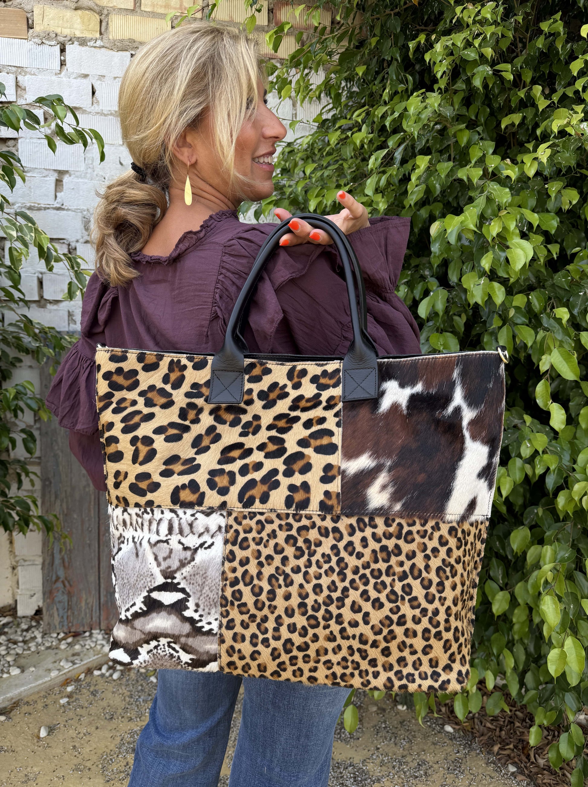 Bolsa shopper em couro estampada com estampa animal.