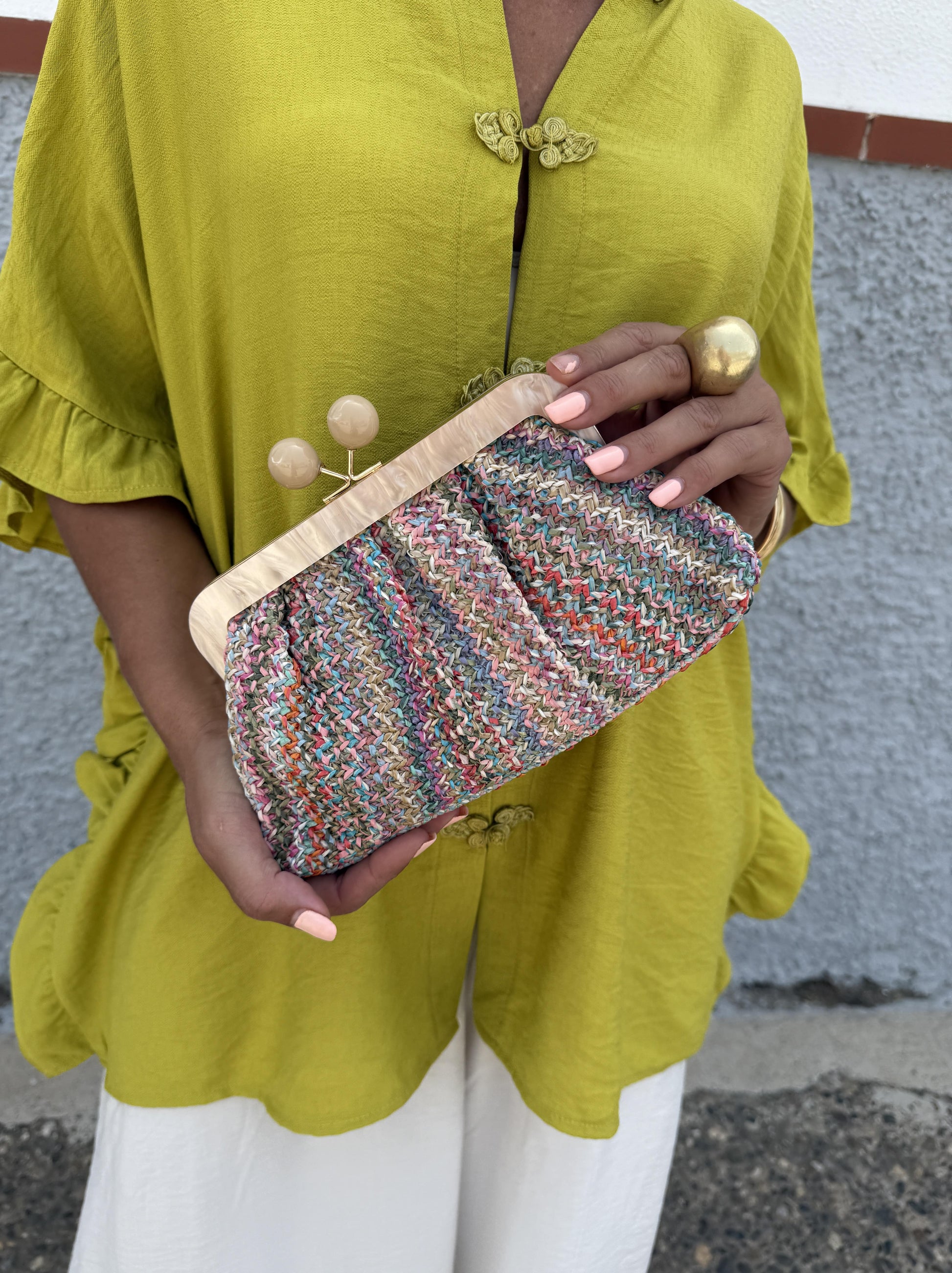 Incluye cadena dorada en el interior para poder colgarse el bolso.