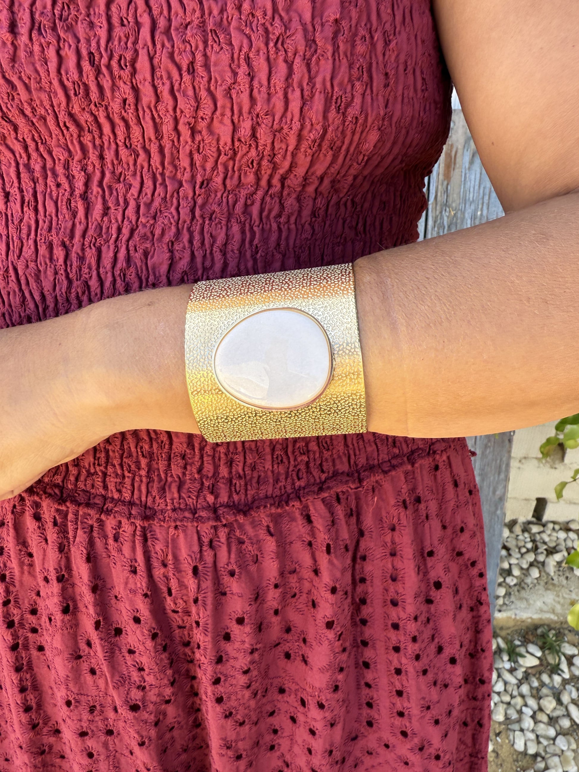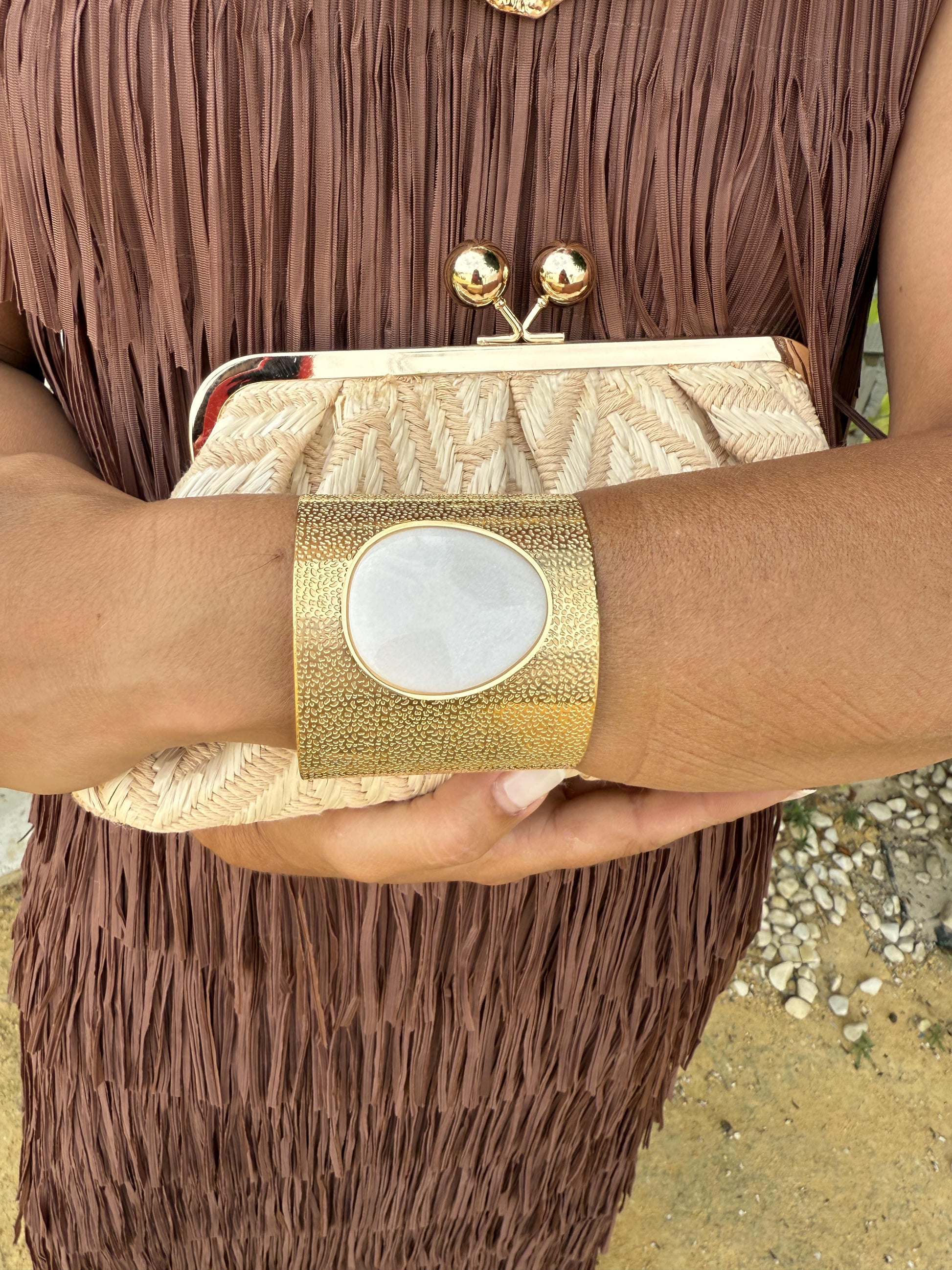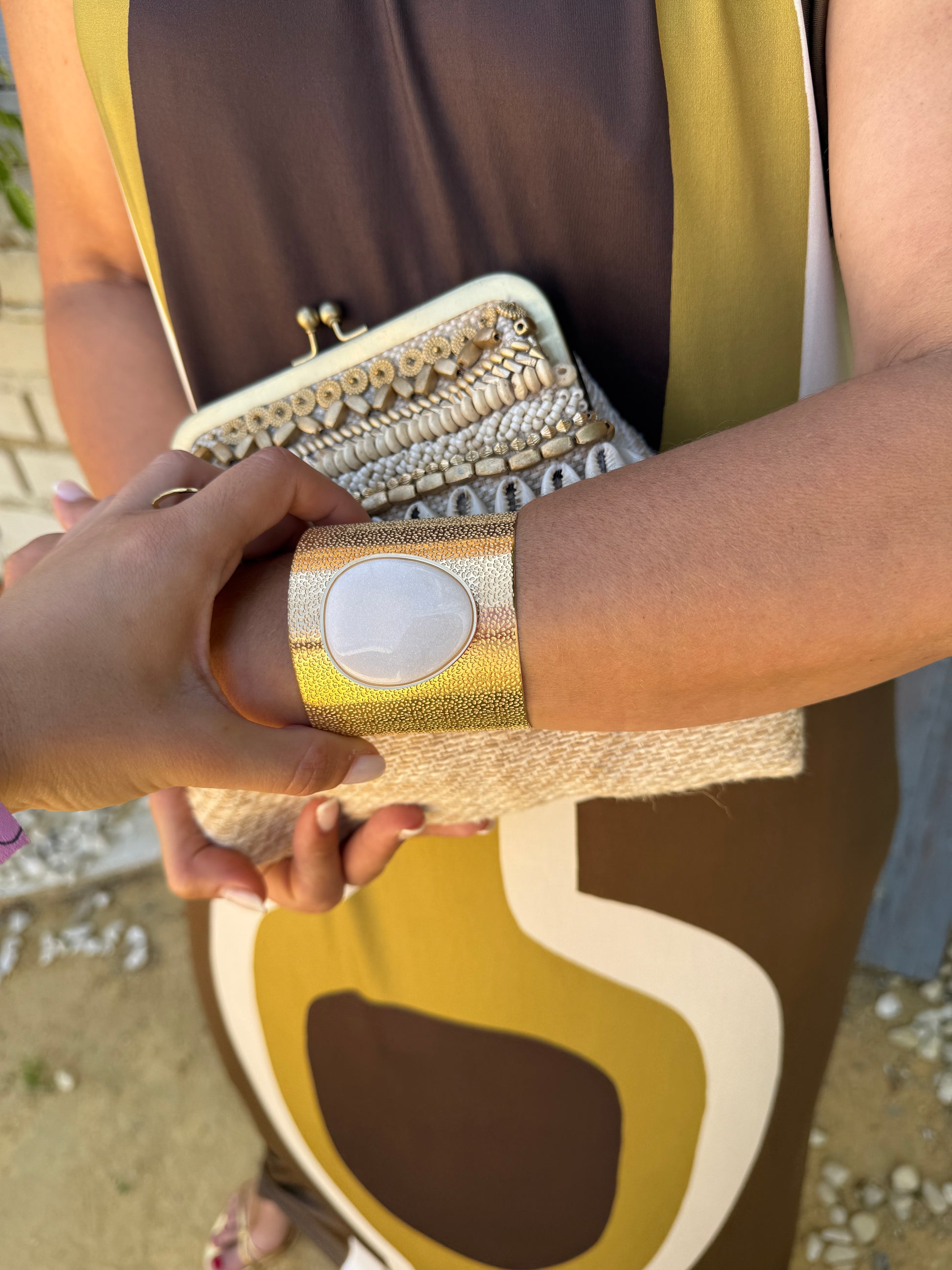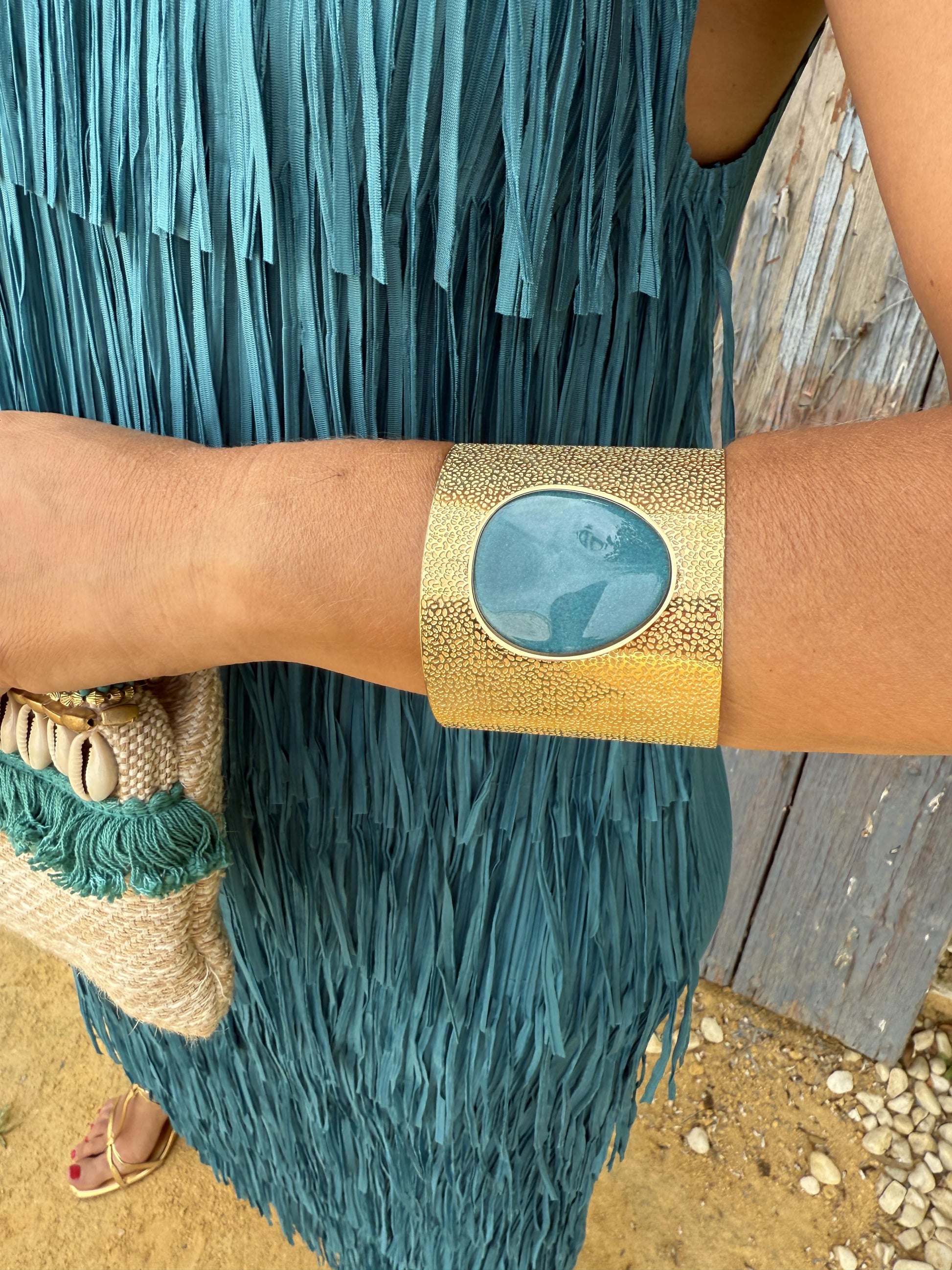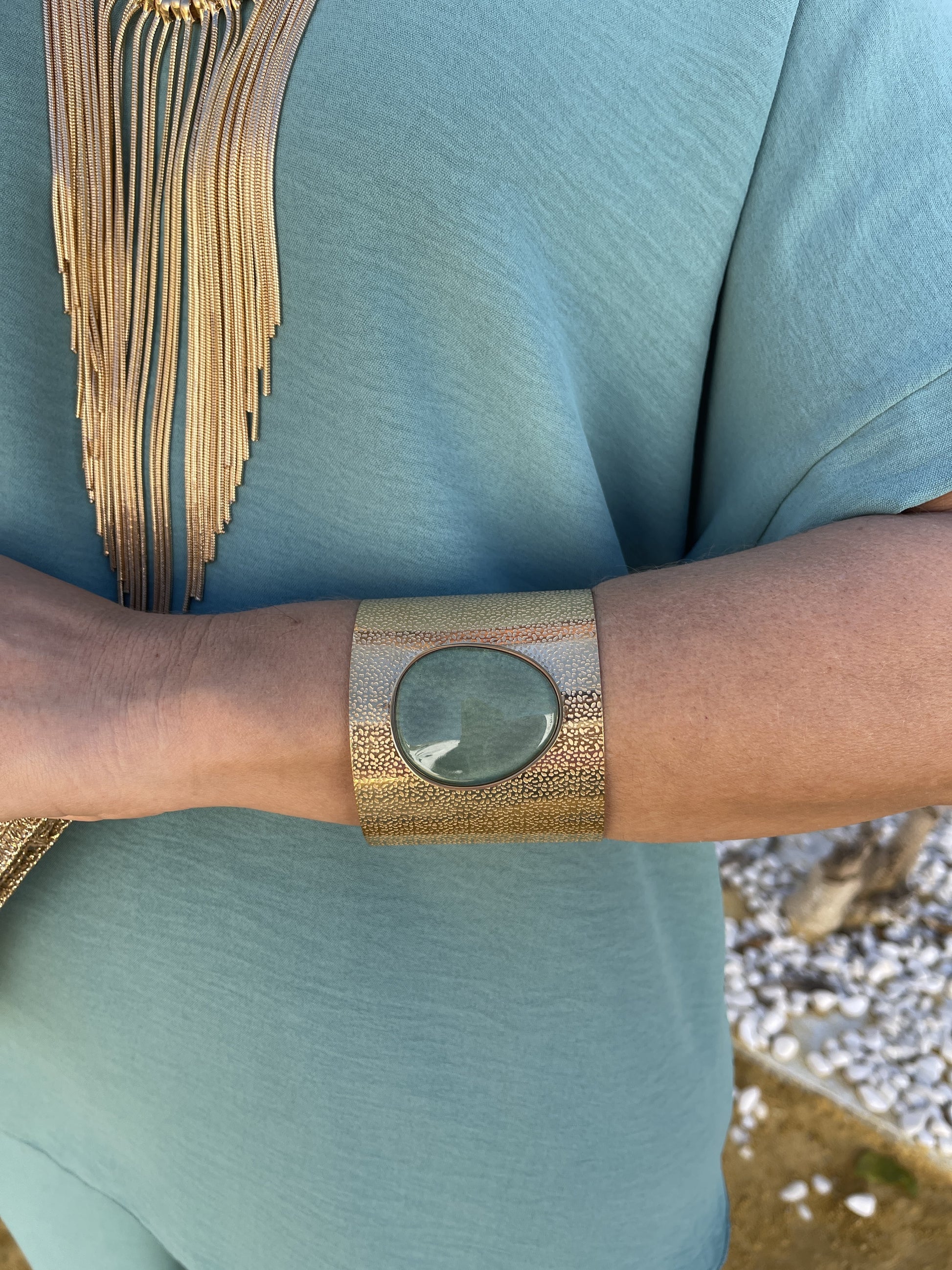 Pulseira feminina dourada com pedra natural no centro