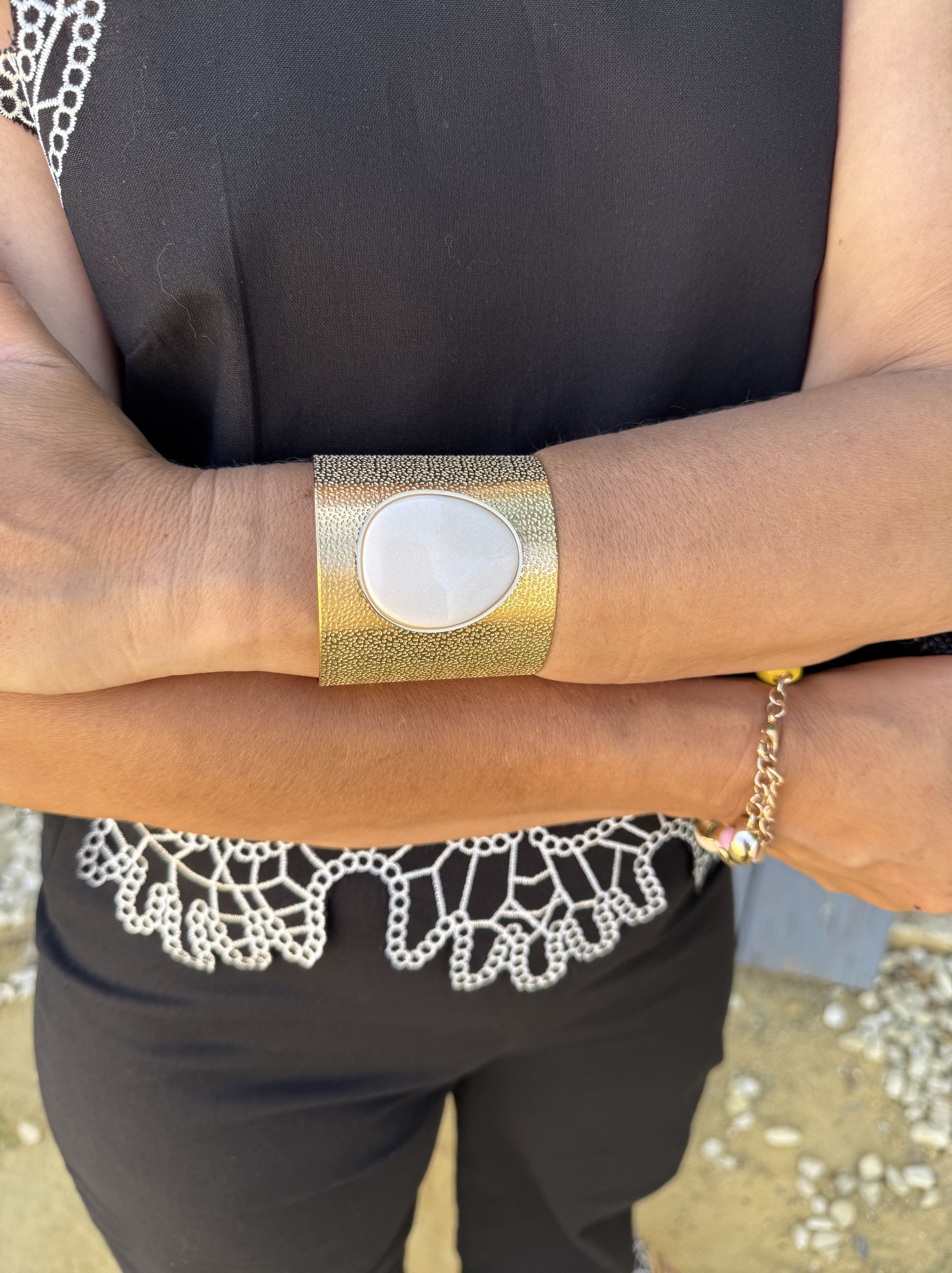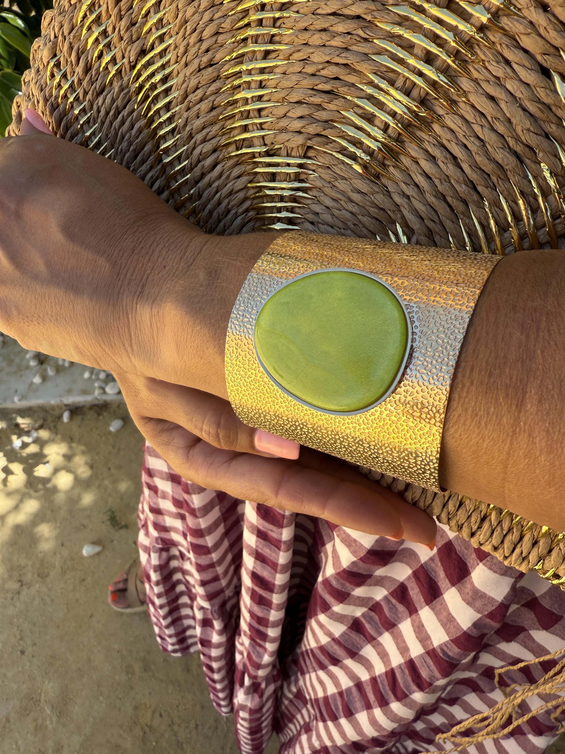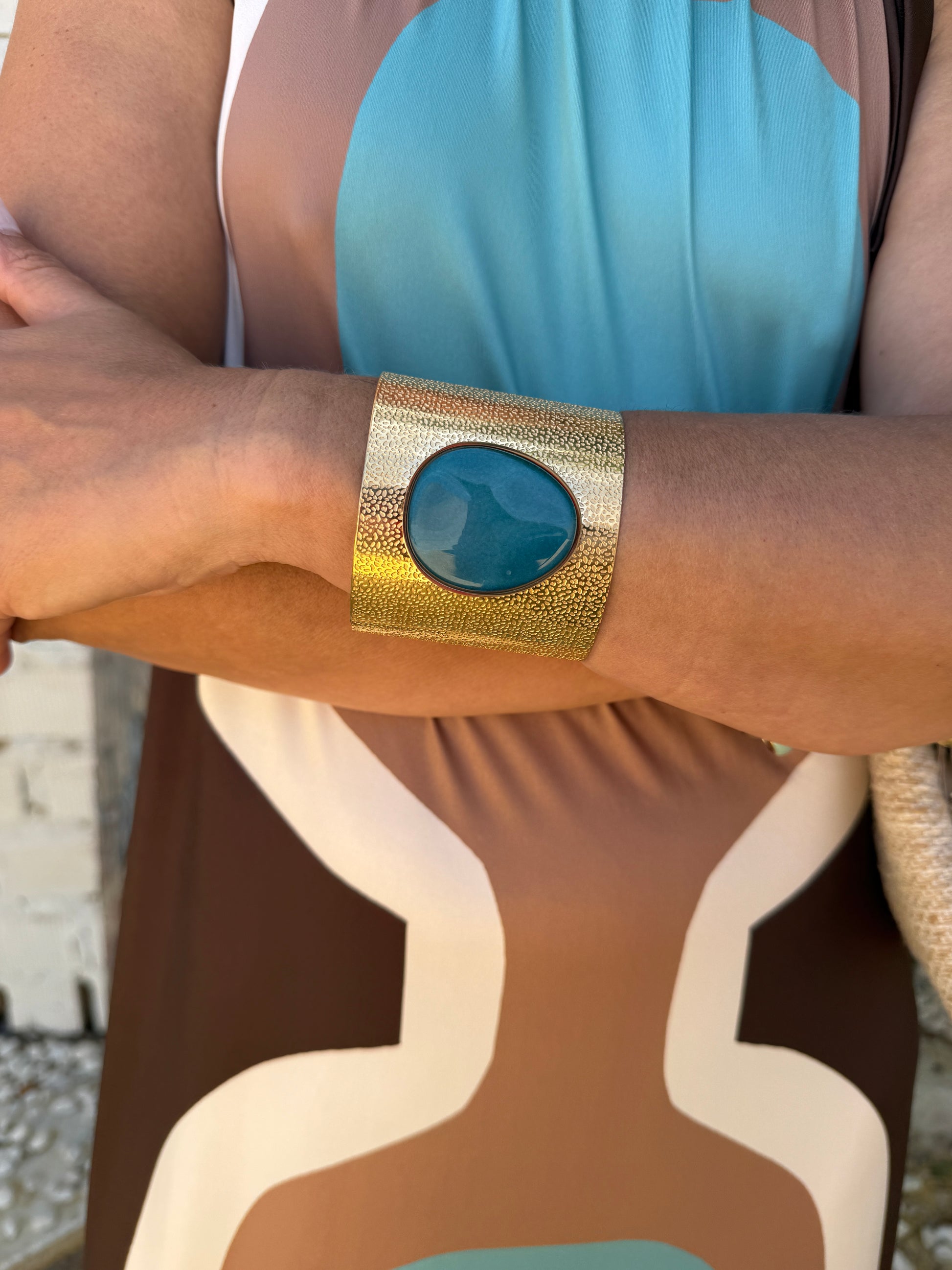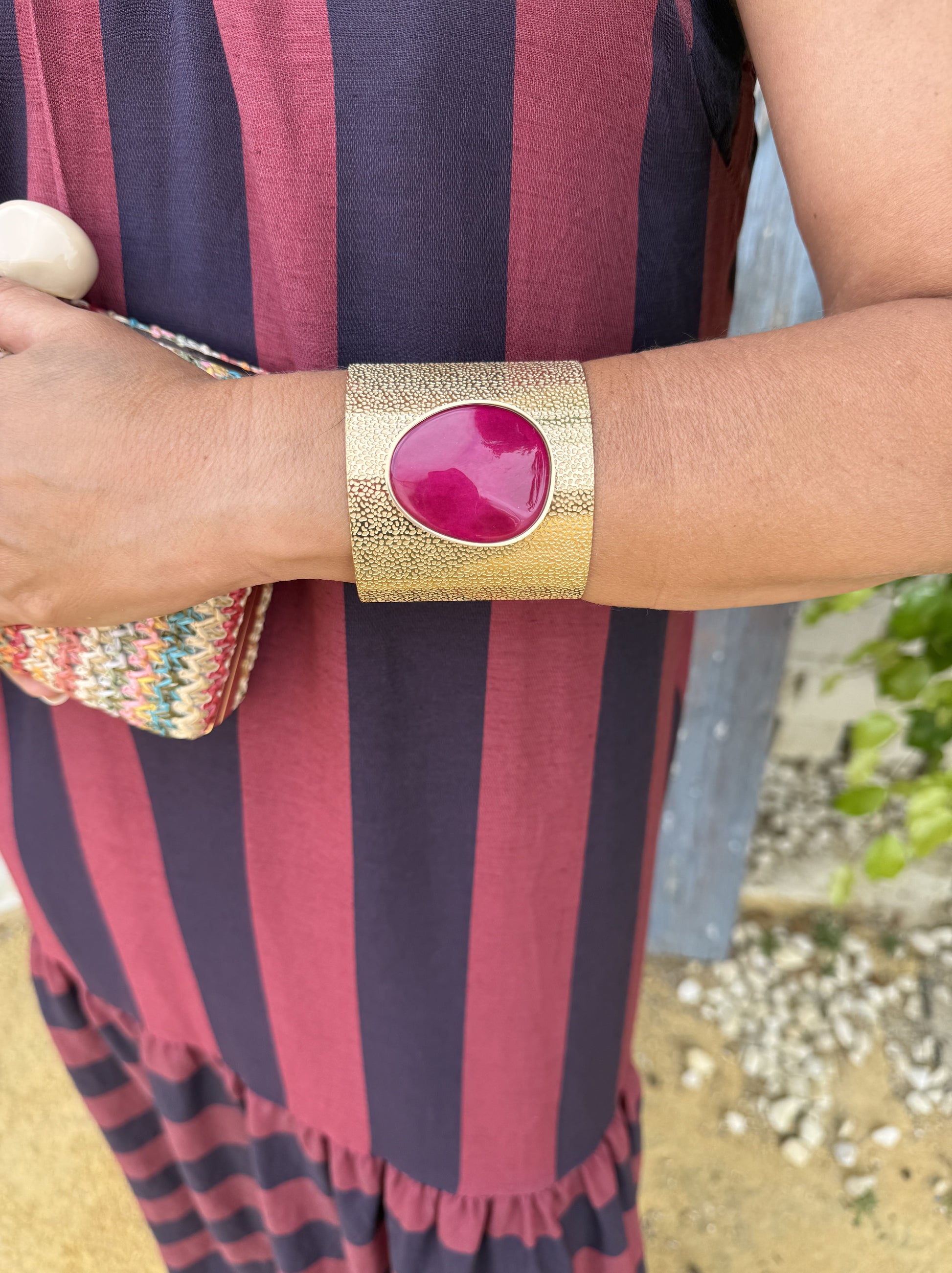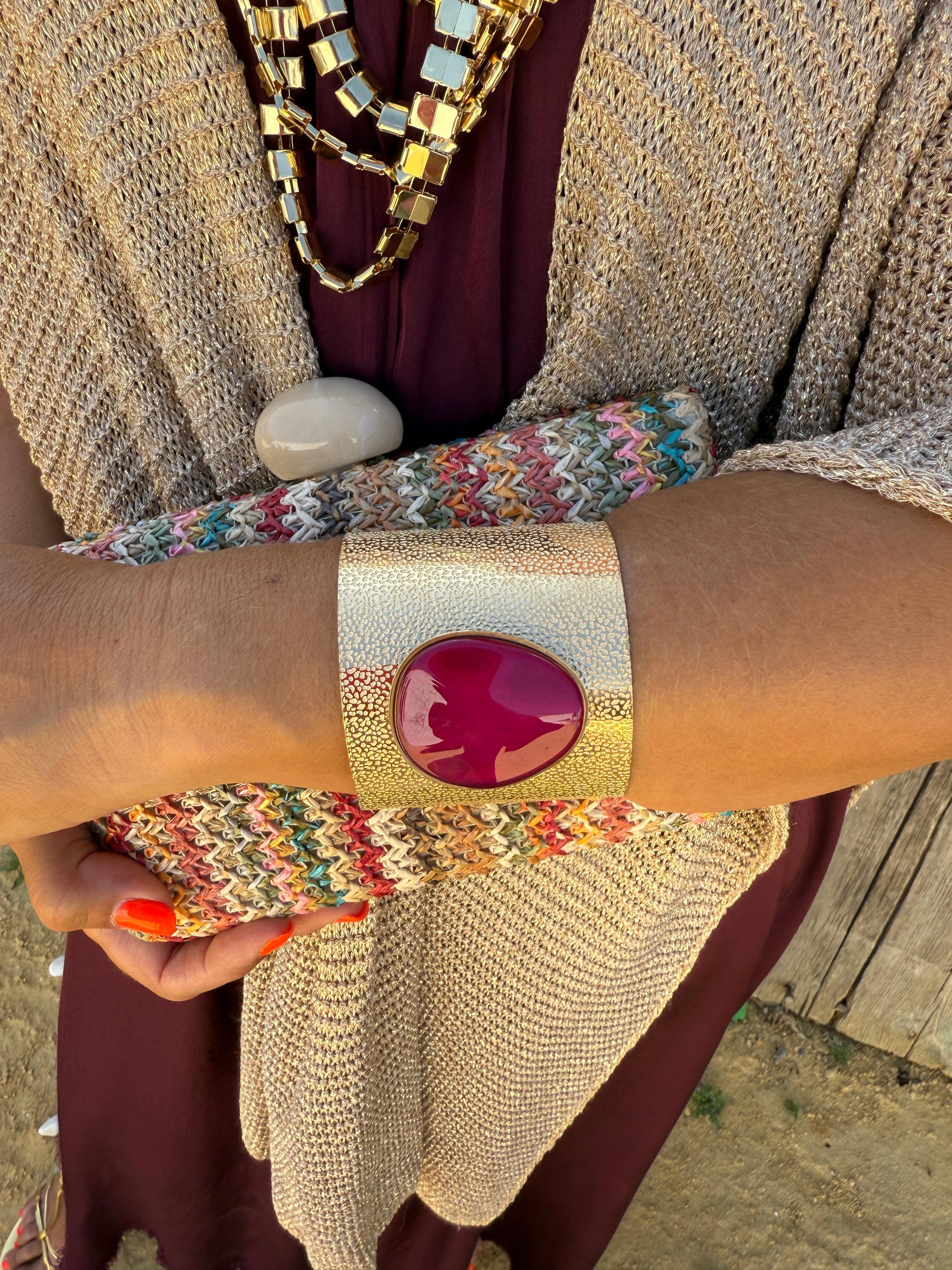 Pulseira feminina dourada com pedra natural no centro