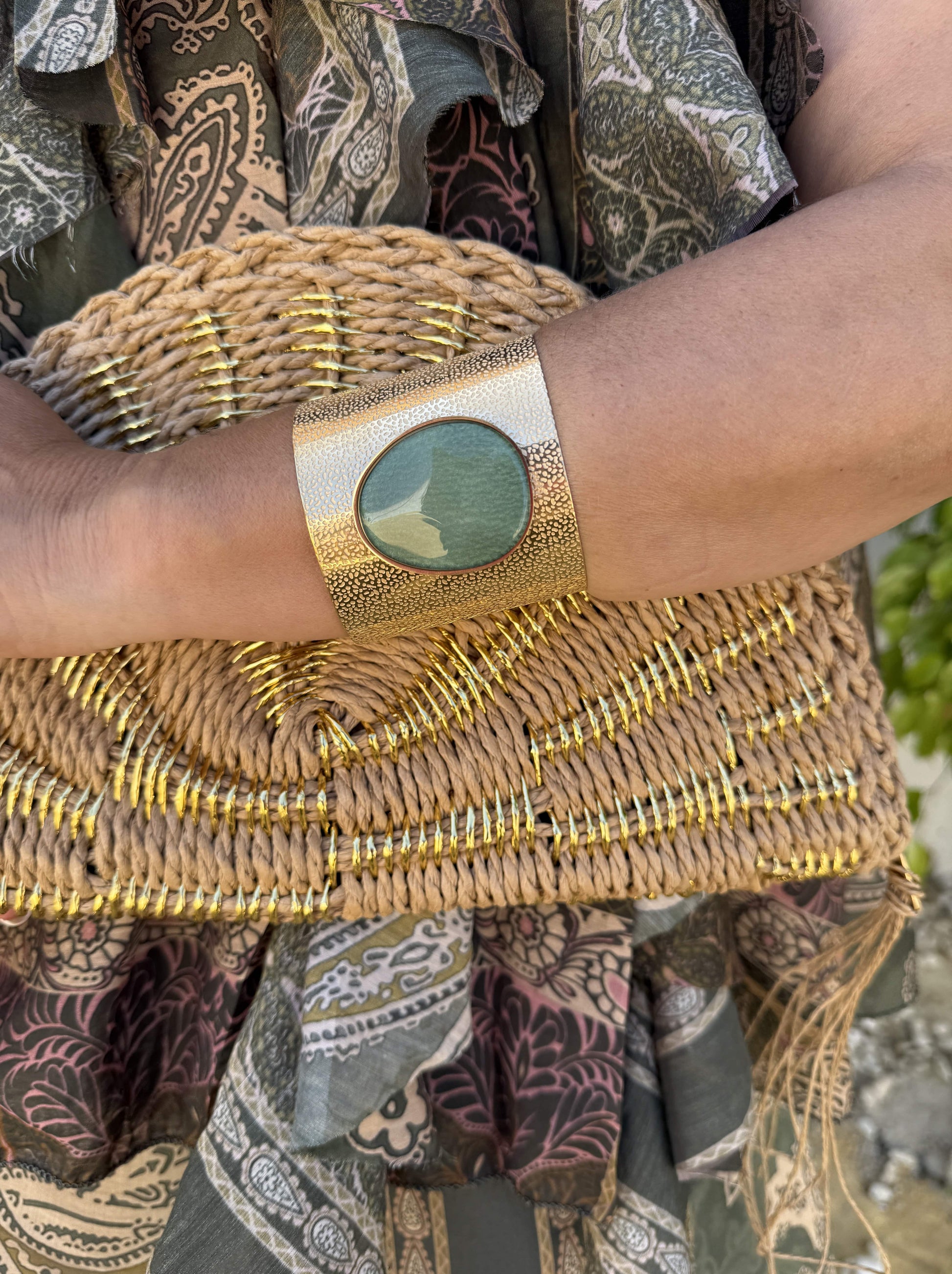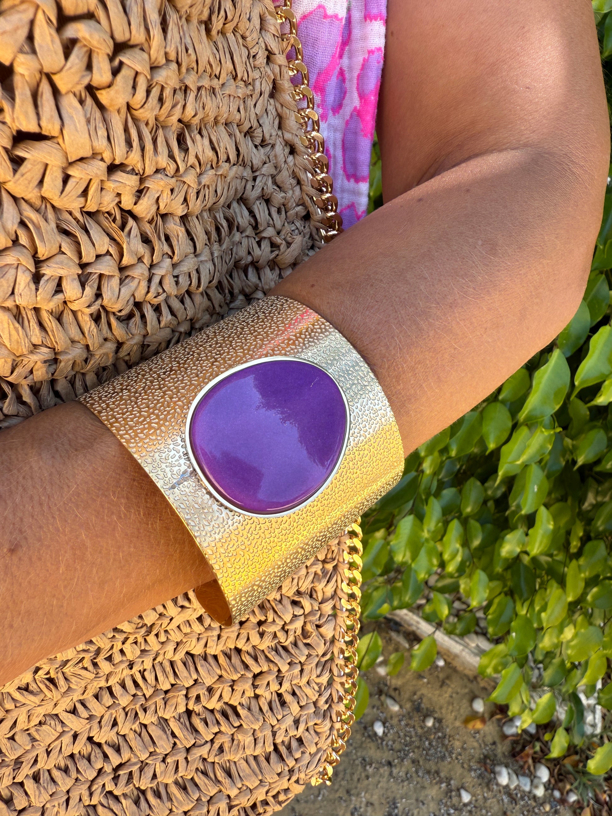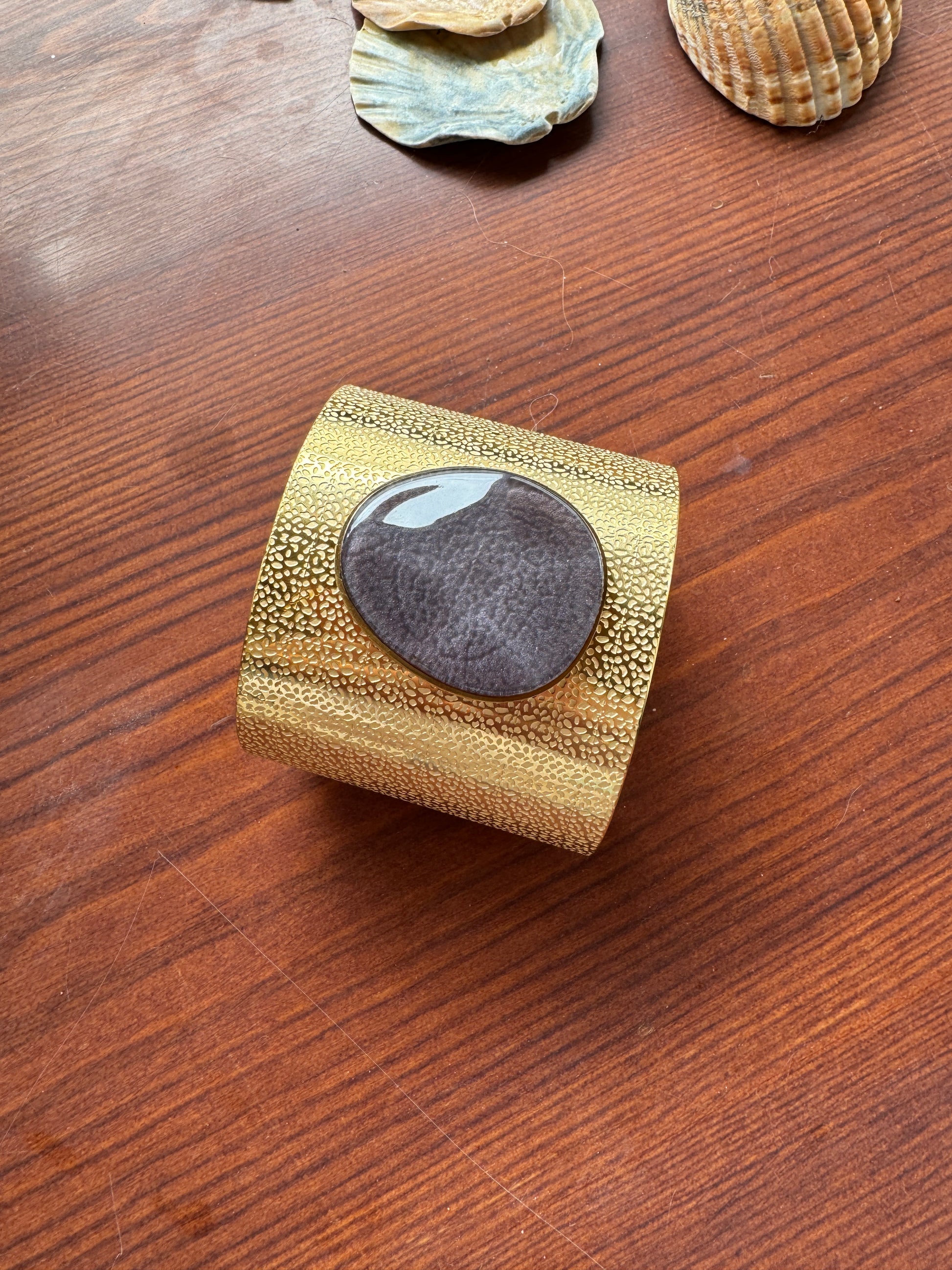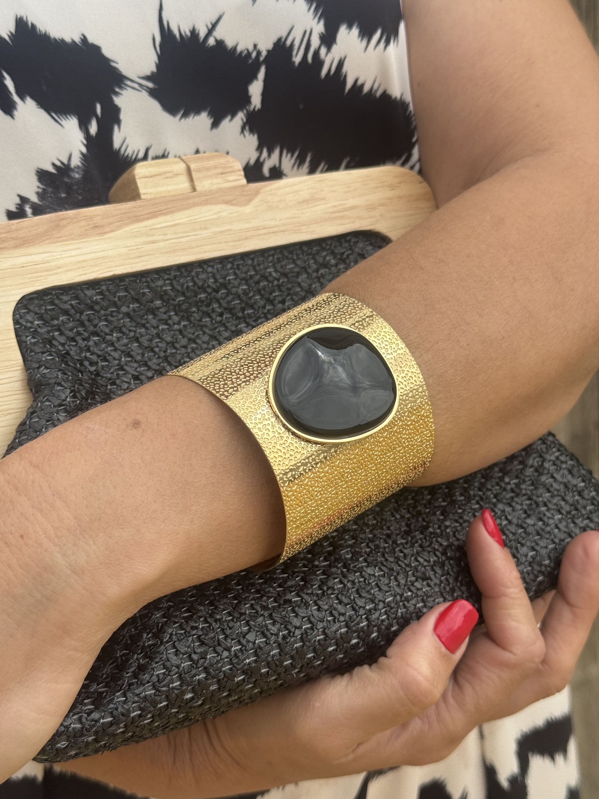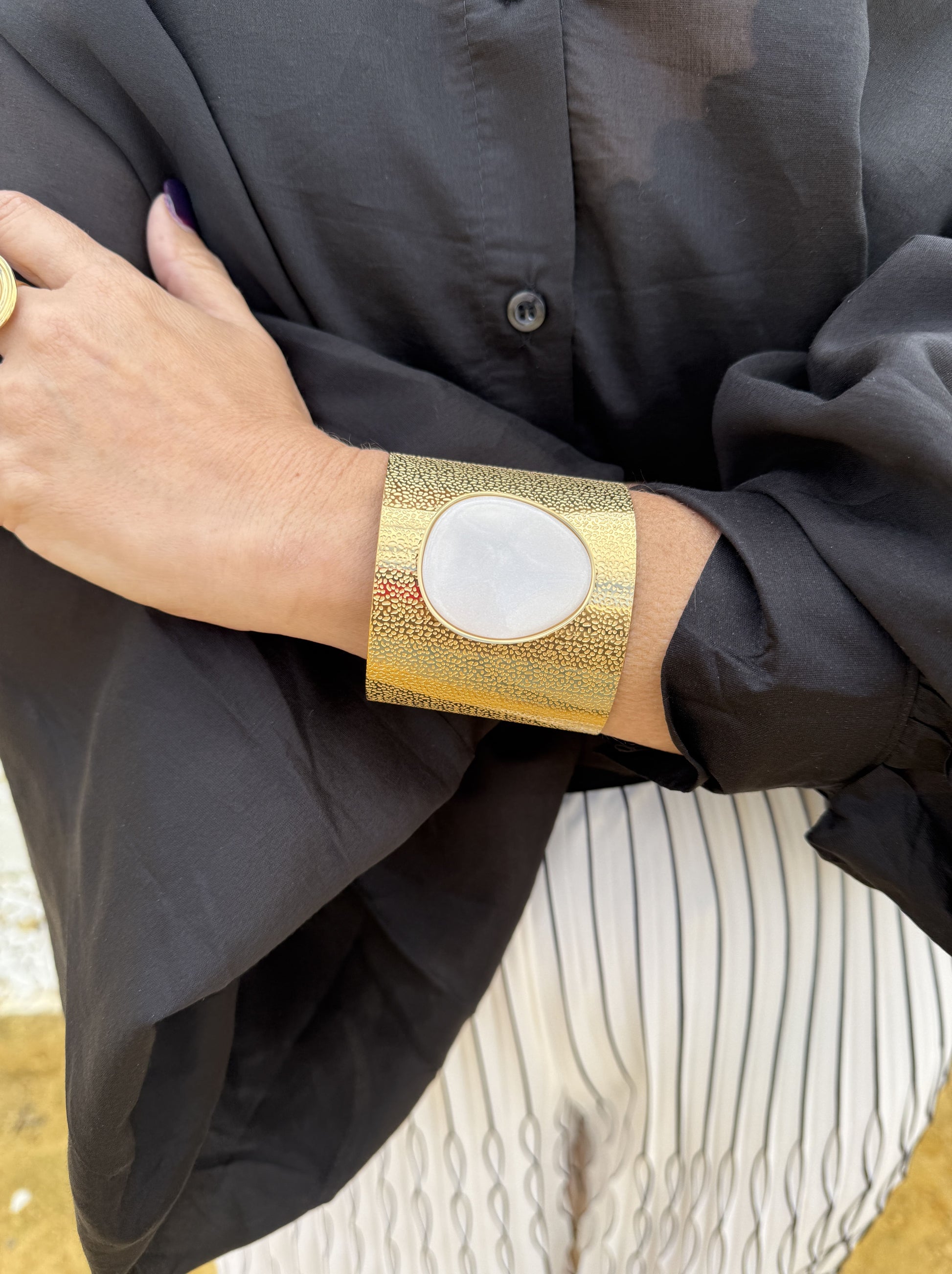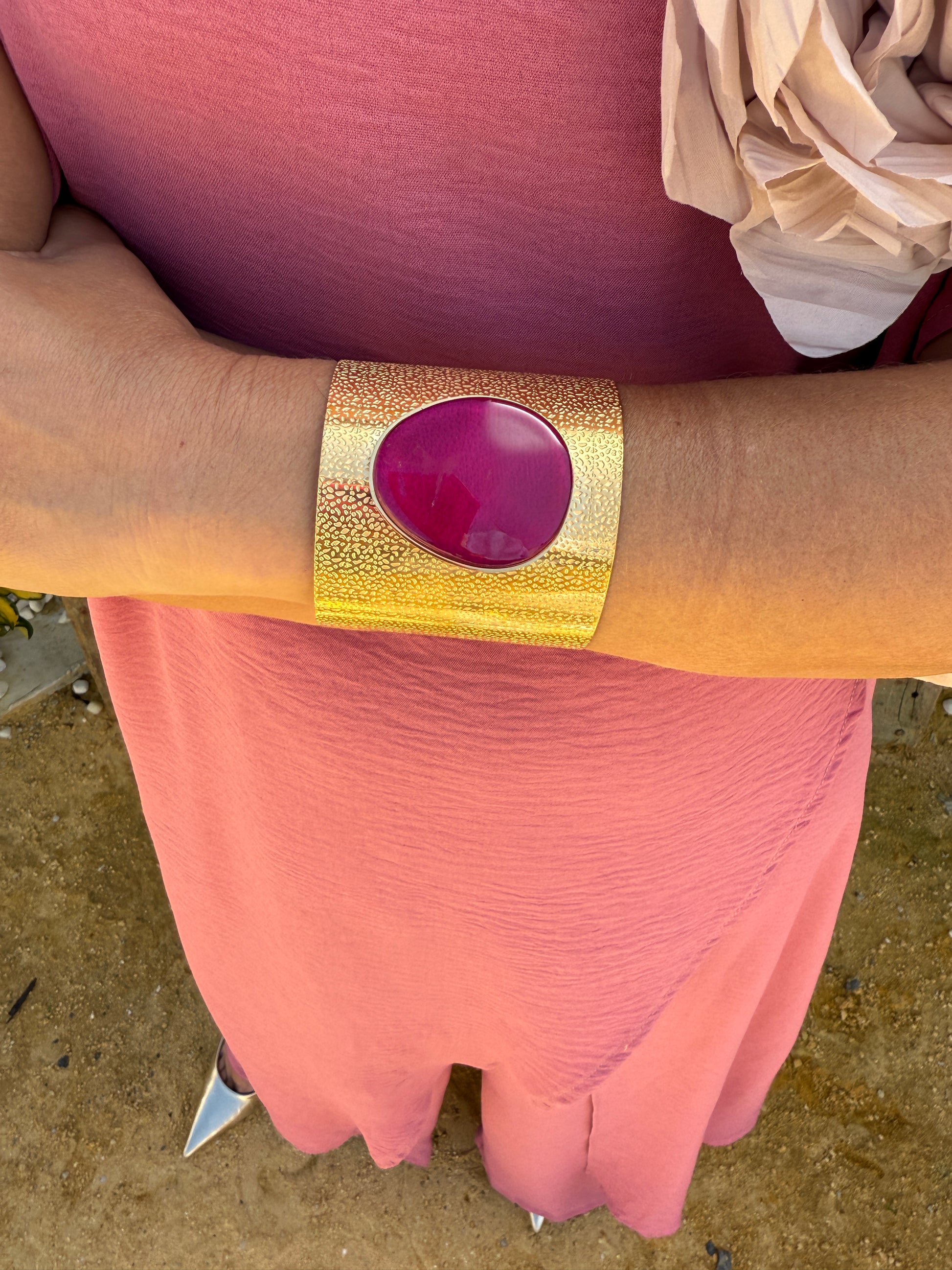 Pulseira feminina dourada com pedra natural no centro