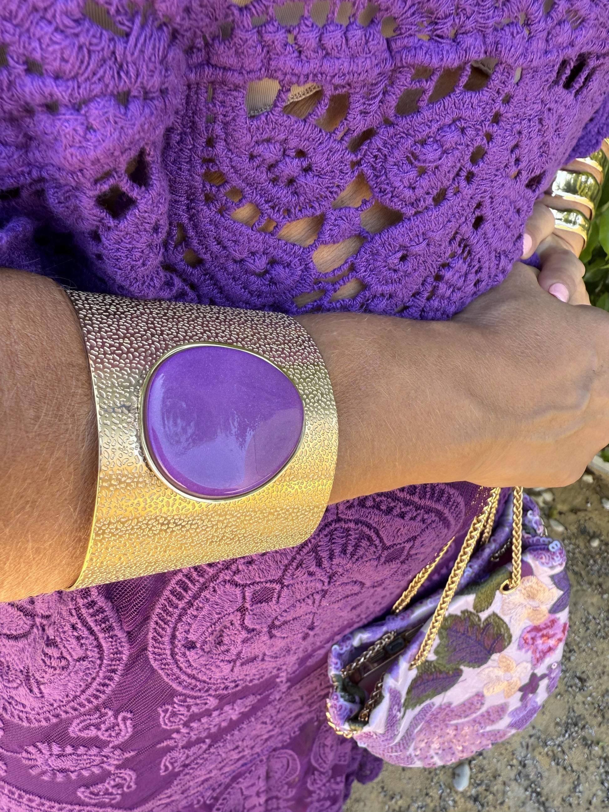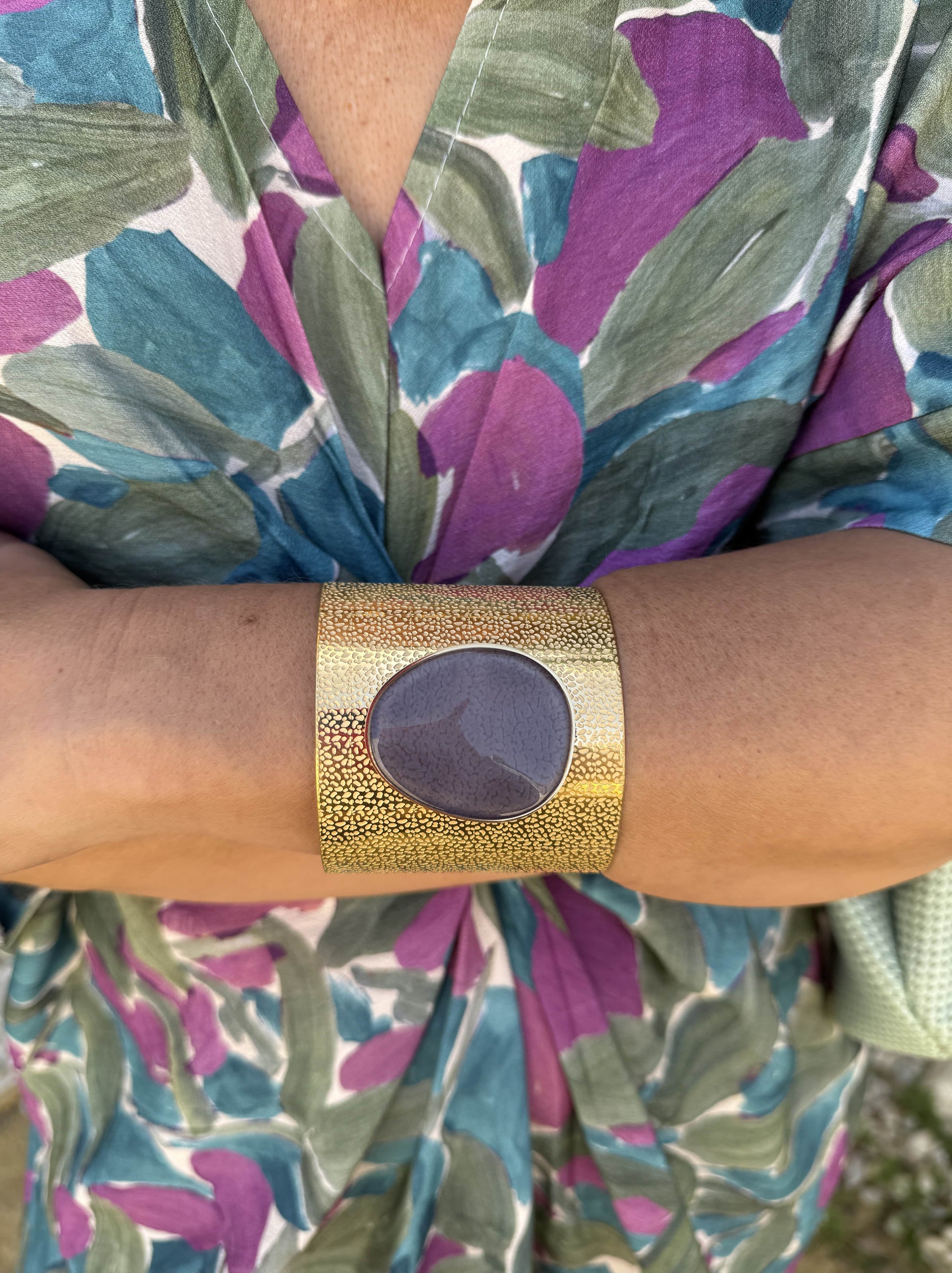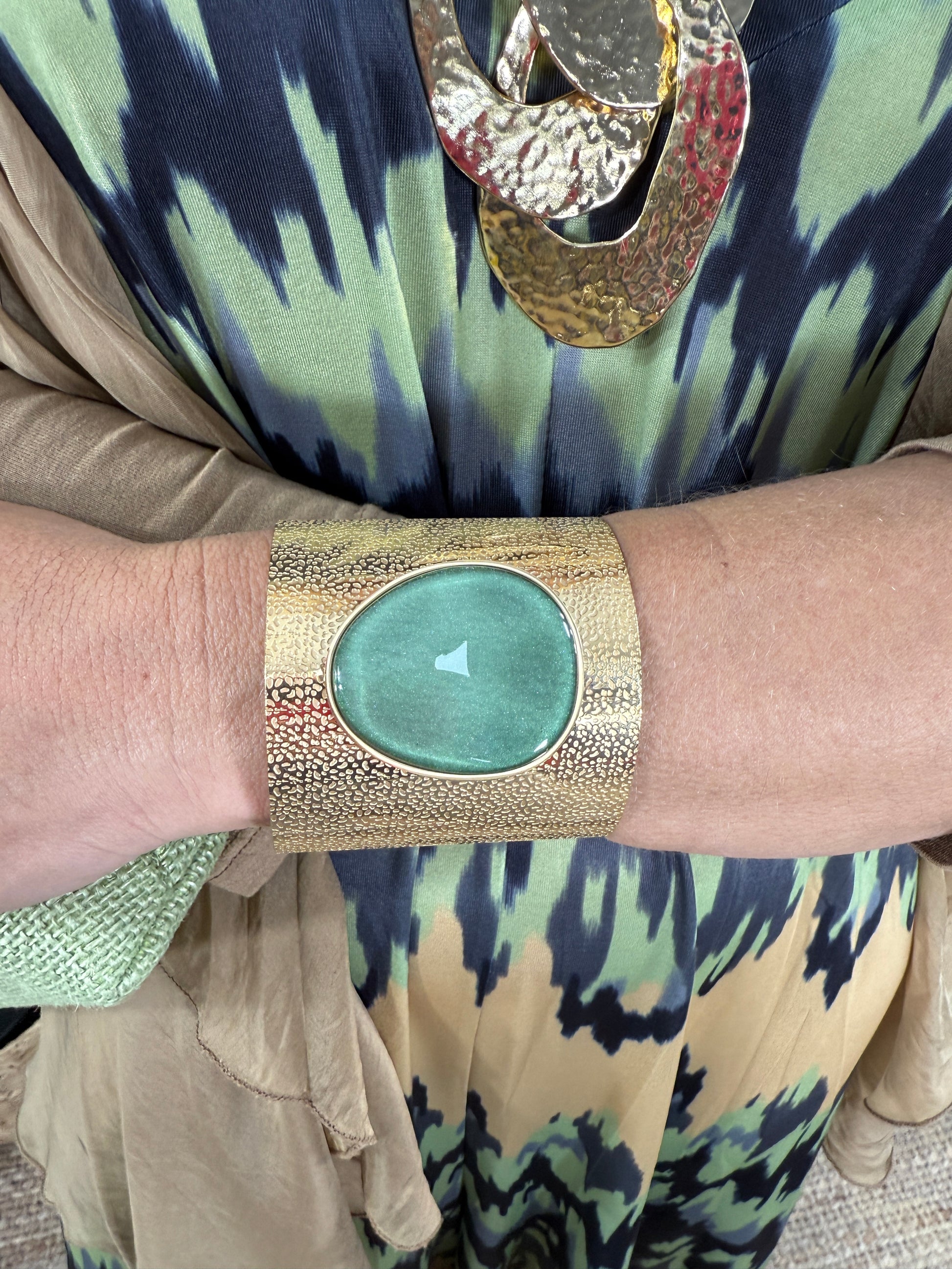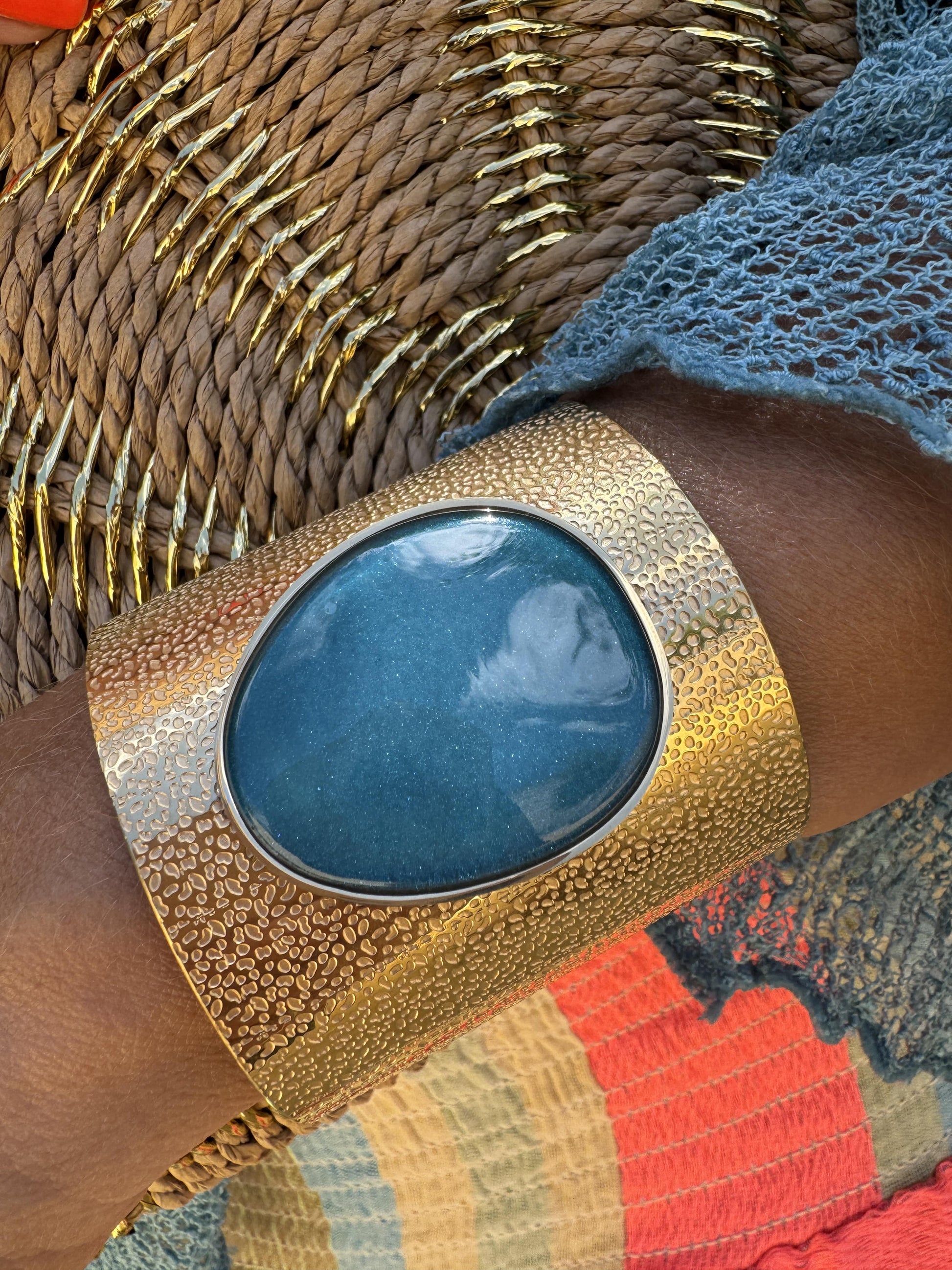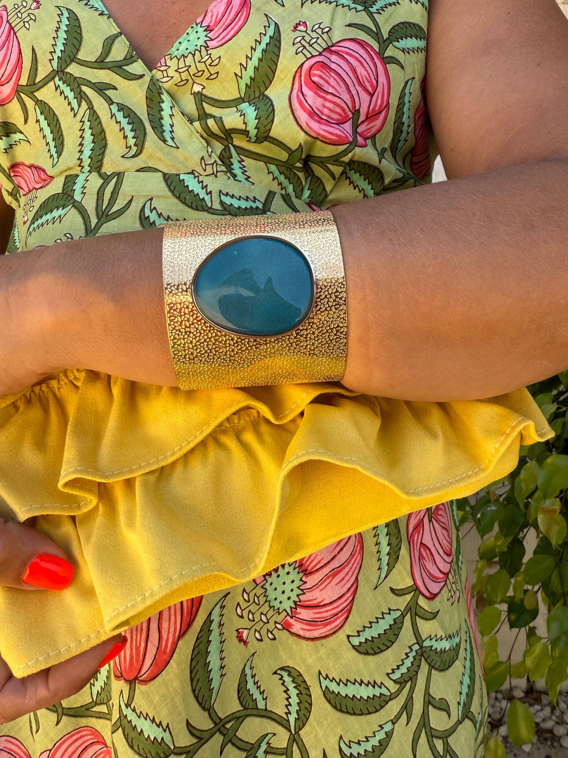 Pulseira feminina dourada com pedra natural no centro