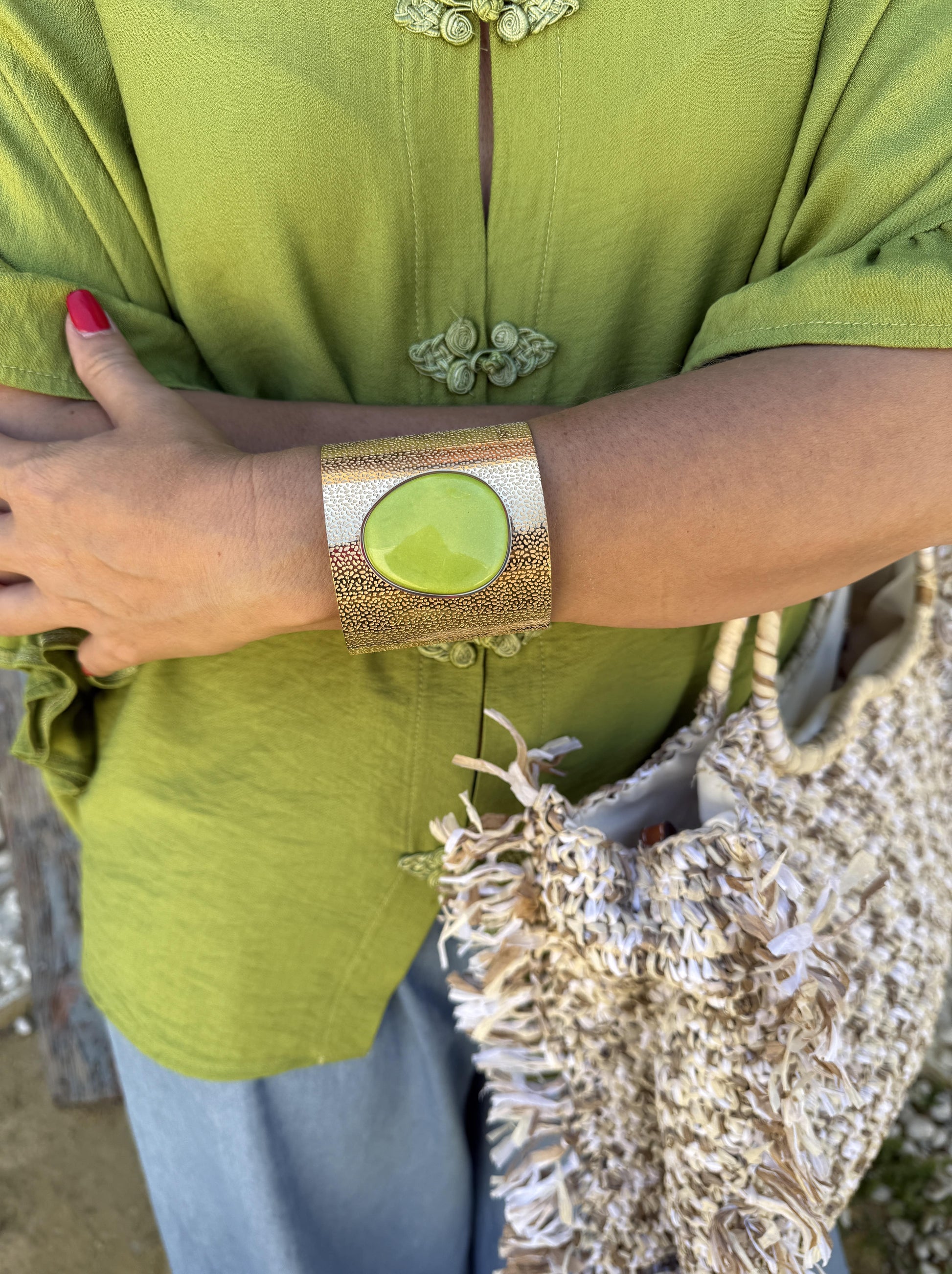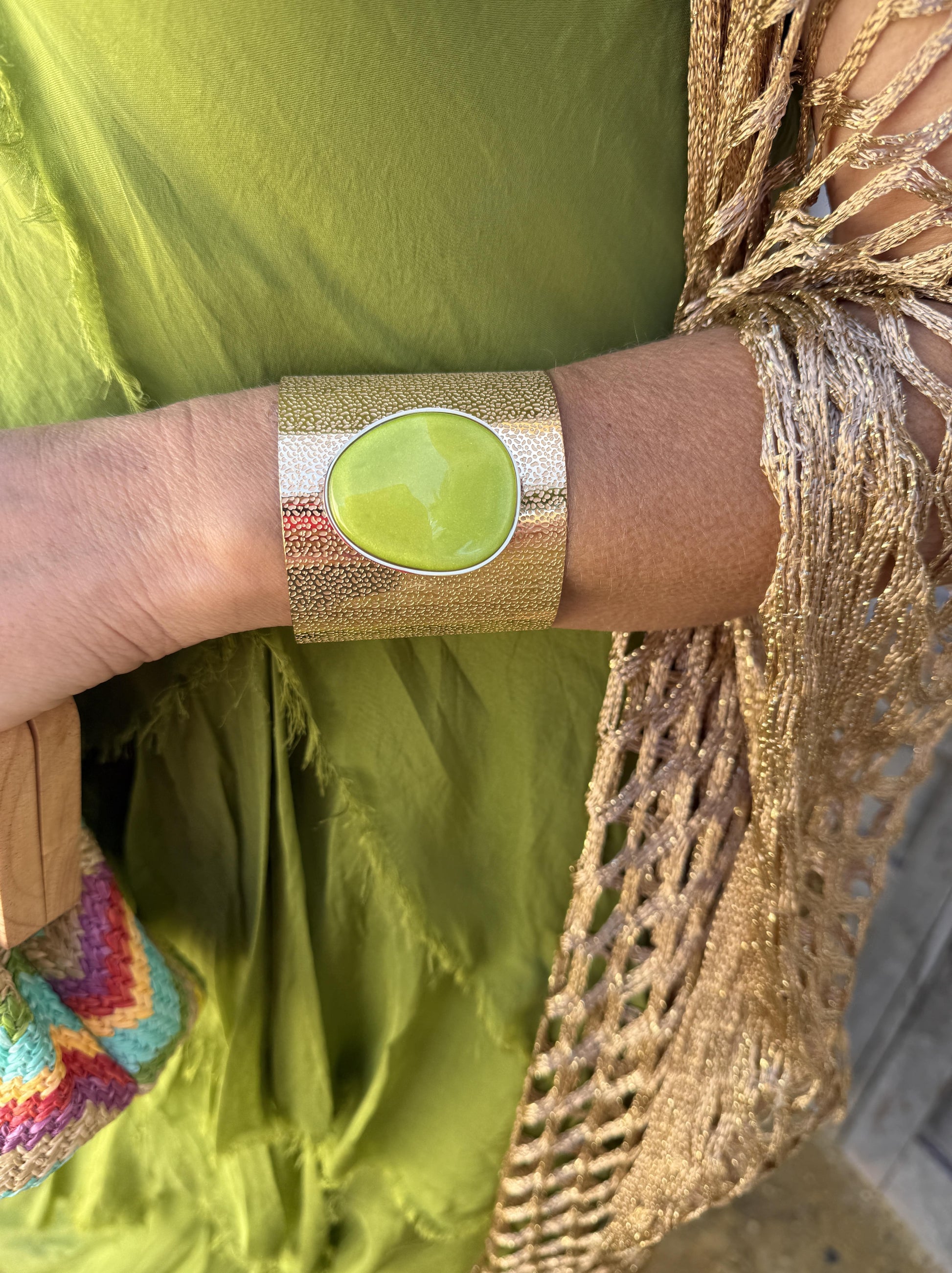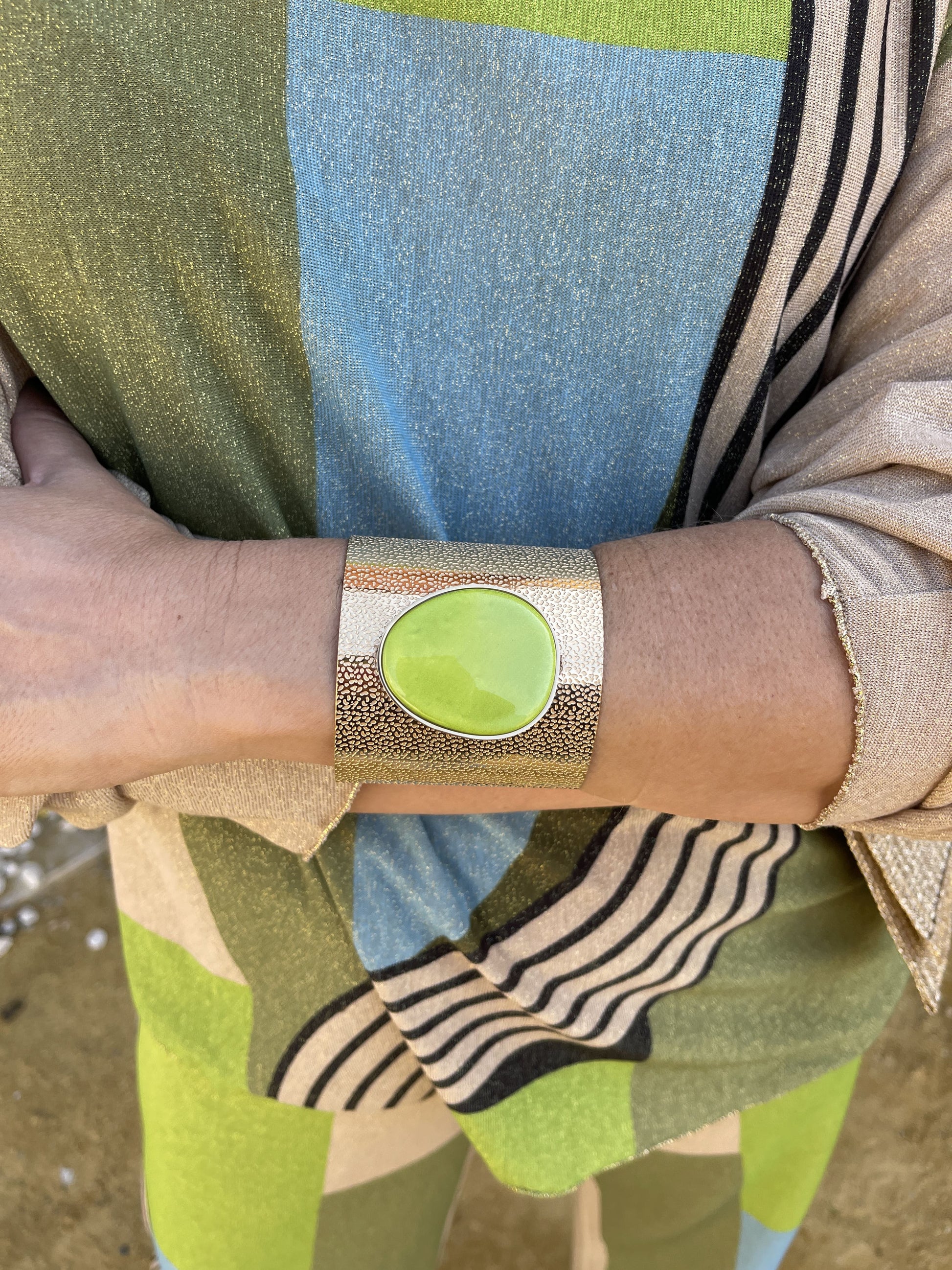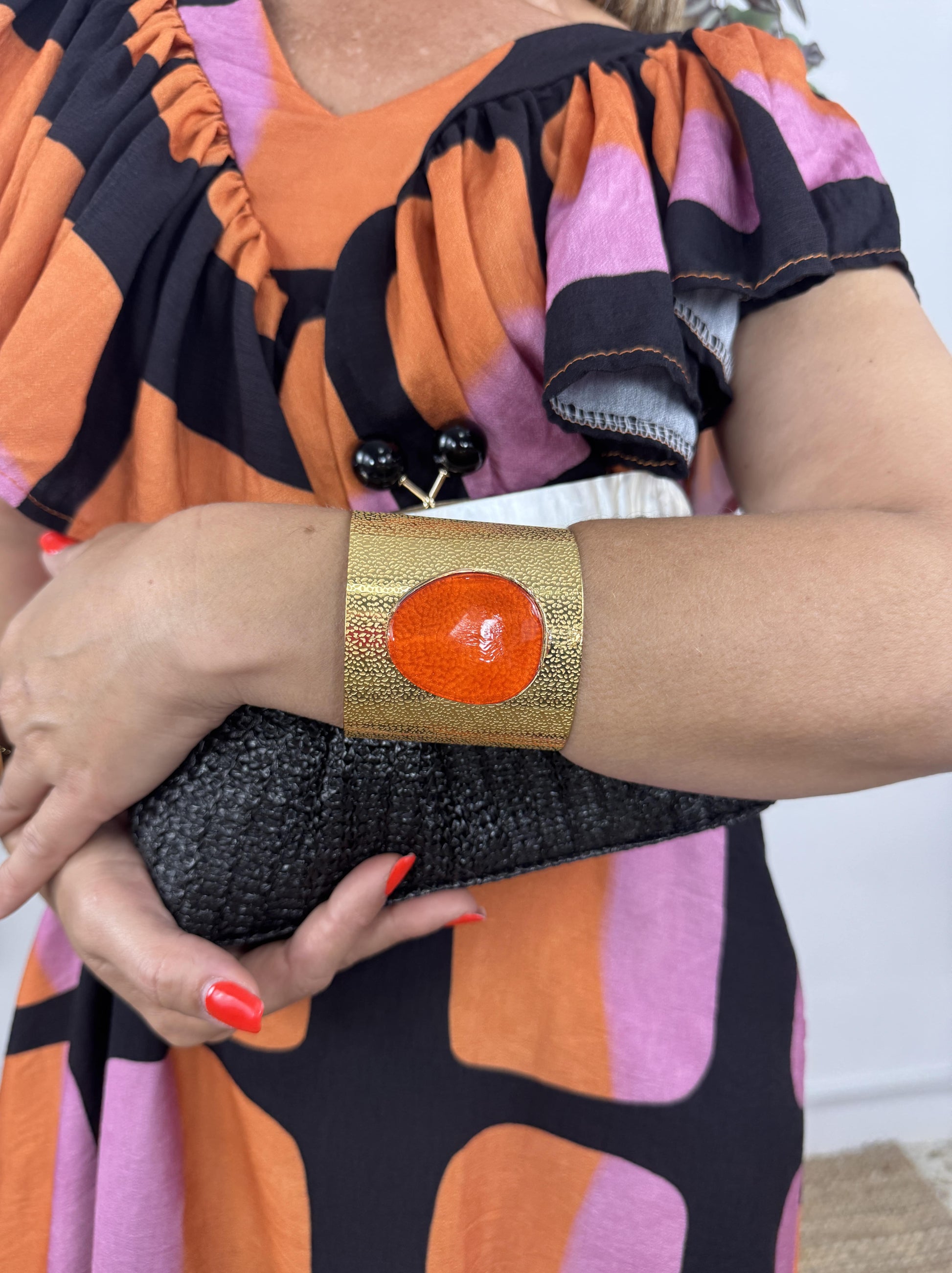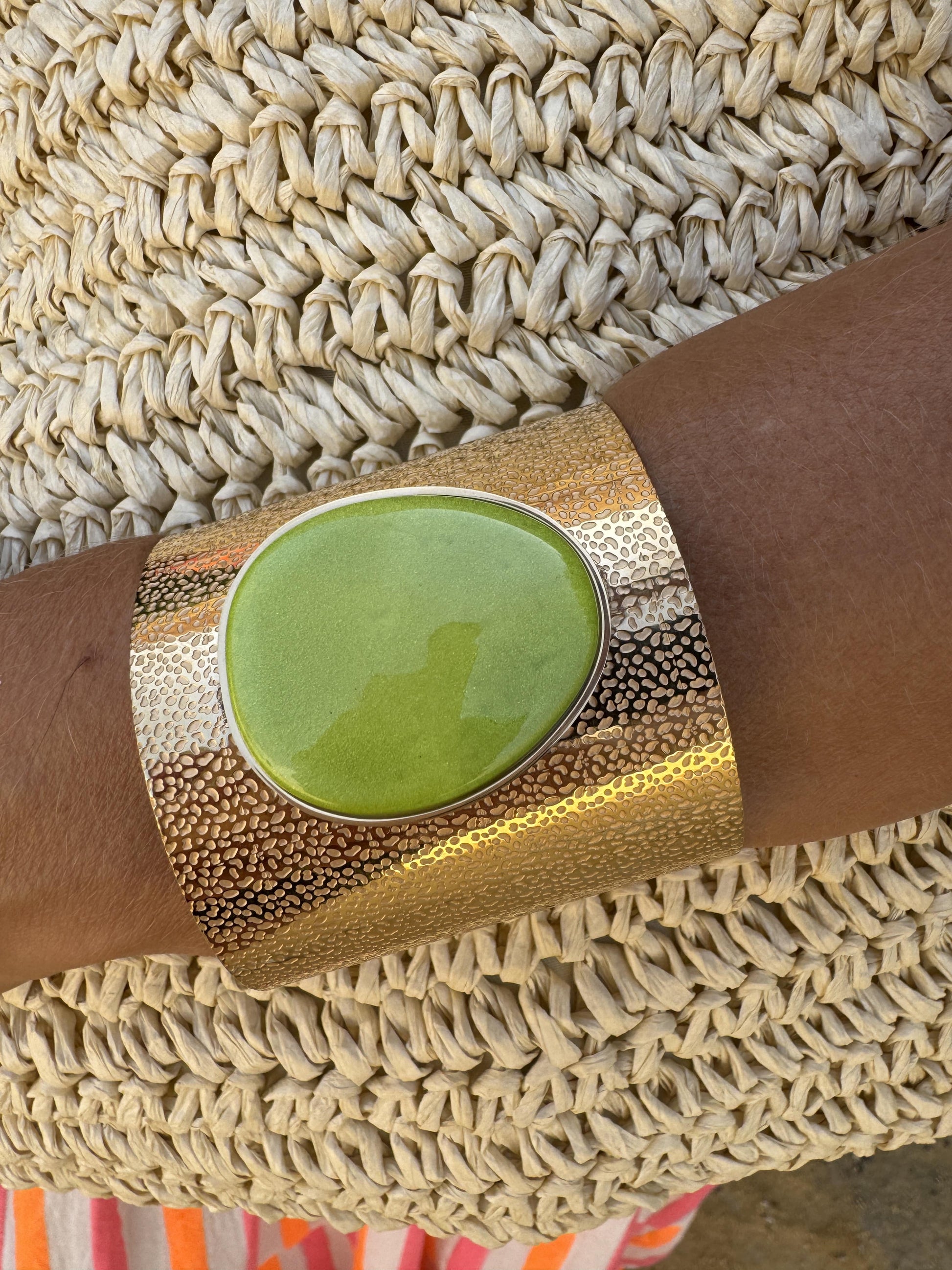 Pulseira feminina dourada com pedra natural no centro