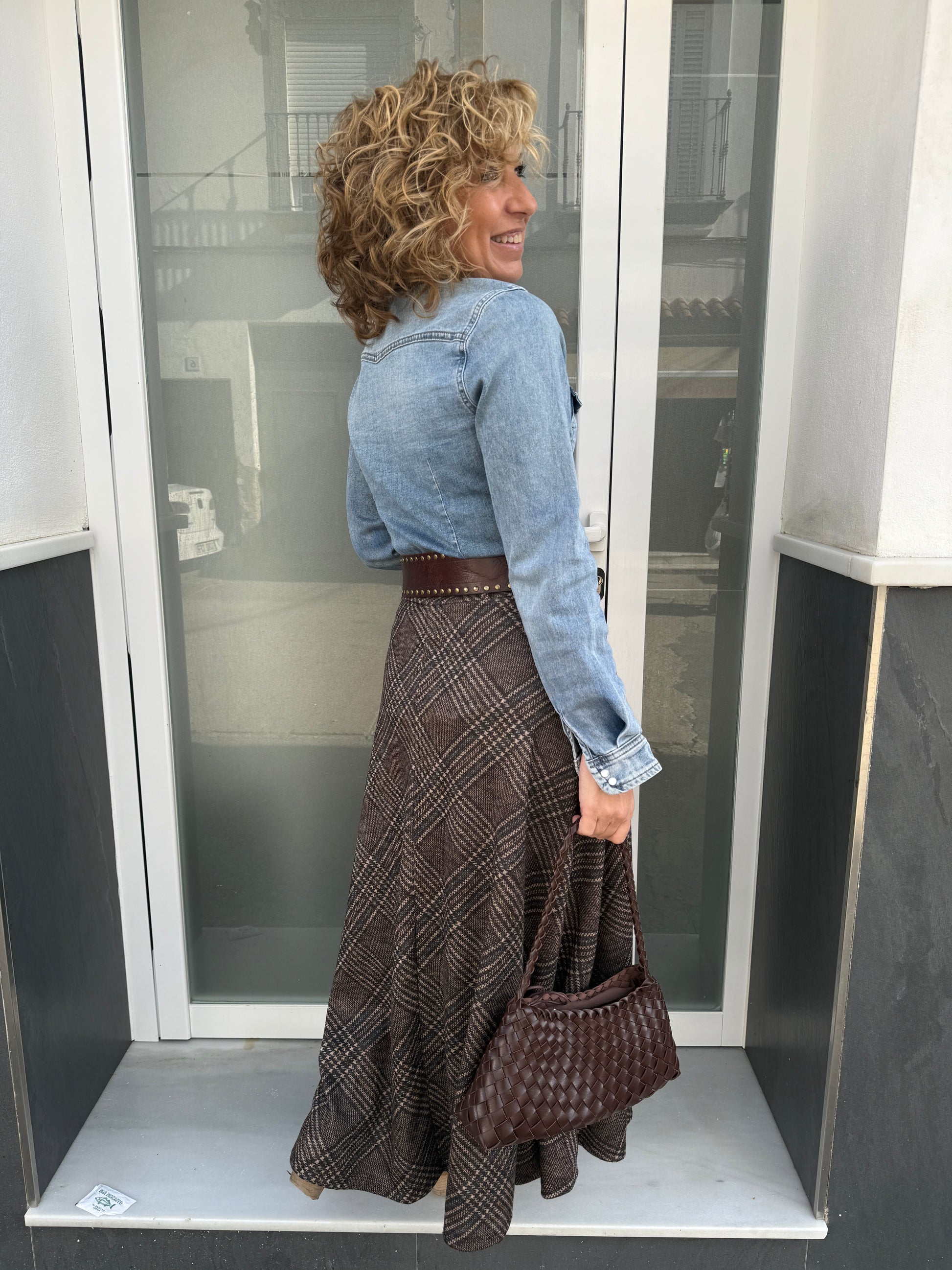 Camisa vaquera básica ceñida al cuerpo con cuello.