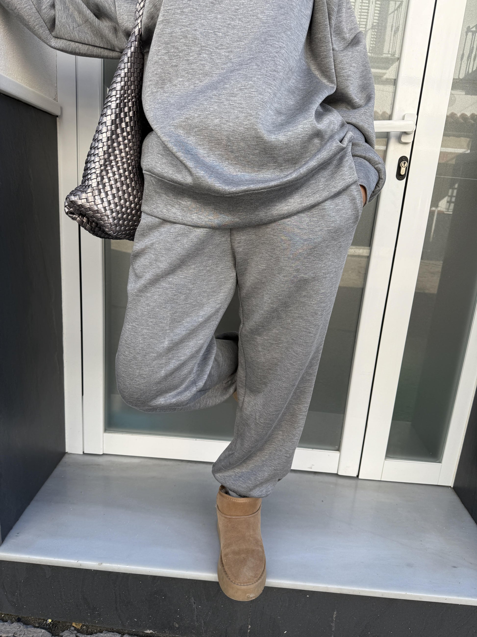 Calças de treino femininas com cós elástico, bolsos e tornozelo franzido.