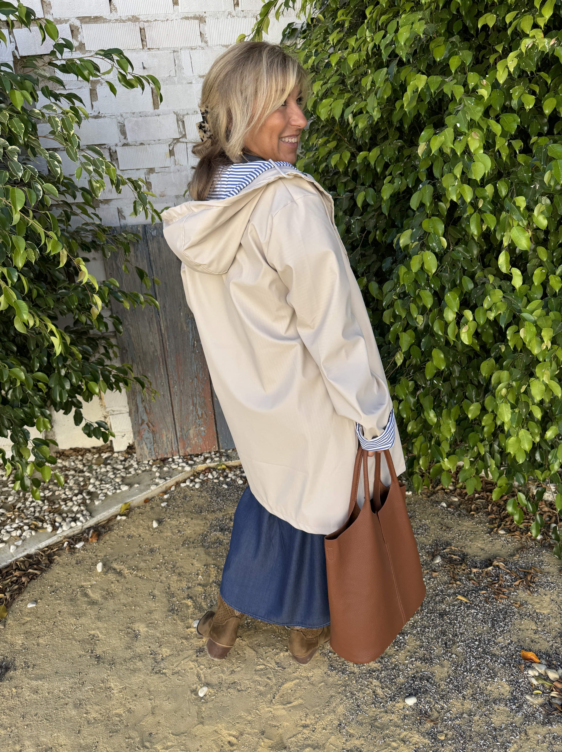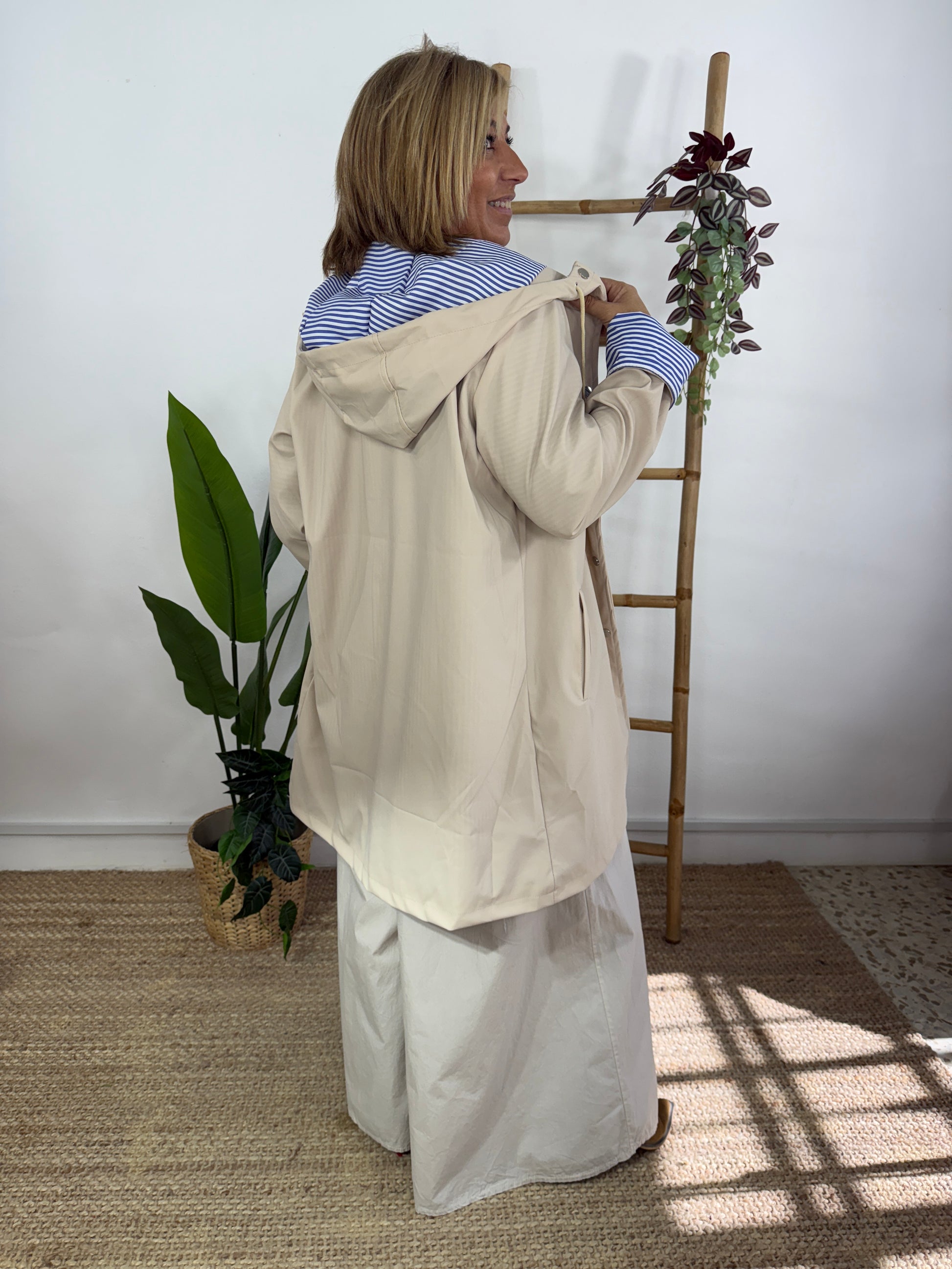 Chubasquero impermeable con forro mil rayas en color azul y blanco.