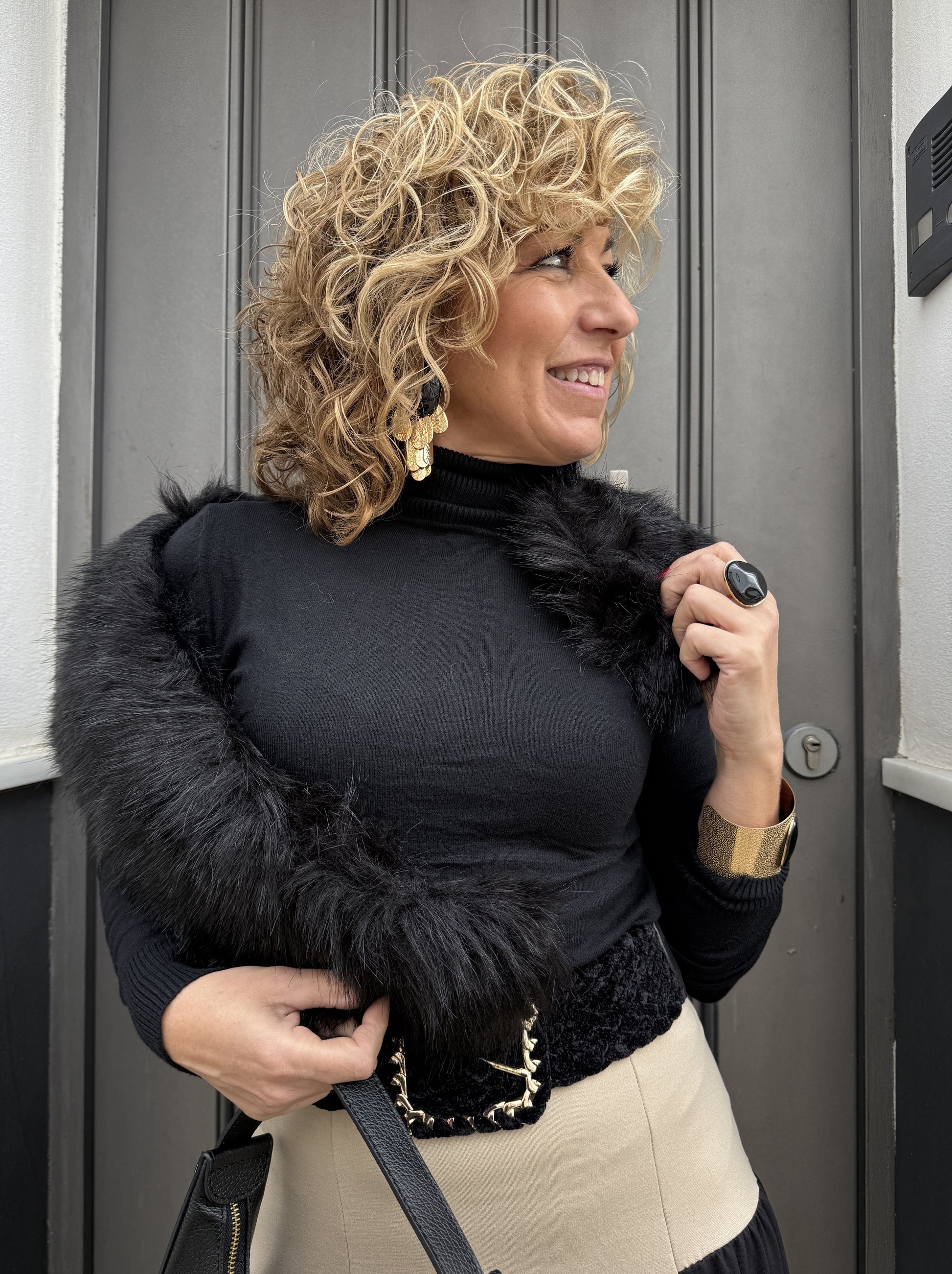 Suéter básico feminino de gola alta.