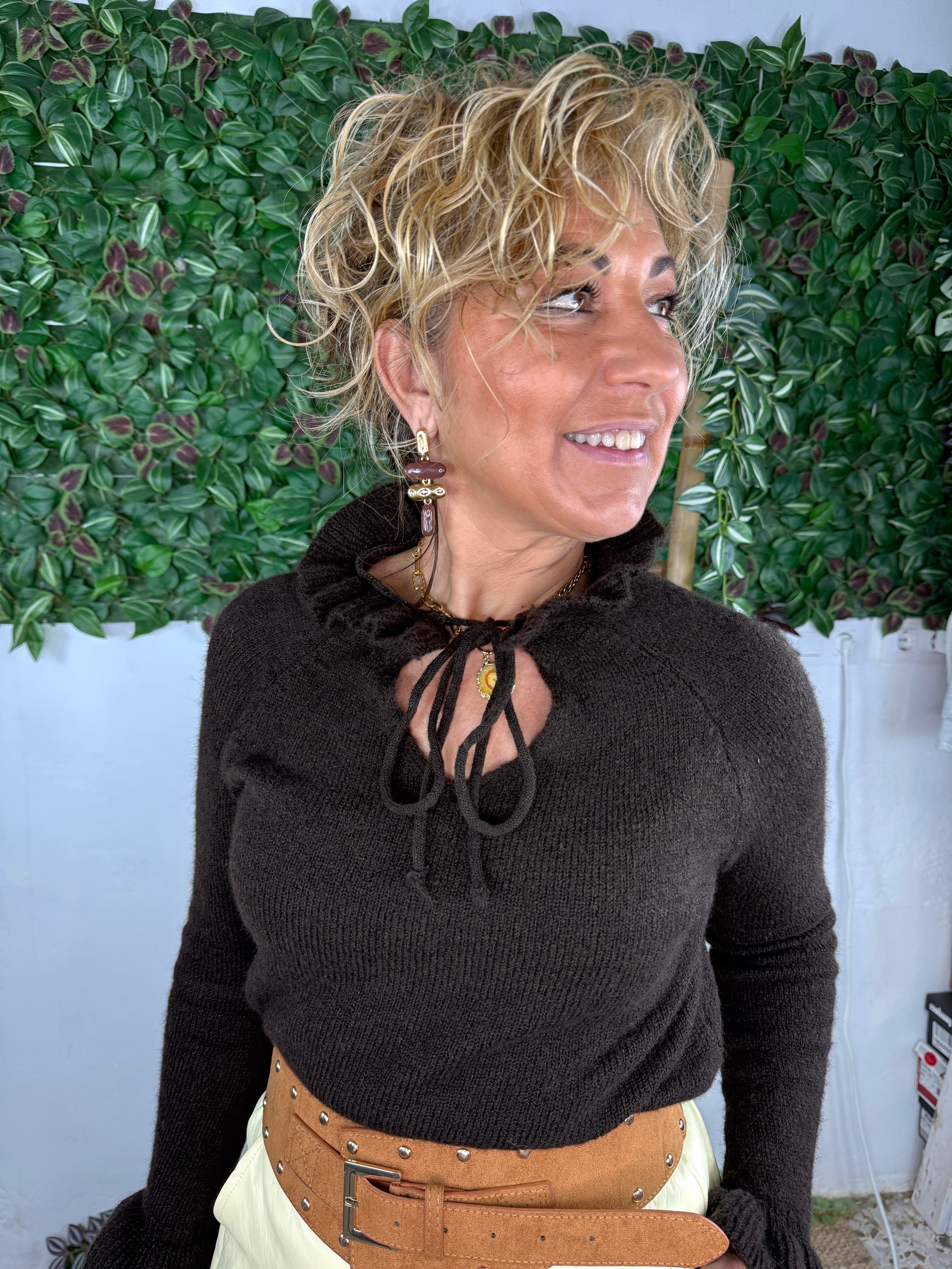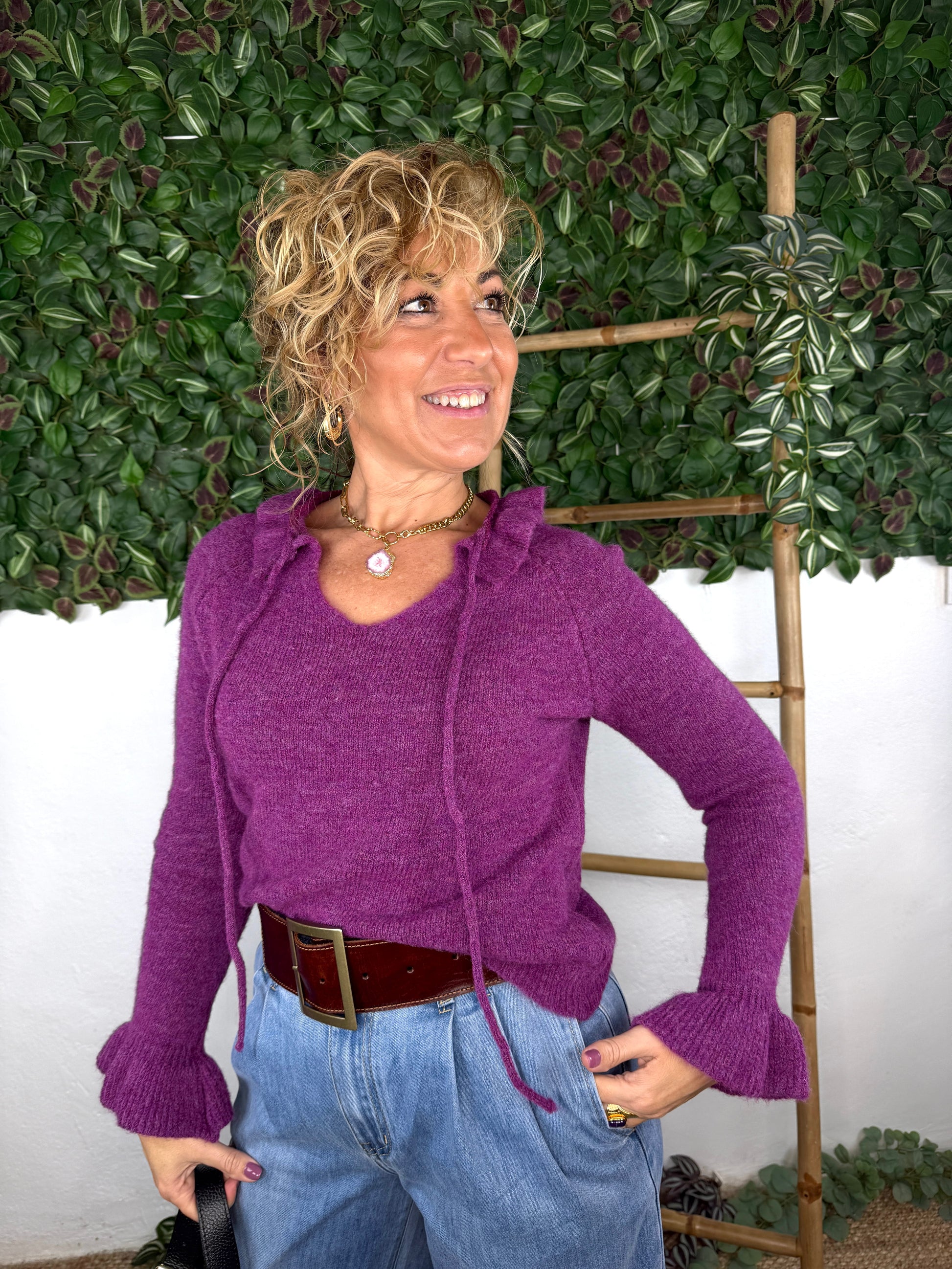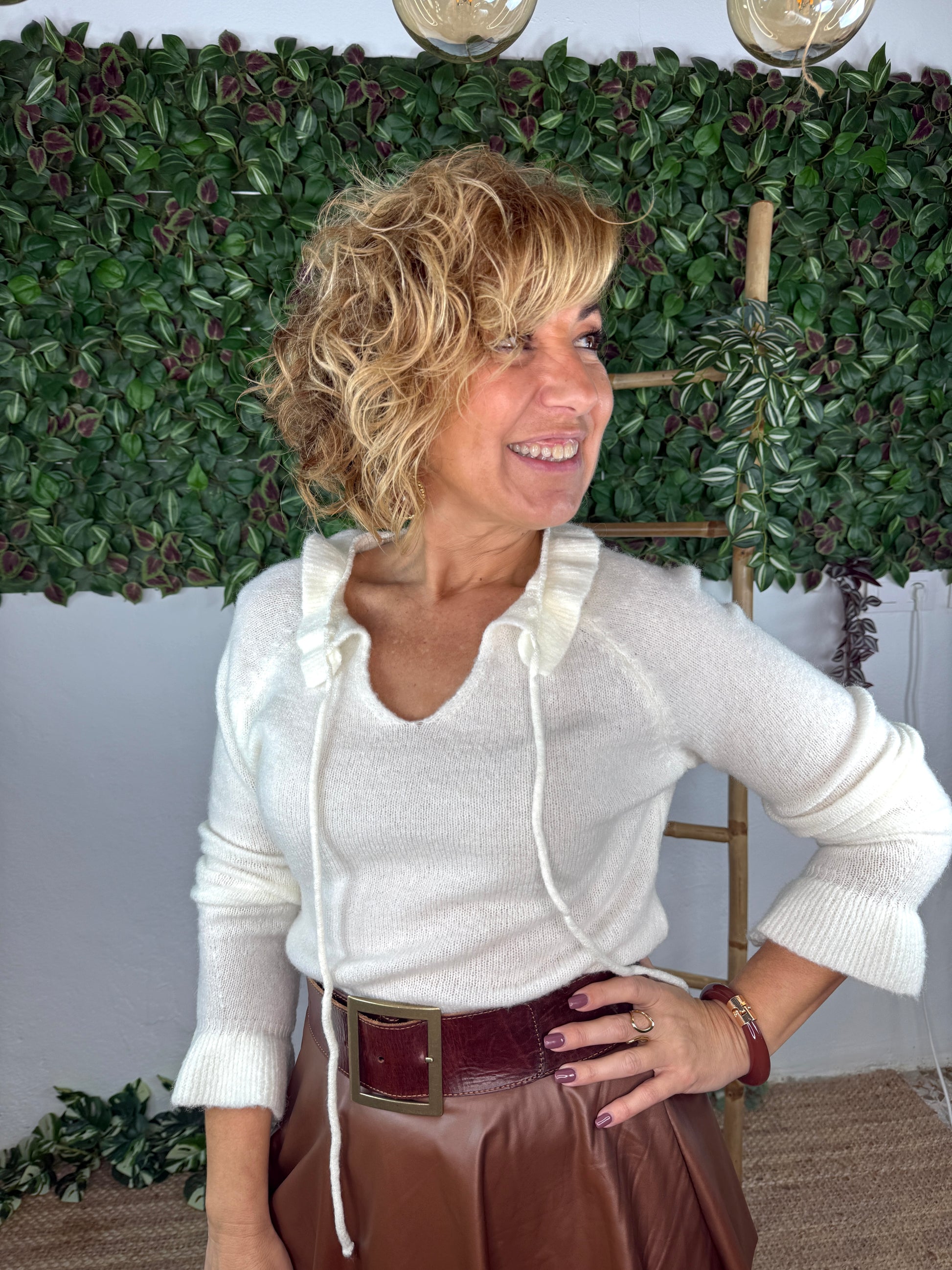 Jersey con cuello de volante con lasito.