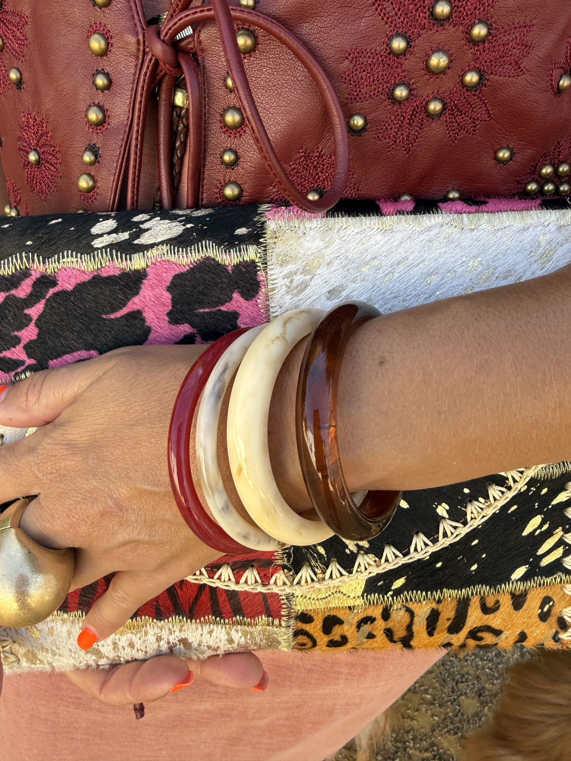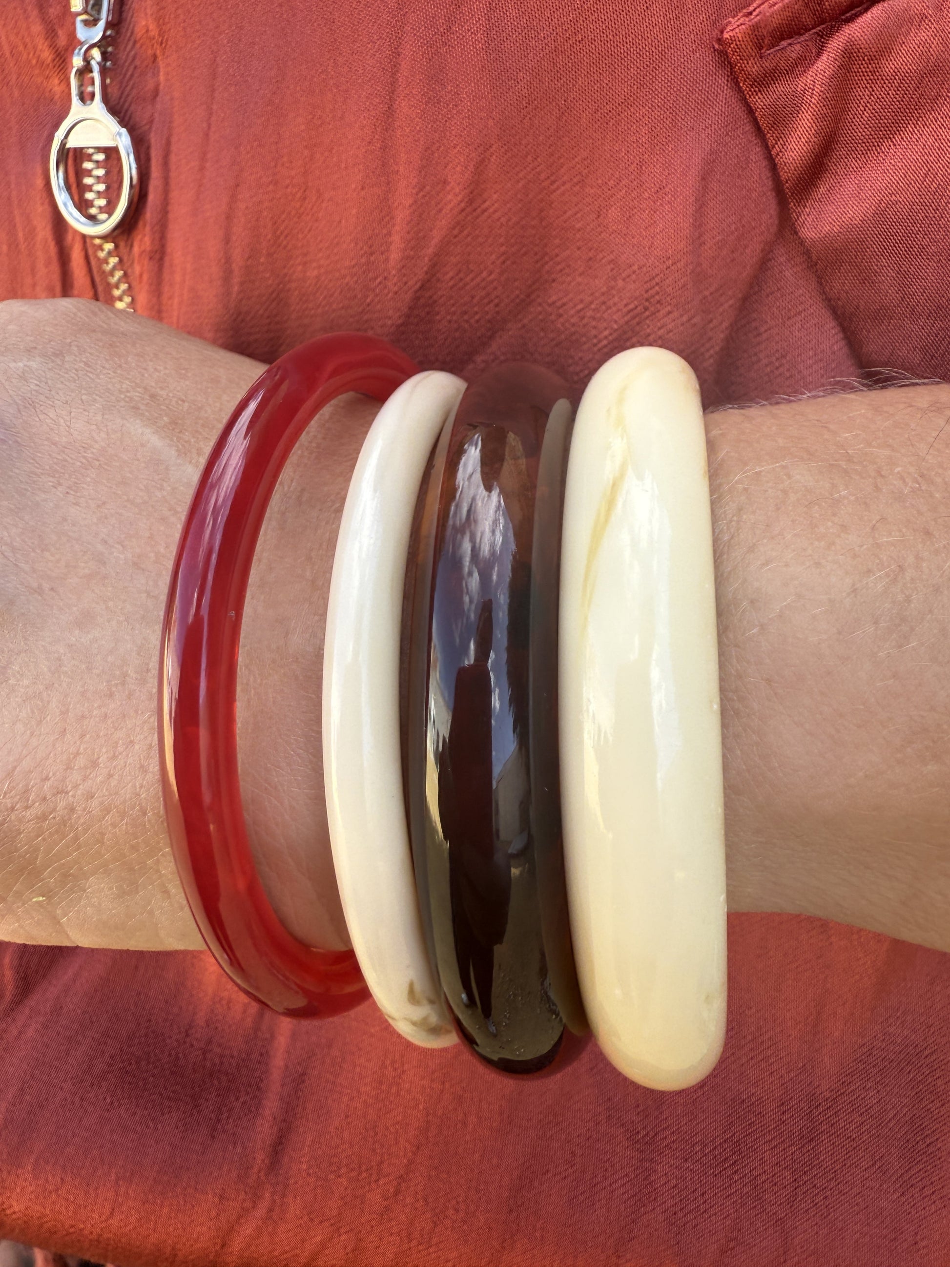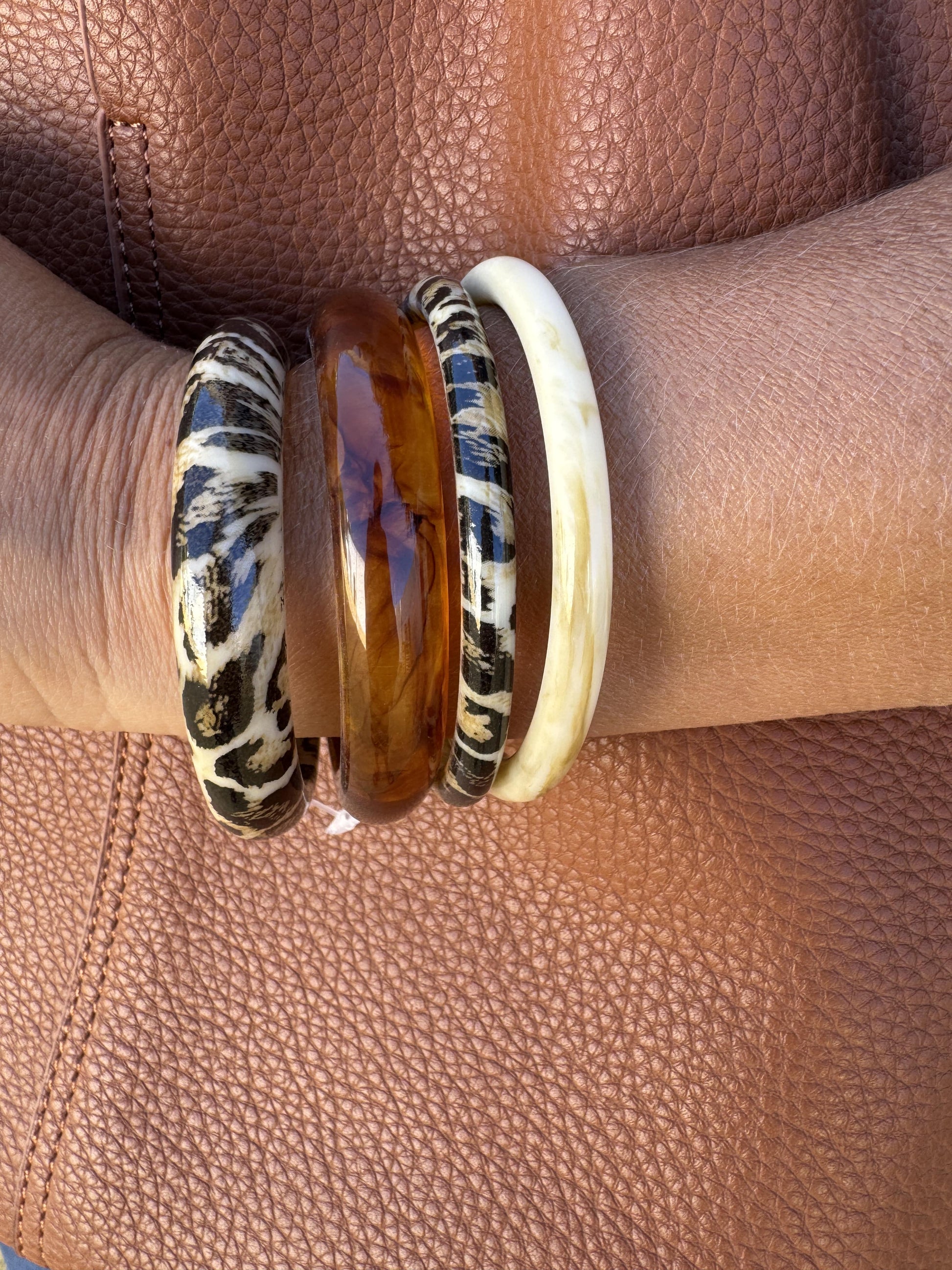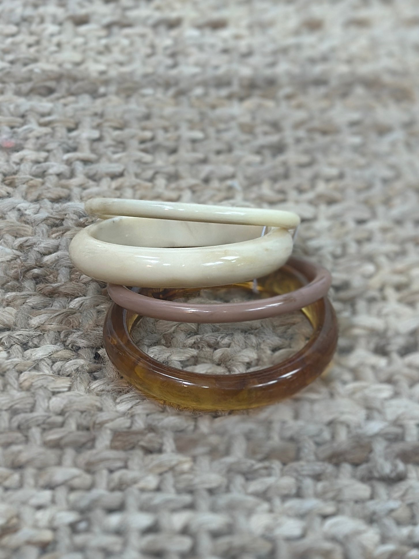 Pack de 4 pulseras de resina de diferentes tamaños.