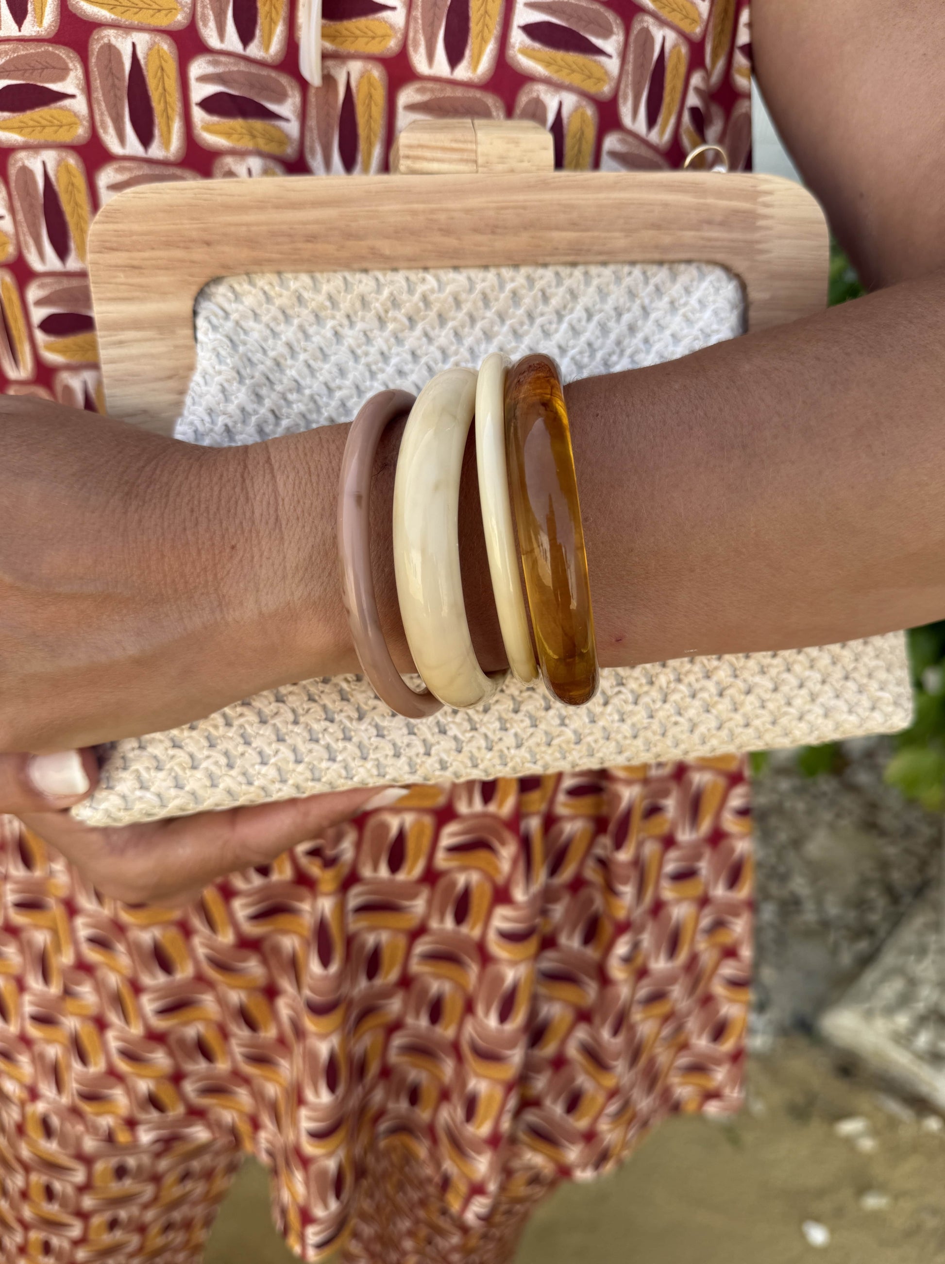 Este conjunto de pulseras de acrílico es ideal para cualquier look de verano.