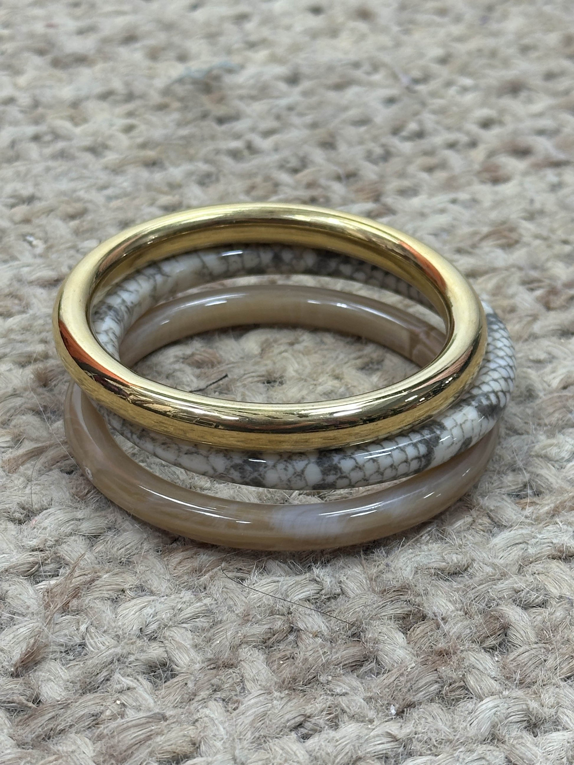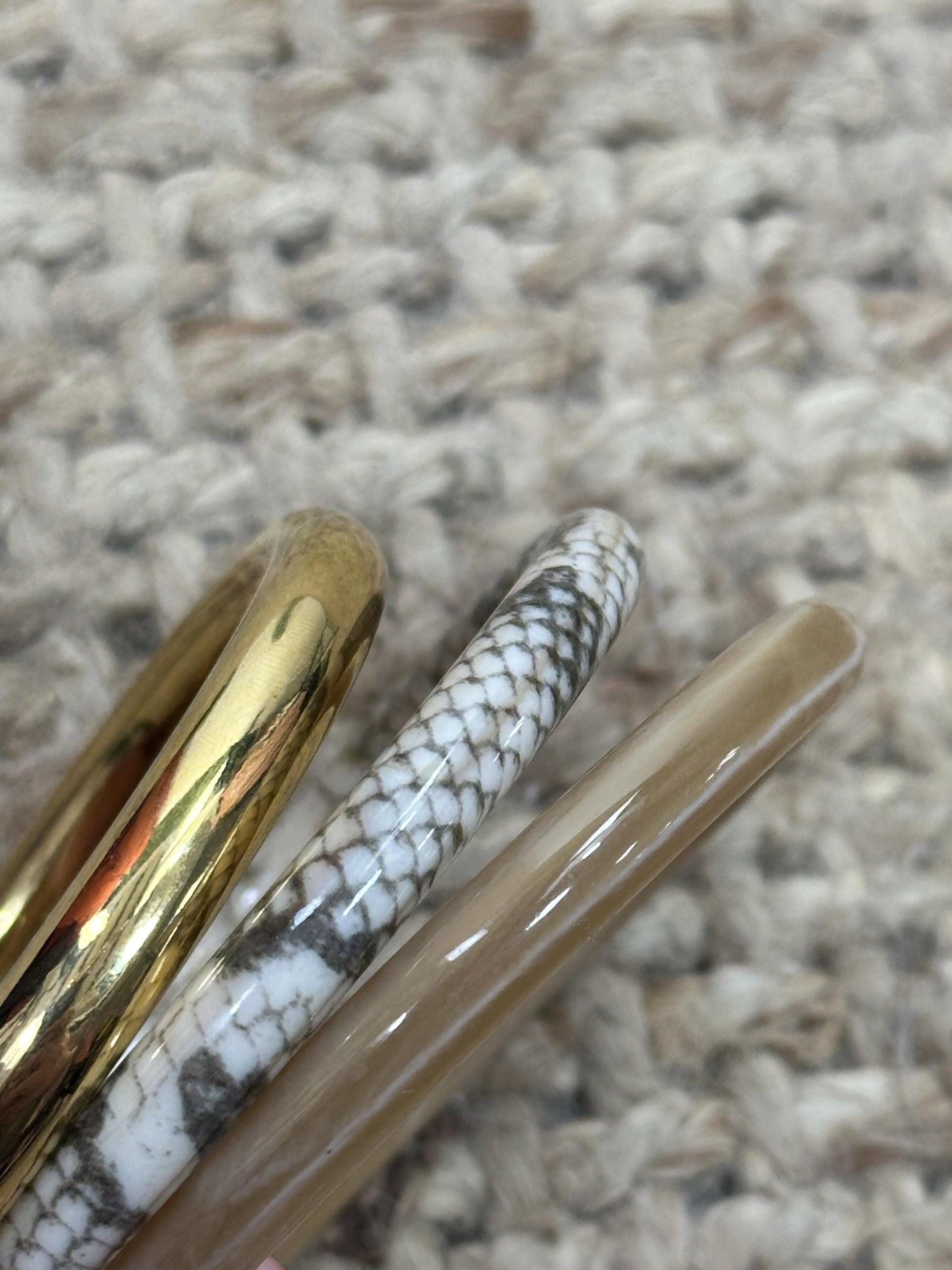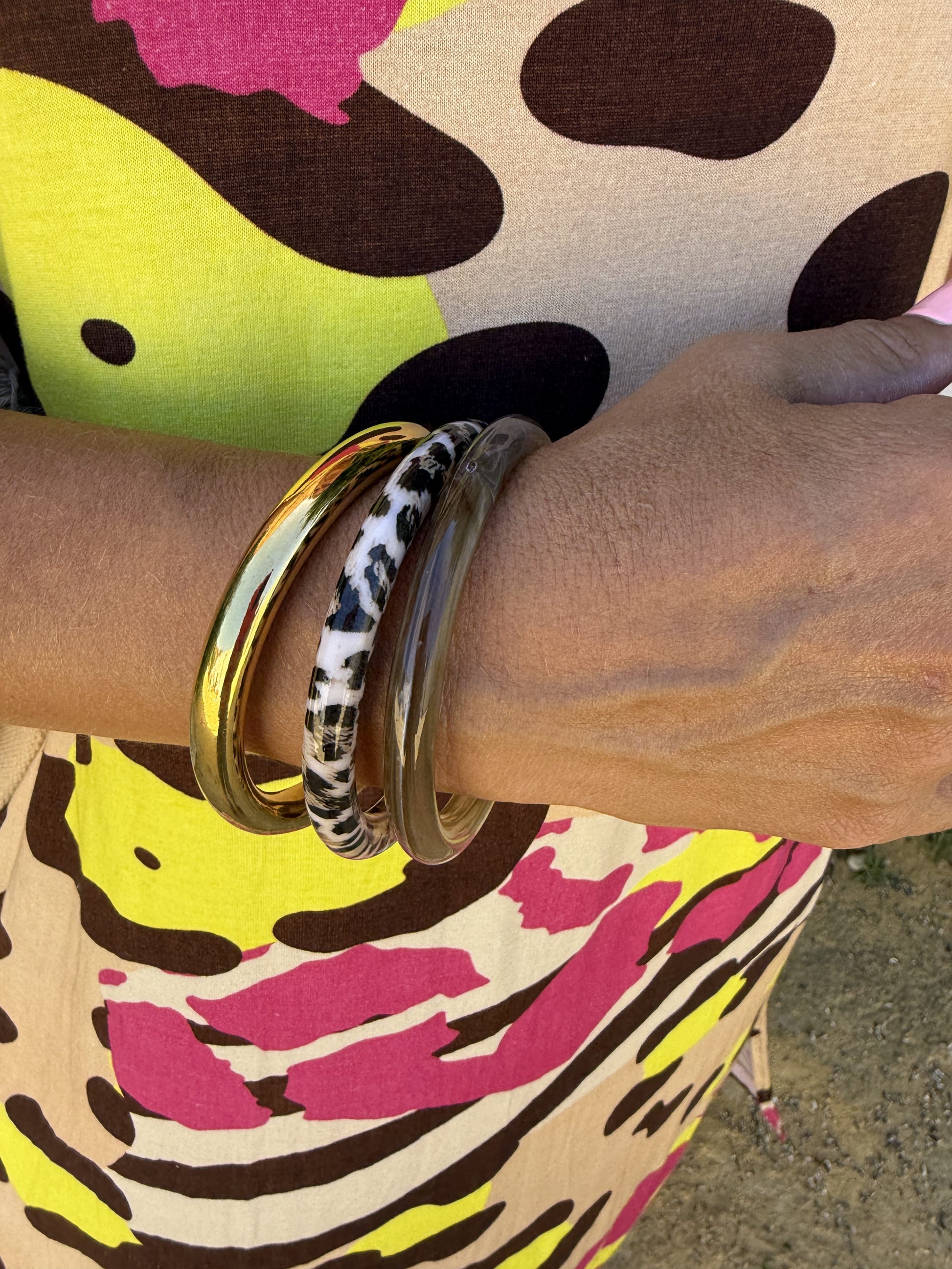 Pack de 3 pulseras de resina de diferentes colores y estampados.