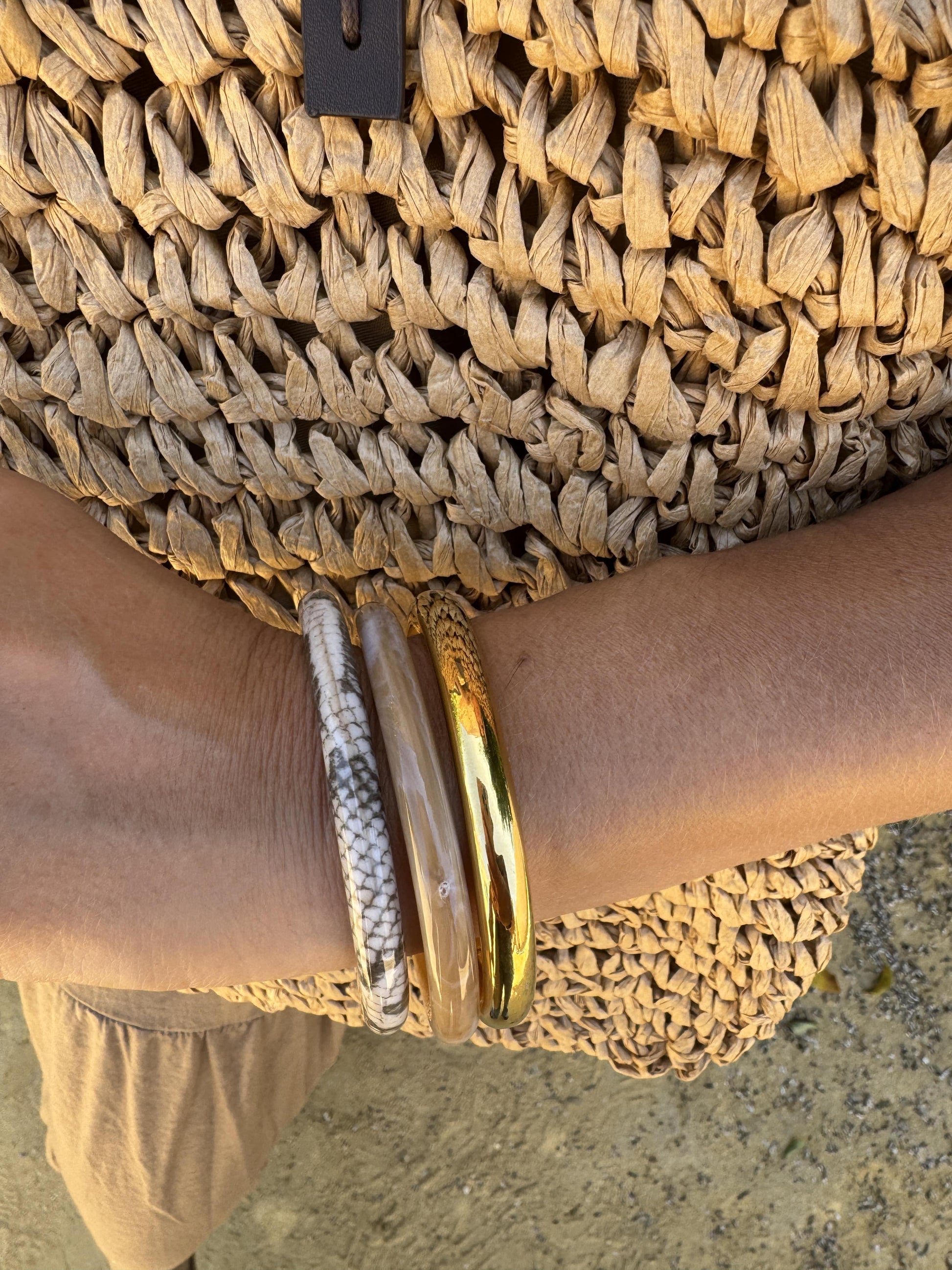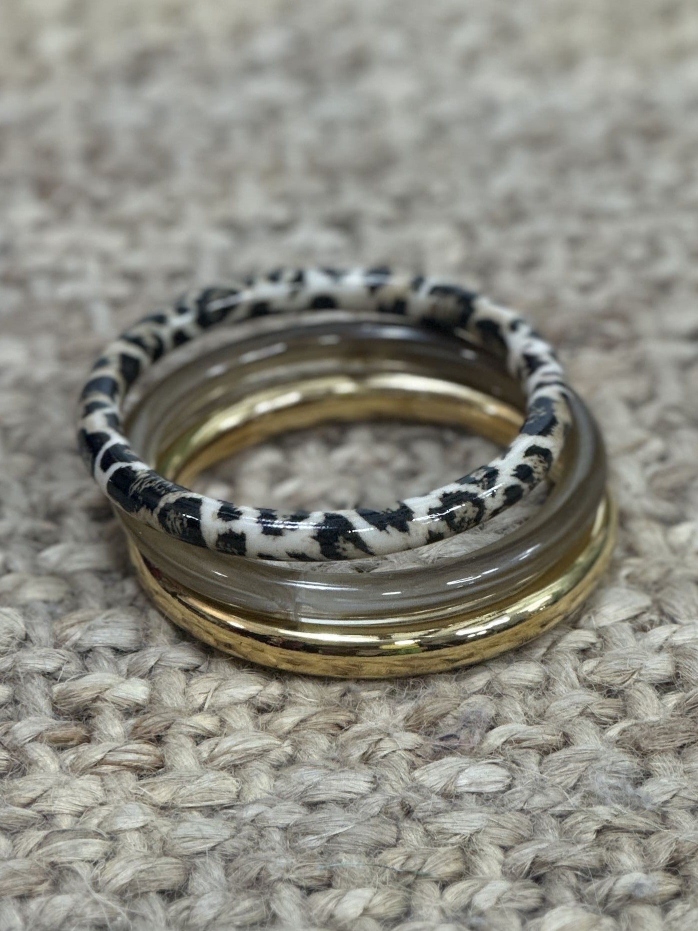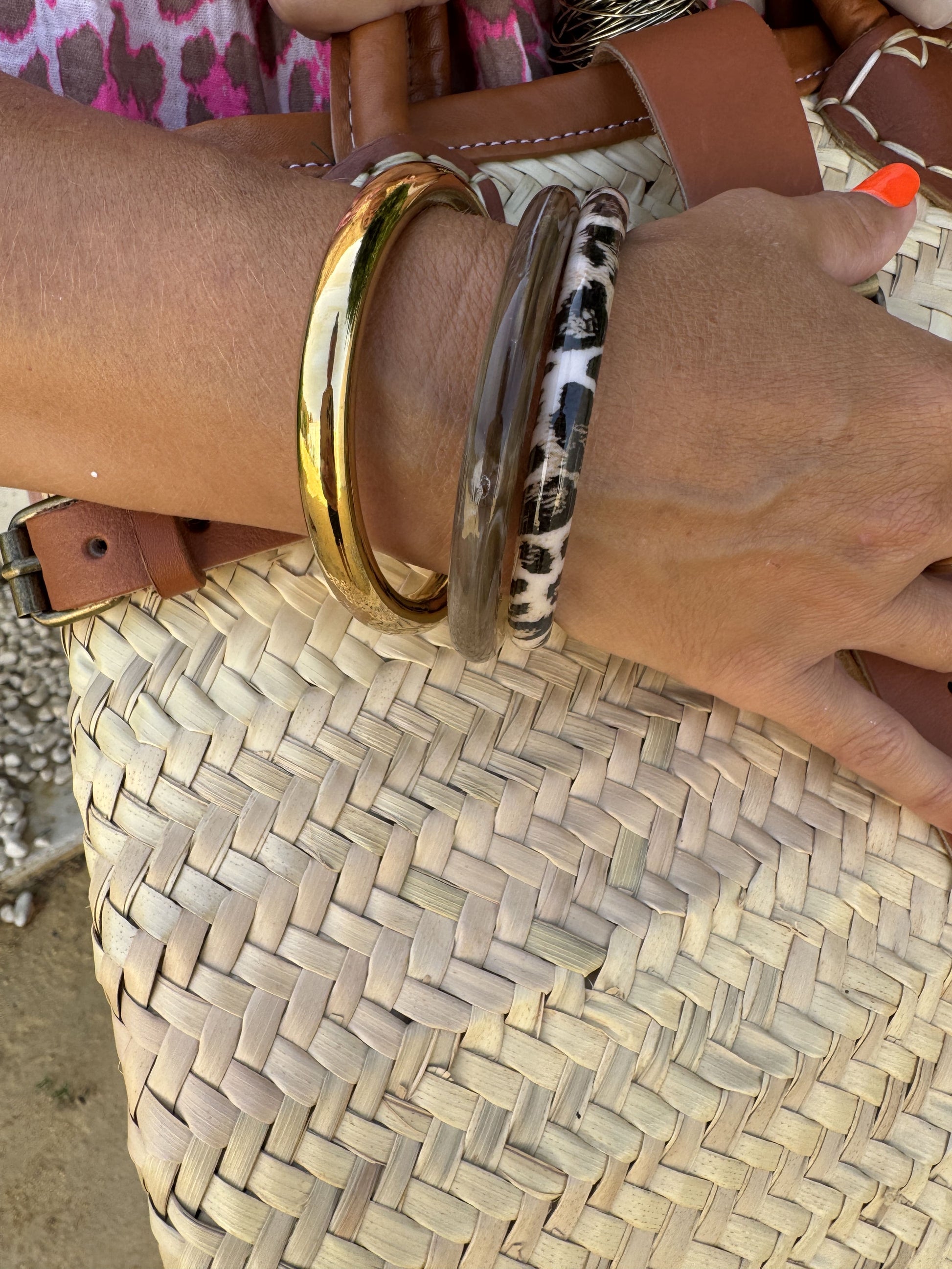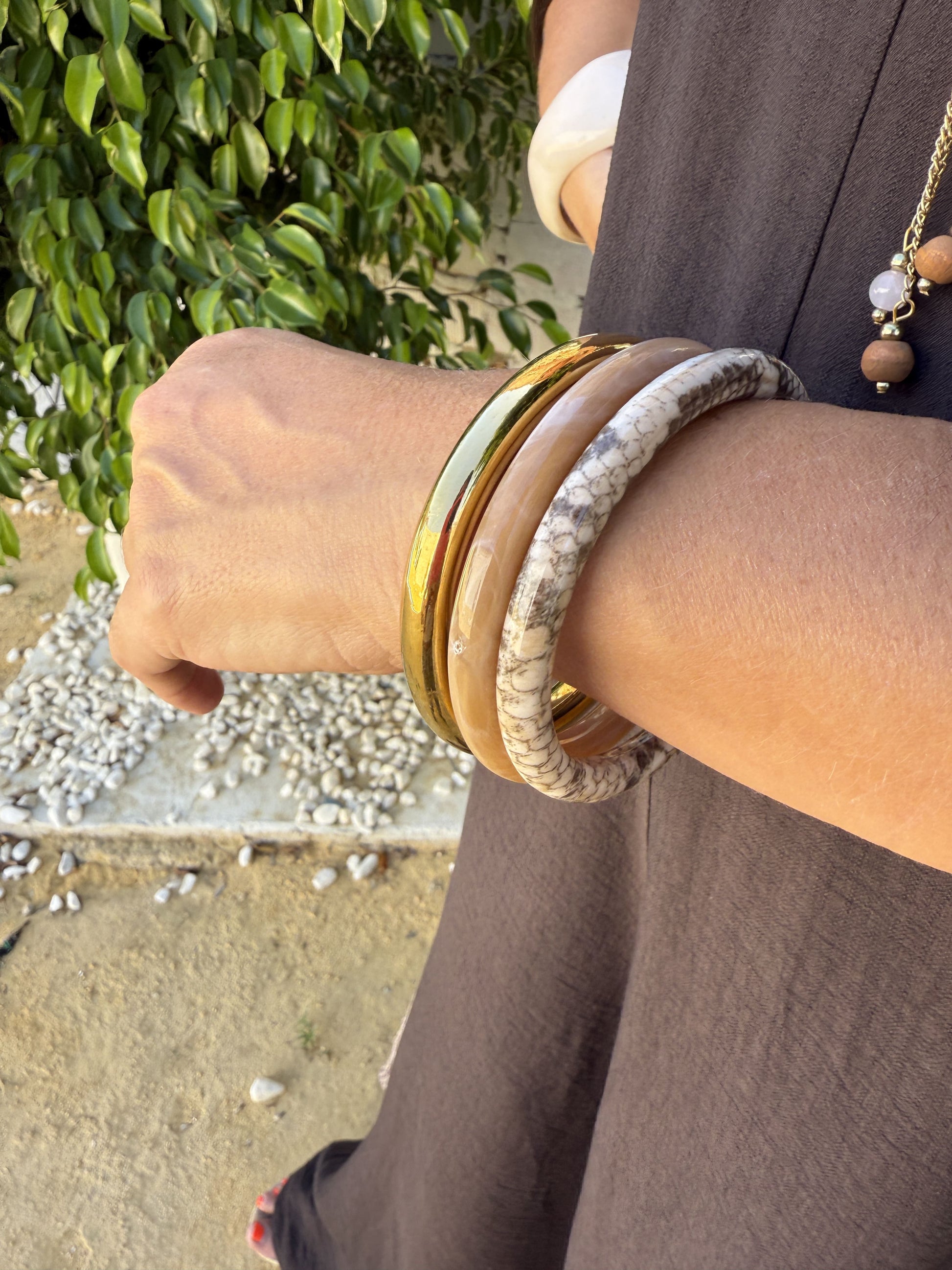 Pack de 3 pulseras de resina de diferentes colores y estampados.