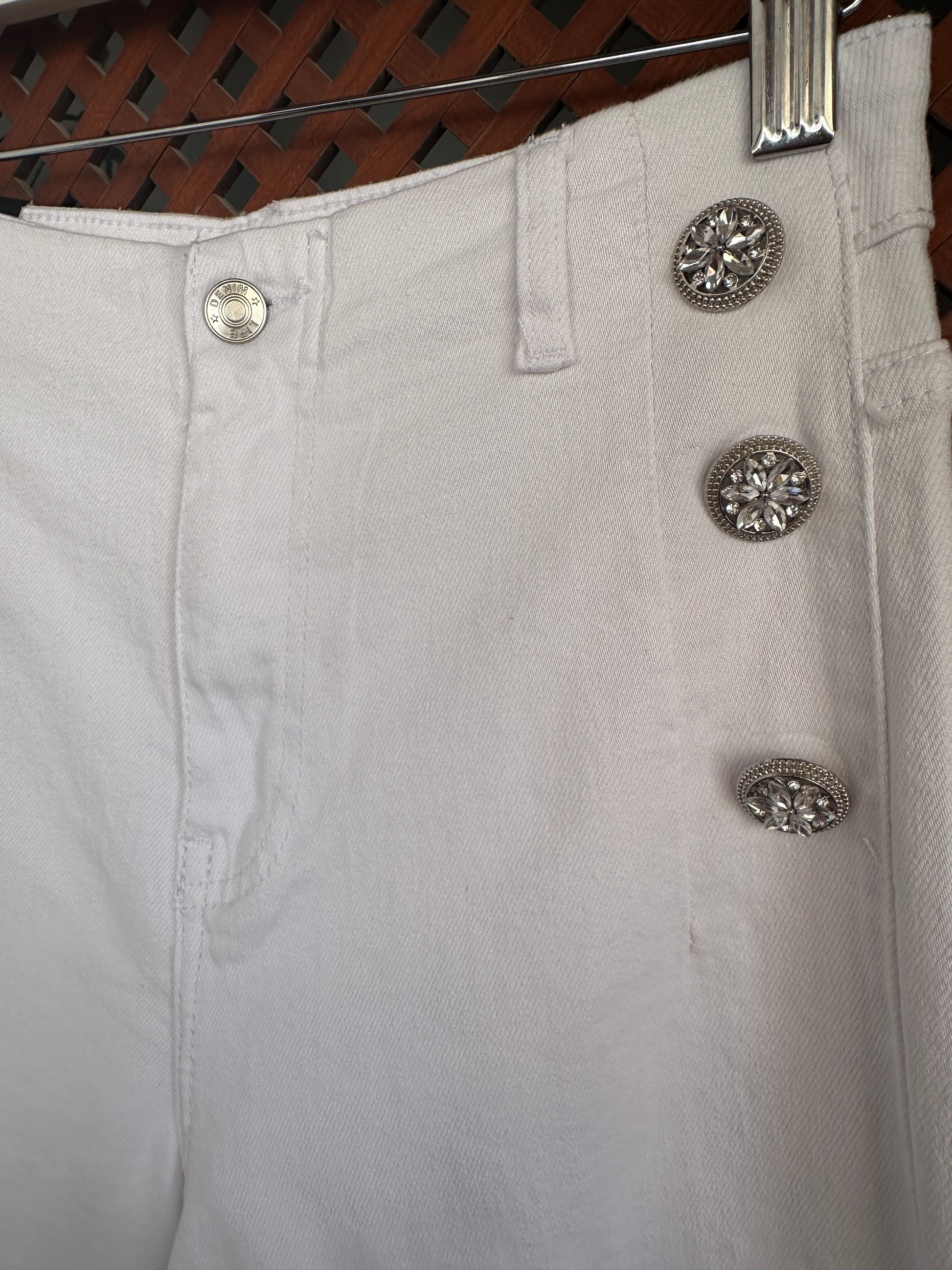 Botões de joias em prata com brilho transparente em ambos os lados.