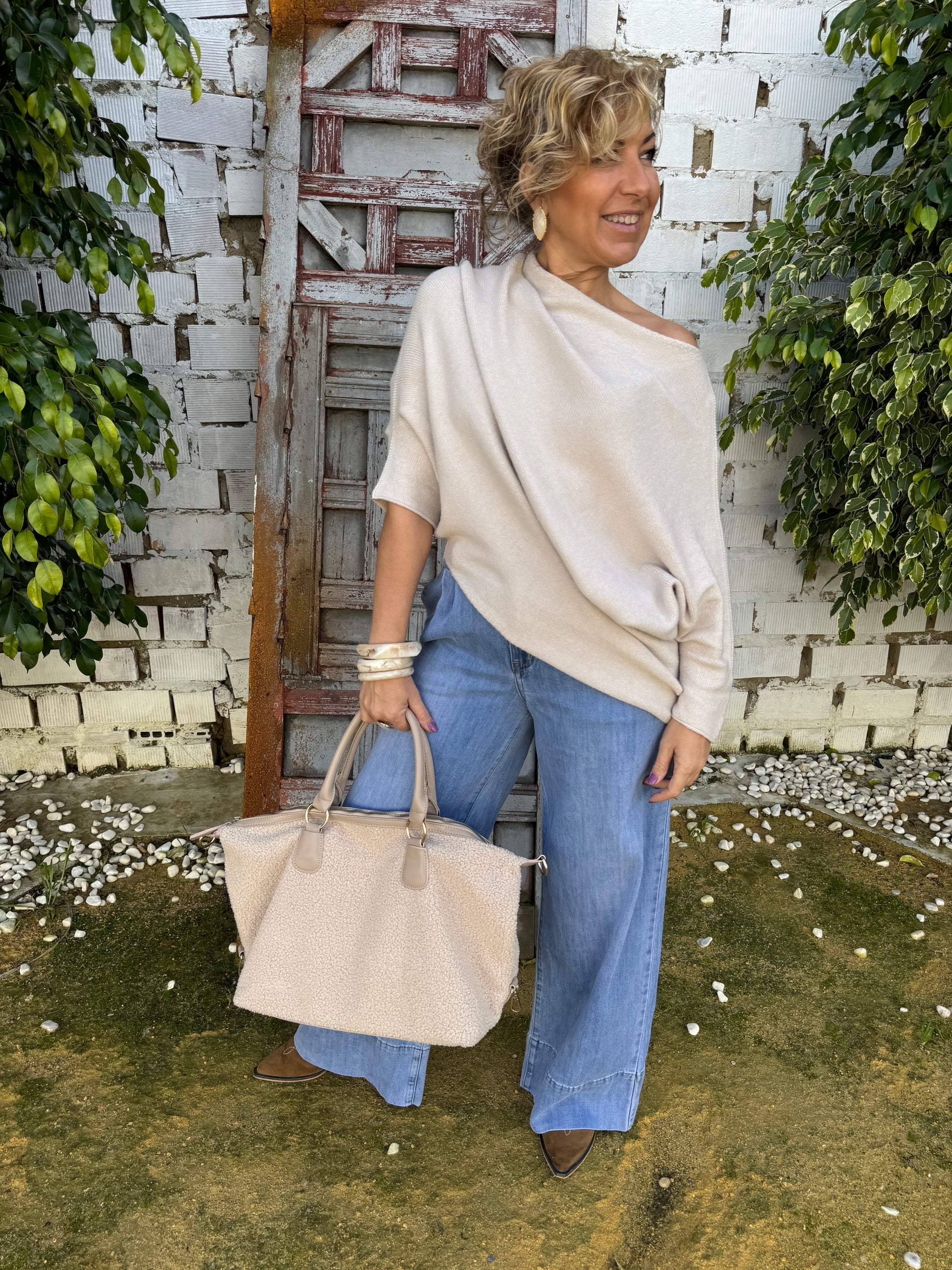El bajo de este pantalón denim tiene el bajo con costura ancha.