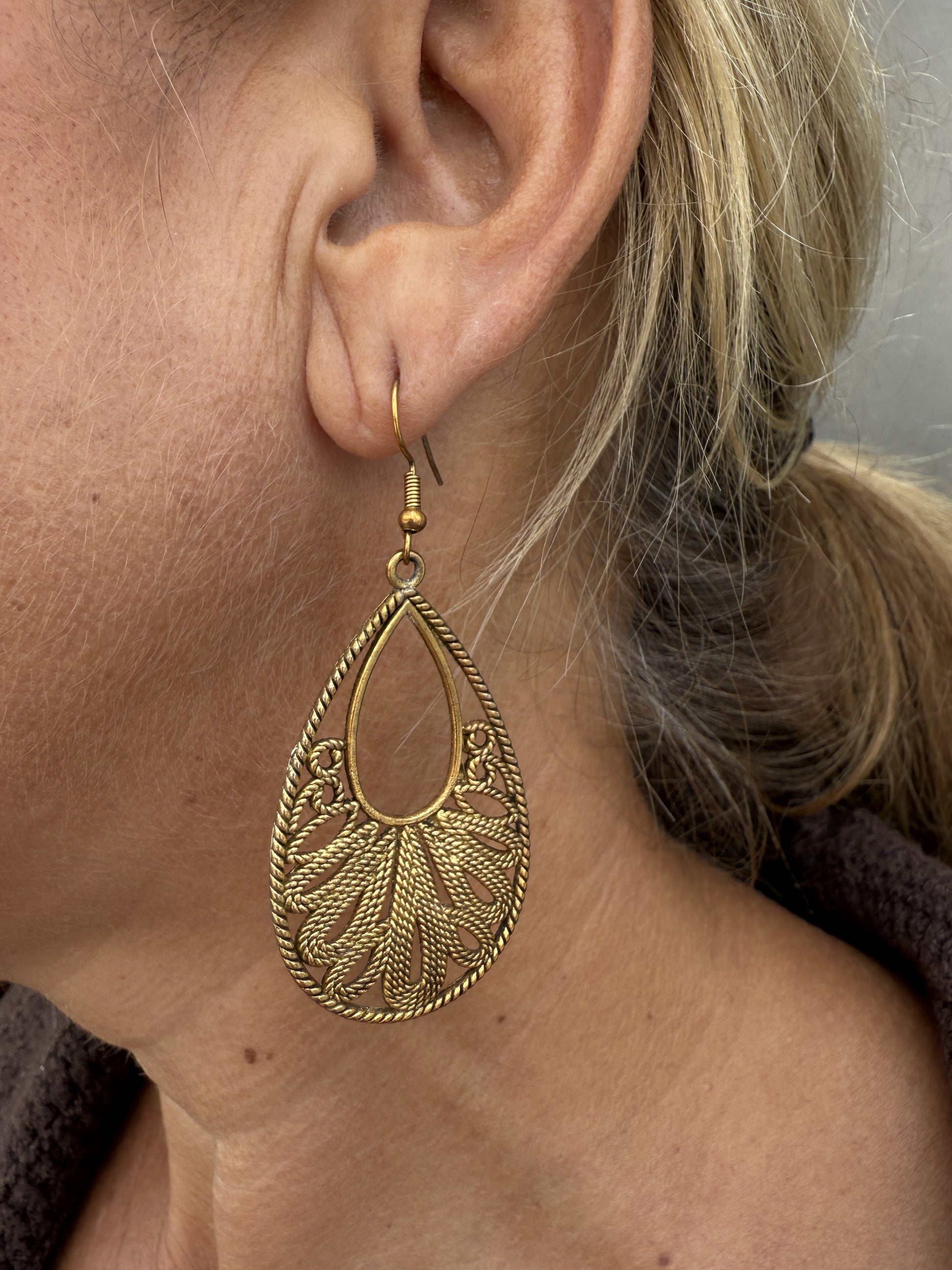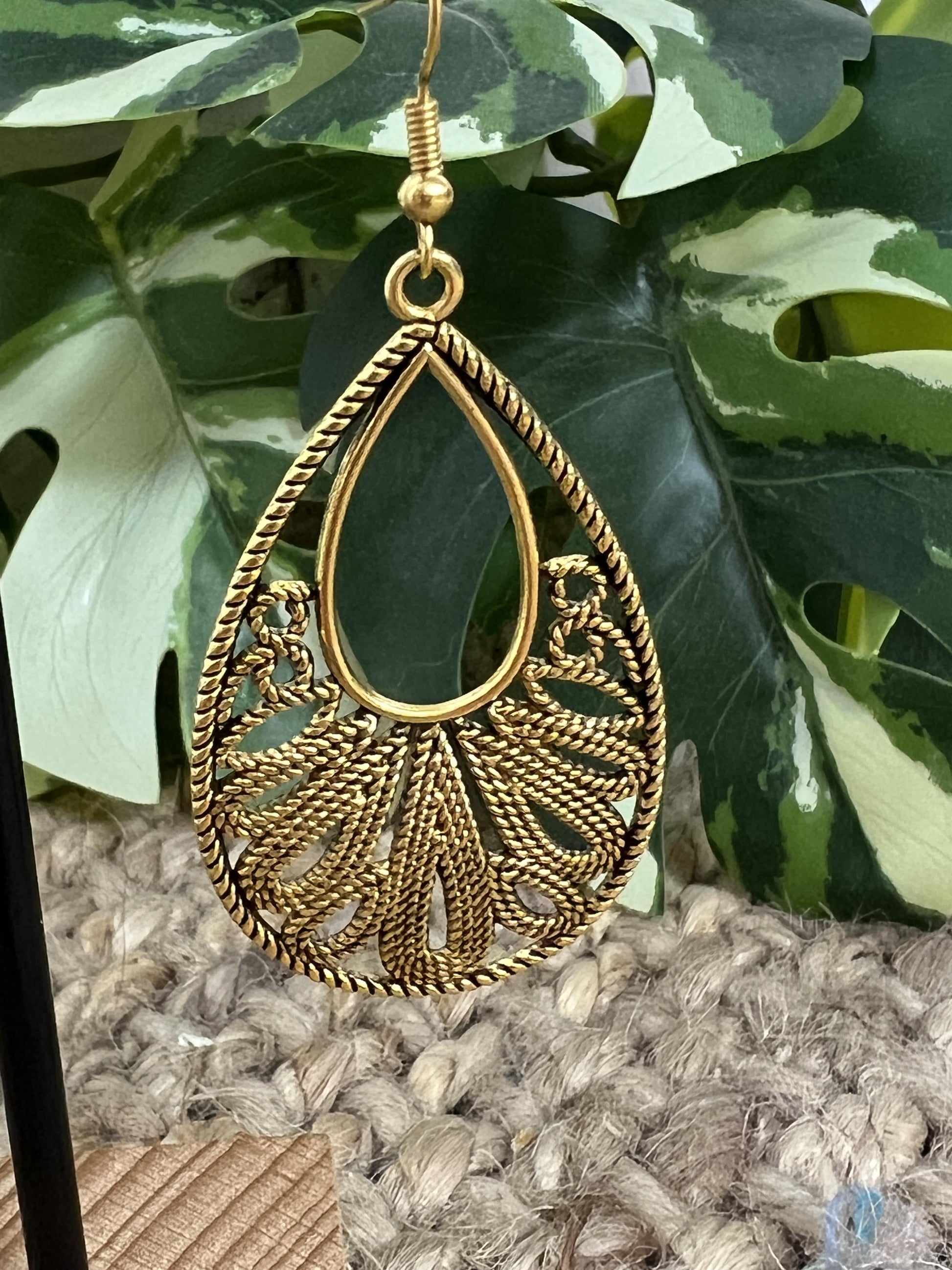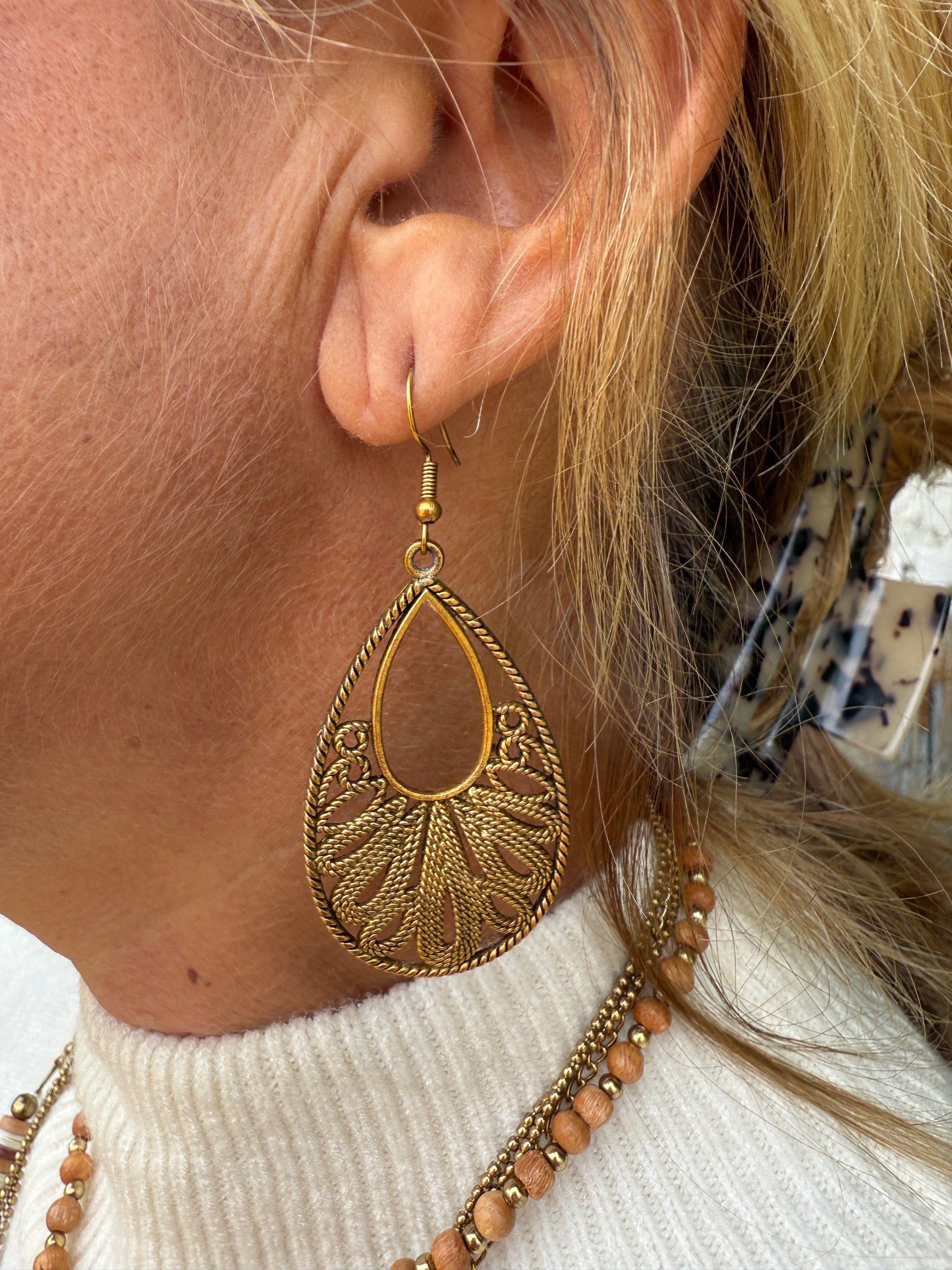 Pendiente de mujer tipo boho chic con pequeños detalles en color dorado.