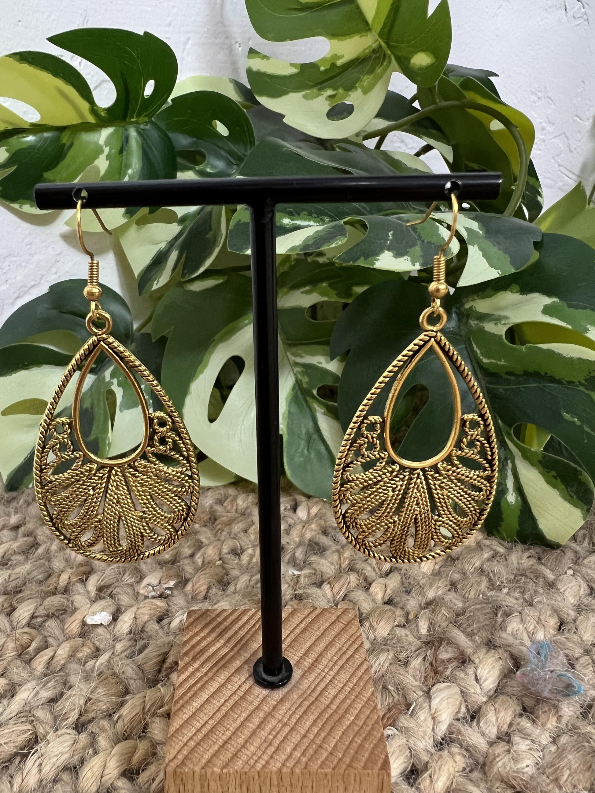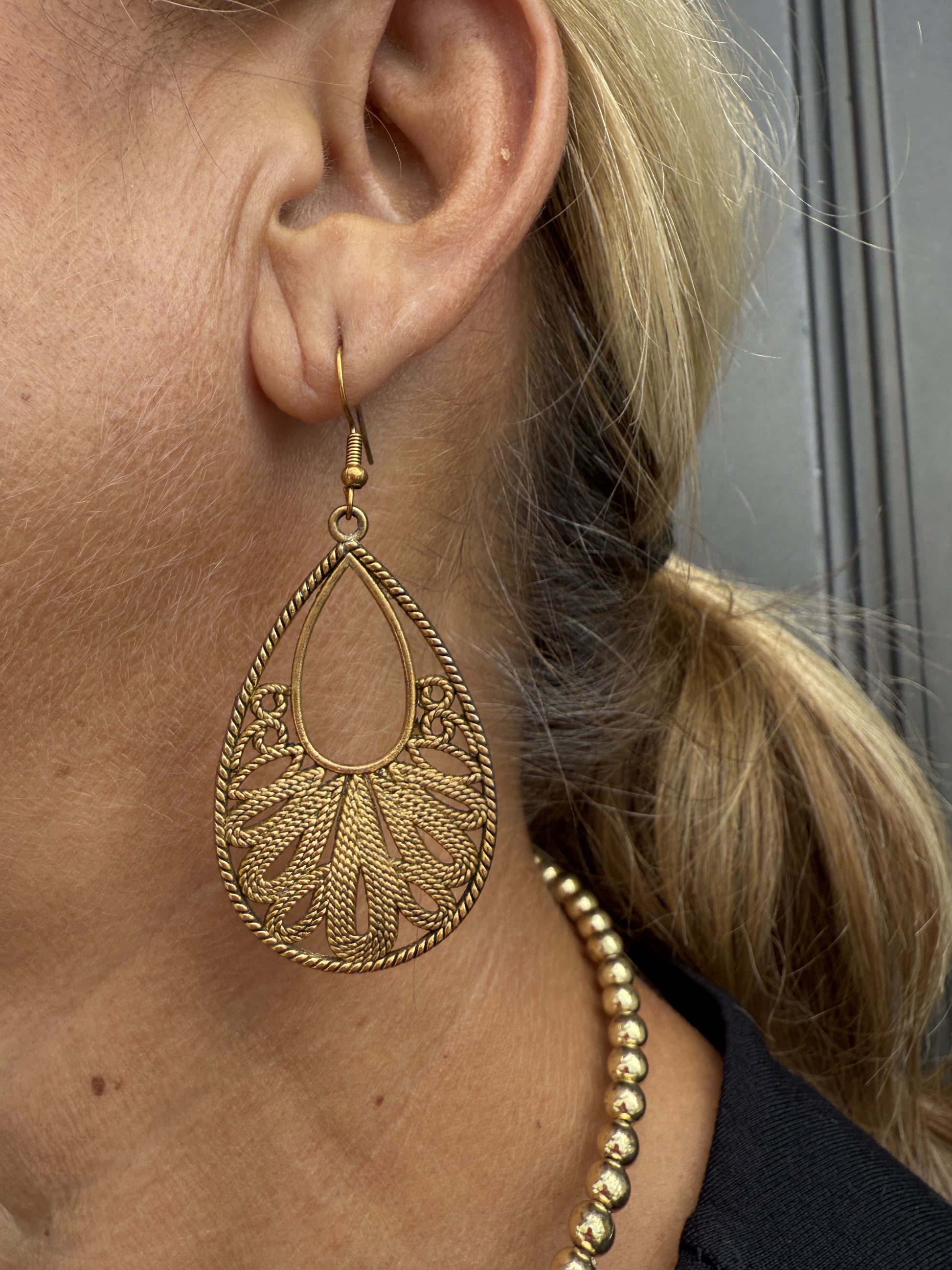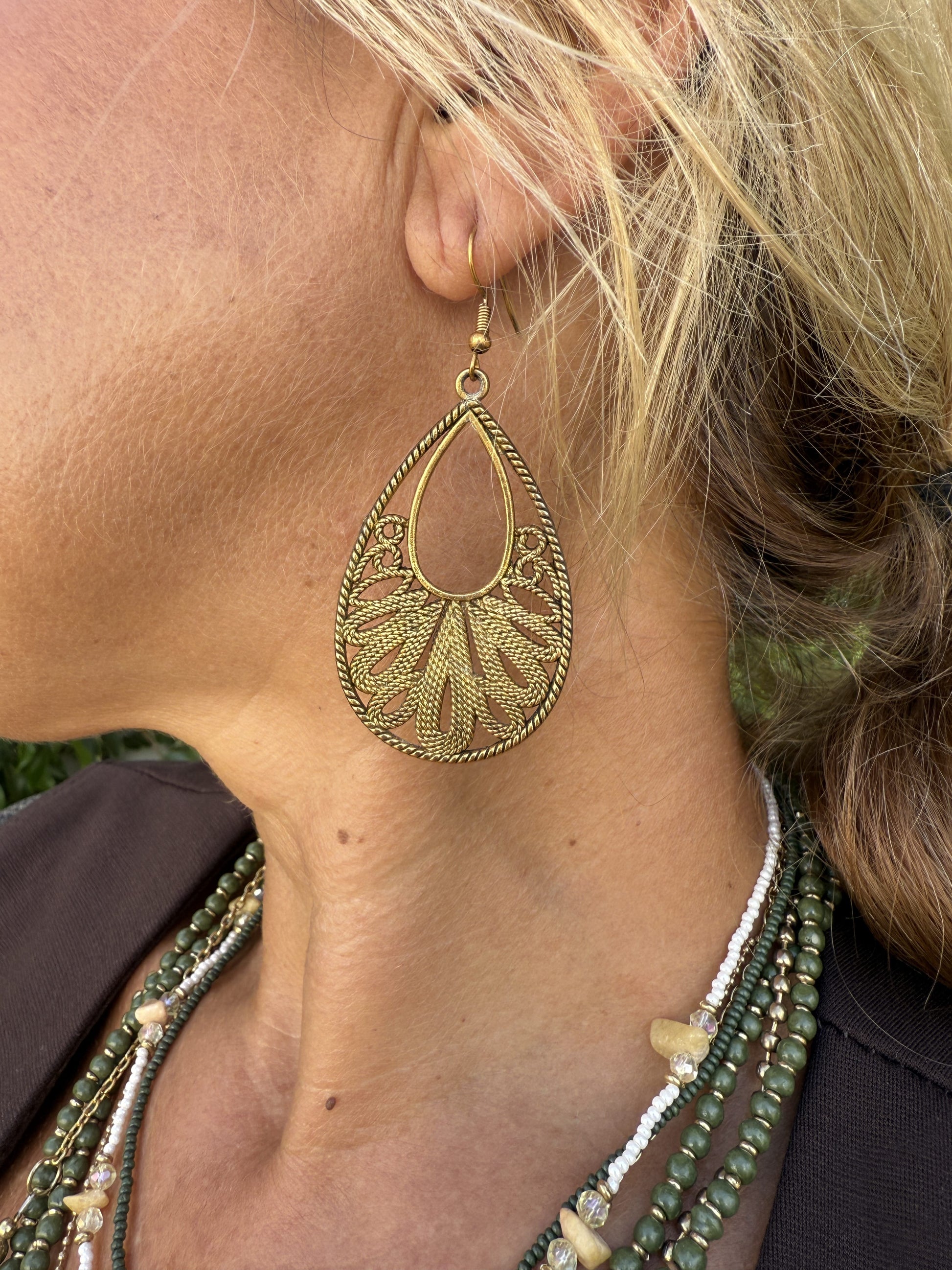 Pendiente de mujer tipo boho chic con pequeños detalles en color dorado.