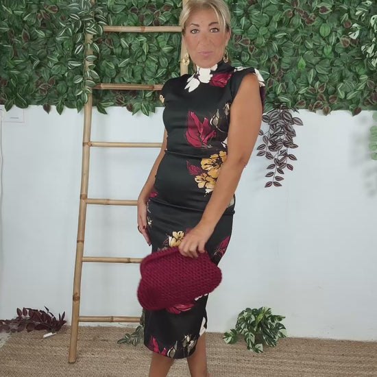 Vestido de mujer largo con manga corta y cuello a la caja.